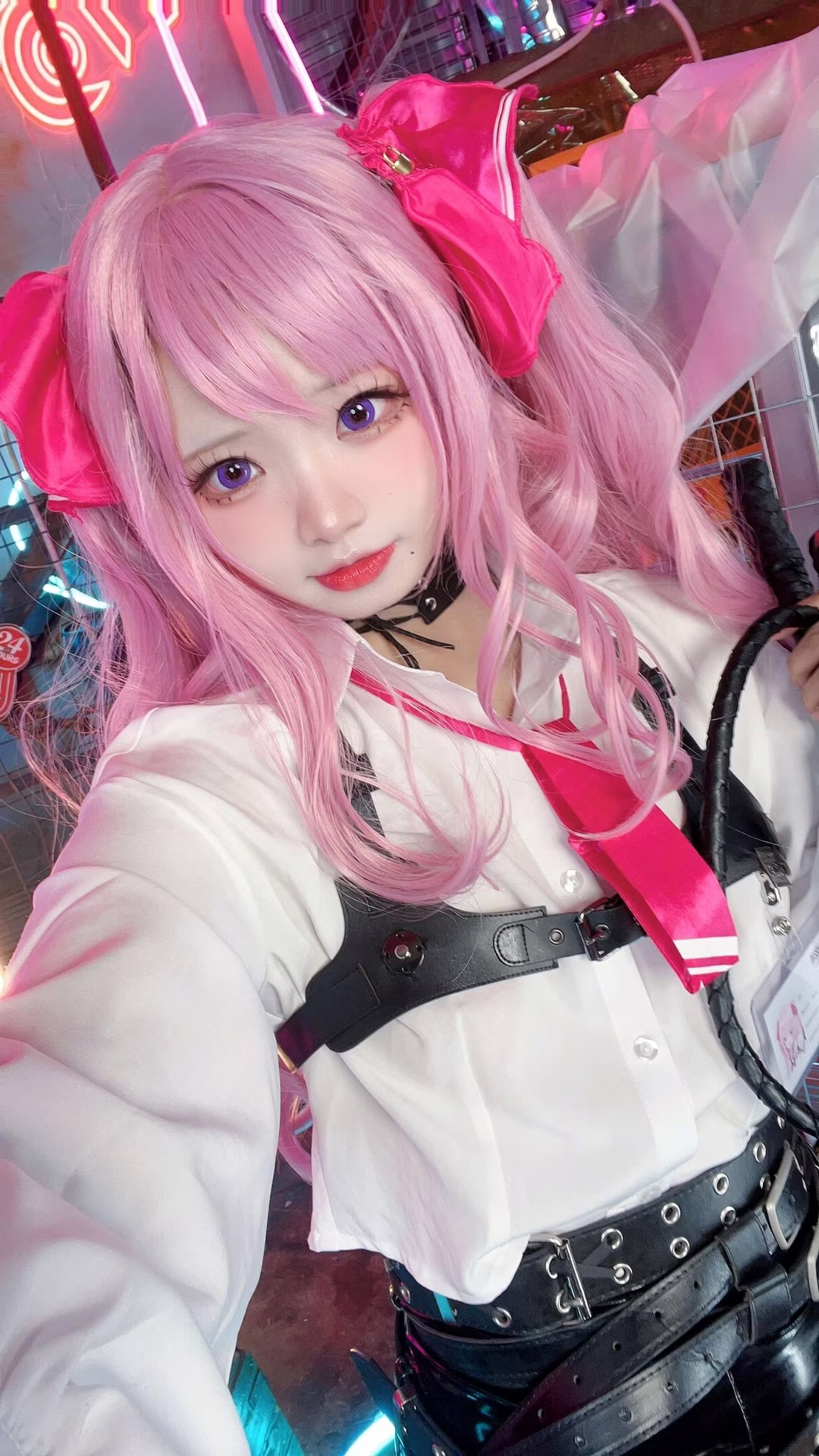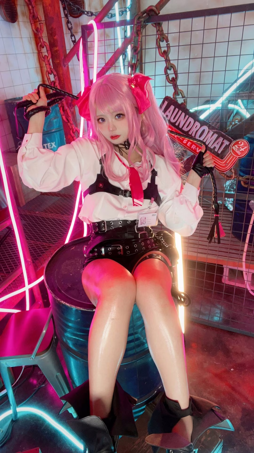 Step into the captivating world of Nikke Goddess of Victory with Coser Yi Miao Jun's exceptional portrayal of Yuni. Sporting Yuni's signature pink hair, mesmerizing purple eyes, and meticulously recreated attire, Yi Miao Jun masterfully brings the character to life, embodying both strength and charm. From the delicate pink bows adorning her hair to the crisp white shirt and edgy black harness, every detail is carefully crafted, showcasing the cosplayer's dedication and passion. Yuni radiates vibrancy, her diverse expressions drawing every gaze. This collection is more than just a cosplay photoshoot; it's an artistic rendition that immerses viewers deeper into the Nikke universe, allowing them to fully appreciate the allure of this Goddess of Victory.