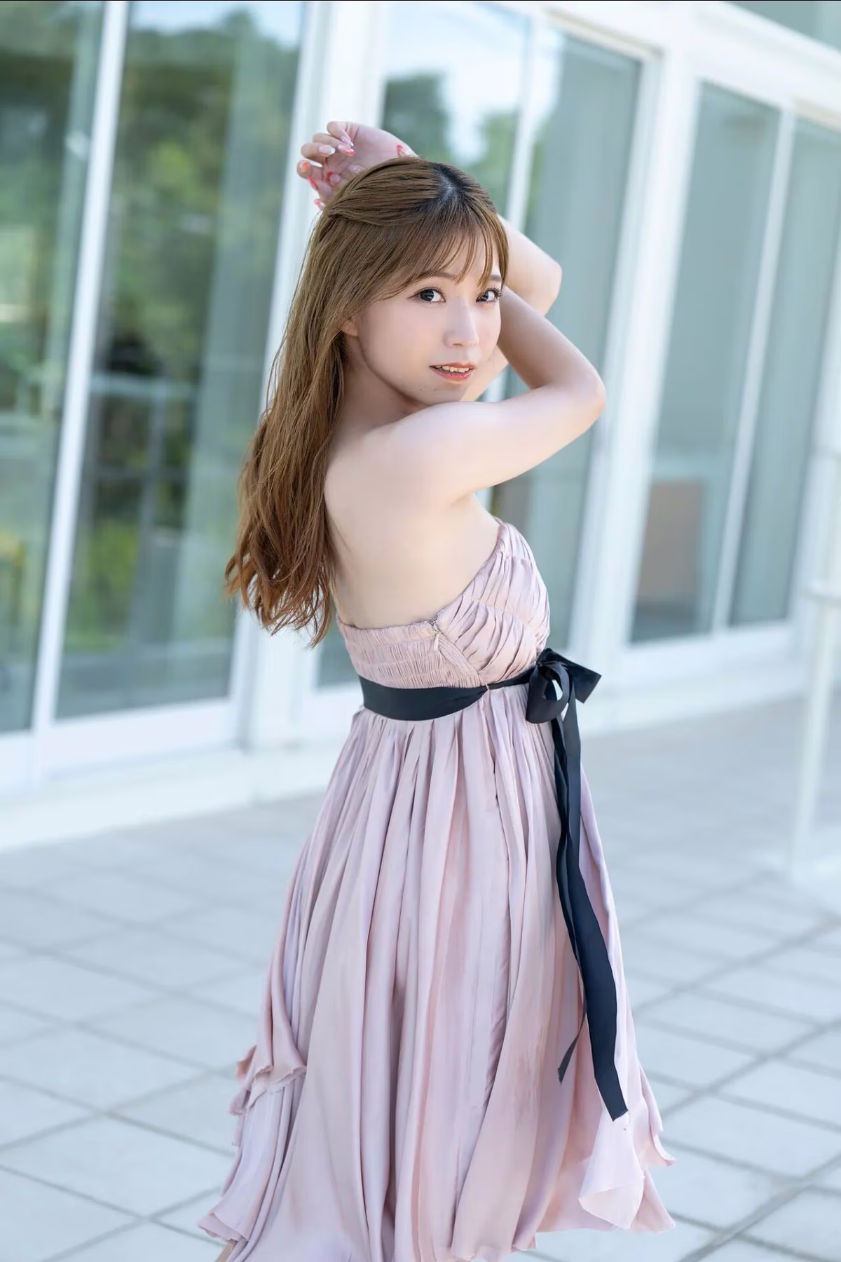 Immerse yourself in the delicate beauty of Asaka from the FRIDAY Monthly Girl 043 never-before-seen photo collection Part01. This captivating image highlights her enchanting gaze and naturally flowing hair. Asaka dons a soft beige strapless dress gracefully accentuating her elegant charm. With a blurred lush green background she creates an intimate and emotive atmosphere. This is one of the exclusive moments revealing Asaka's pure and alluring beauty guaranteed to captivate every admirer.#Asaka #FRIDAY #Exclusive #Japanese #Idol