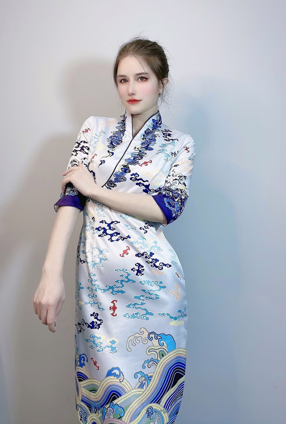 Coser Lu Ba Sui: Captivating Asian Beauty in Unique Wave-Patterned Attire – Discover Exclusive Selfie Photos!