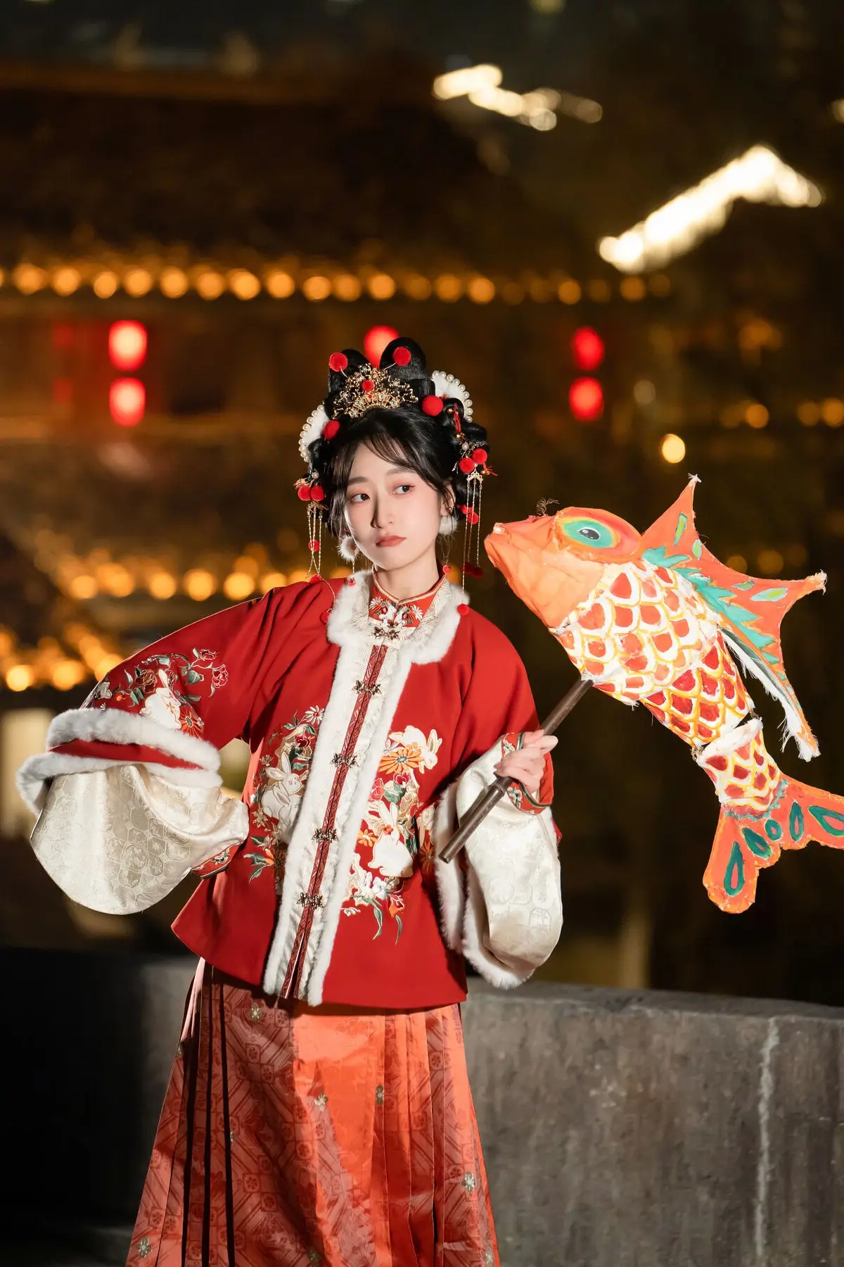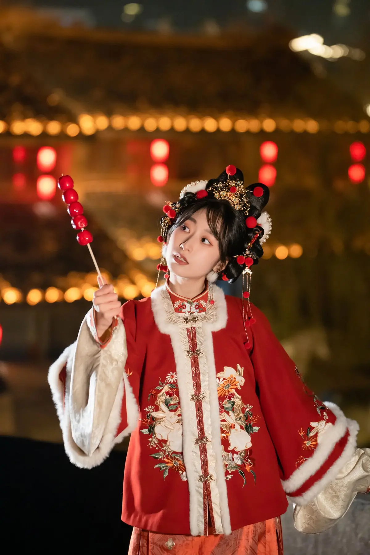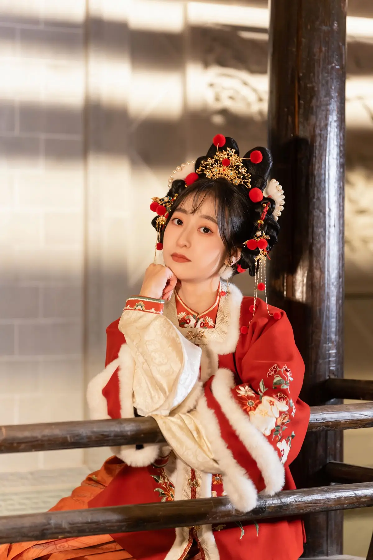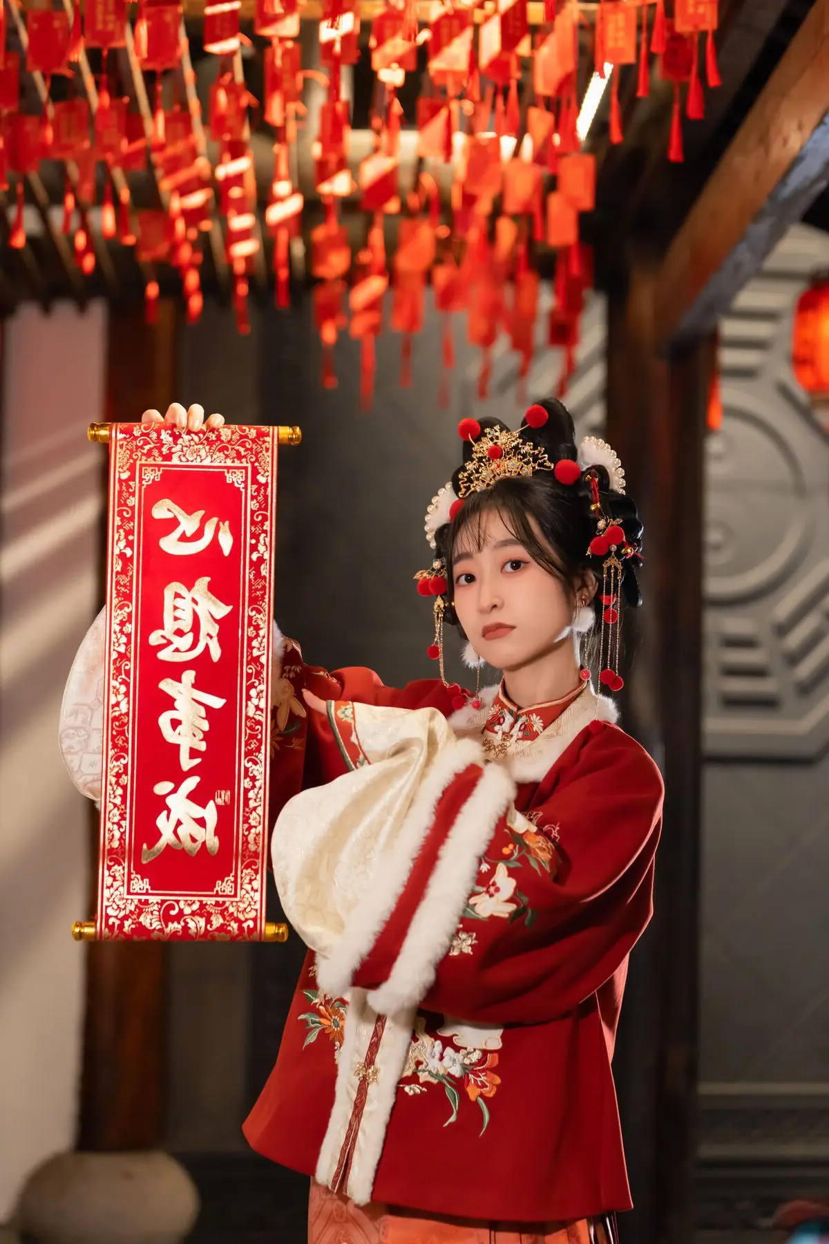 Model Xiao He exudes serene beauty in a vibrant traditional Hanfu, captured gracefully within a classic wooden setting. Her festive red attire, adorned with intricate embroidery and soft white fur trim, evokes an air of timeless elegance and cultural richness, perfectly embodying the spirit of the Lunar New Year. With a gentle gaze and a contemplative pose, she creates a moment of quiet reflection, inviting viewers to appreciate the delicate artistry of the garment and the tranquil ambiance. This image from YiTuYu Vol.8565 not only showcases the exquisite charm of traditional Chinese fashion but also subtly hints at historical narratives and festive celebrations along iconic locations like the Grand Canal, offering a glimpse into a cherished heritage.#HanfuFashion #XiaoHe #ChineseTradition #LunarNewYear #CulturalBeauty