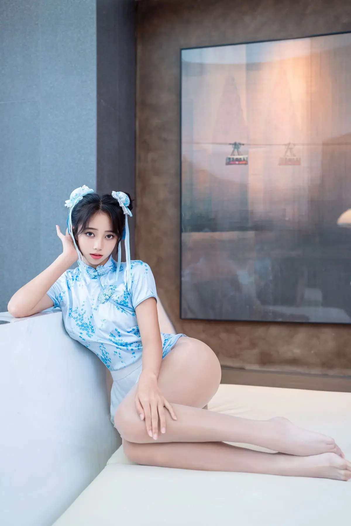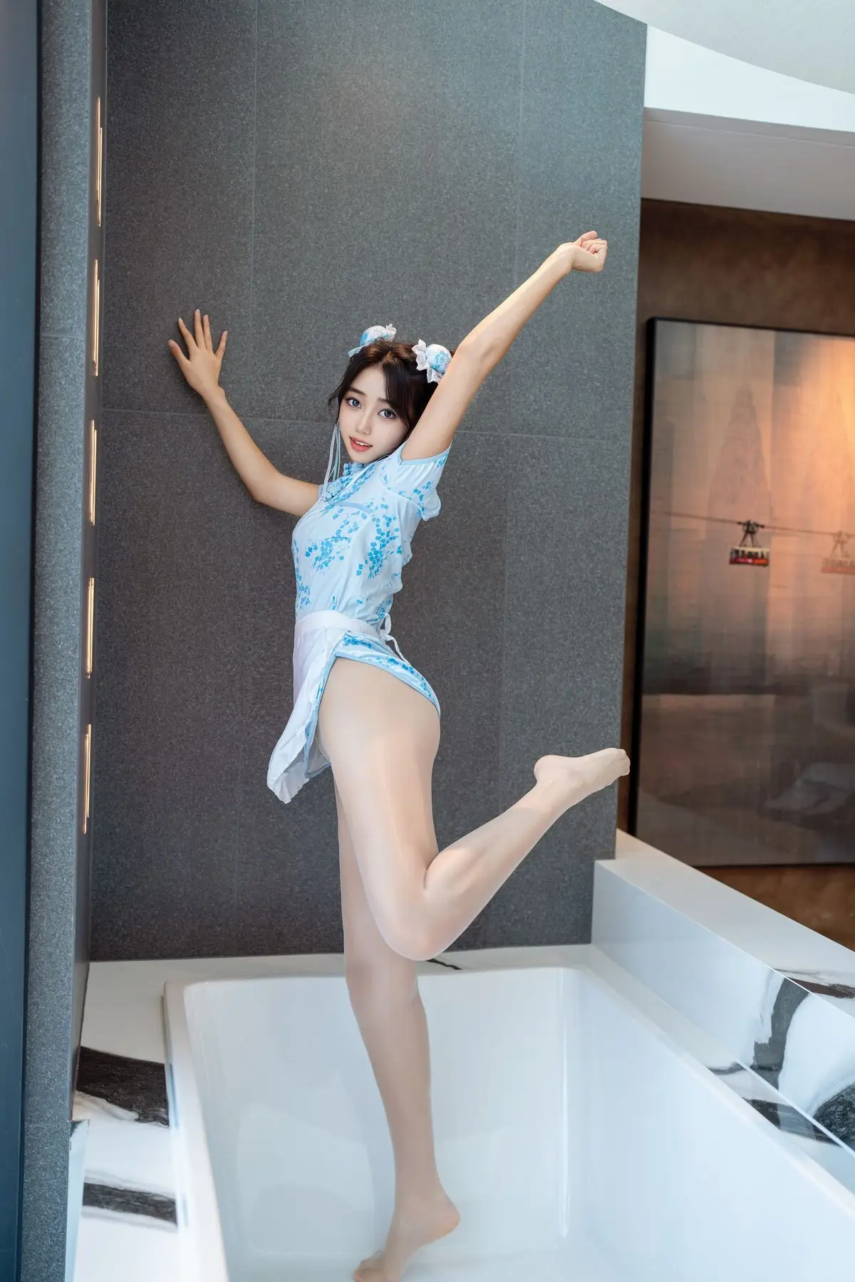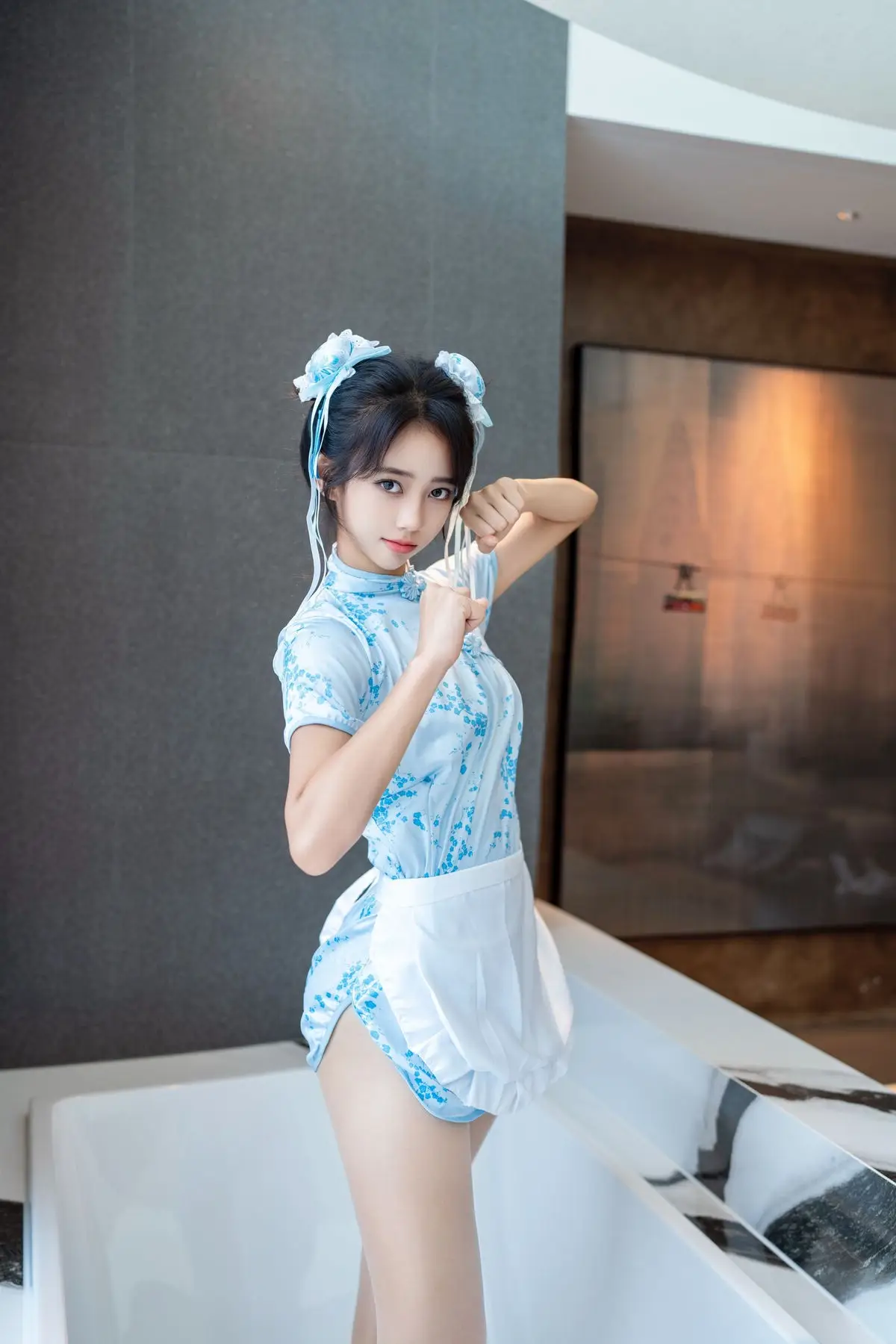 This stunning image features Shi An An 时安安 a talented model from XiuRen website in a captivating cheongsam inspired by blue and white porcelain. The unique design beautifully blends traditional Chinese aesthetics with a modern daring style creating an irresistible allure. Posing confidently with an engaging gaze Shi An An showcases her slender figure and long elegant legs. The delicate blue and white outfit adorned with classic patterns highlights her refined yet bold beauty. This is a perfect fusion of art and fashion embodying the model s confidence and charm. Shi An An truly shines offering a fresh and enchanting perspective on traditional attire.#ShiAnAn #BluePorcelainCheongsam #XiuRen #AsianBeauty #UniqueFashion