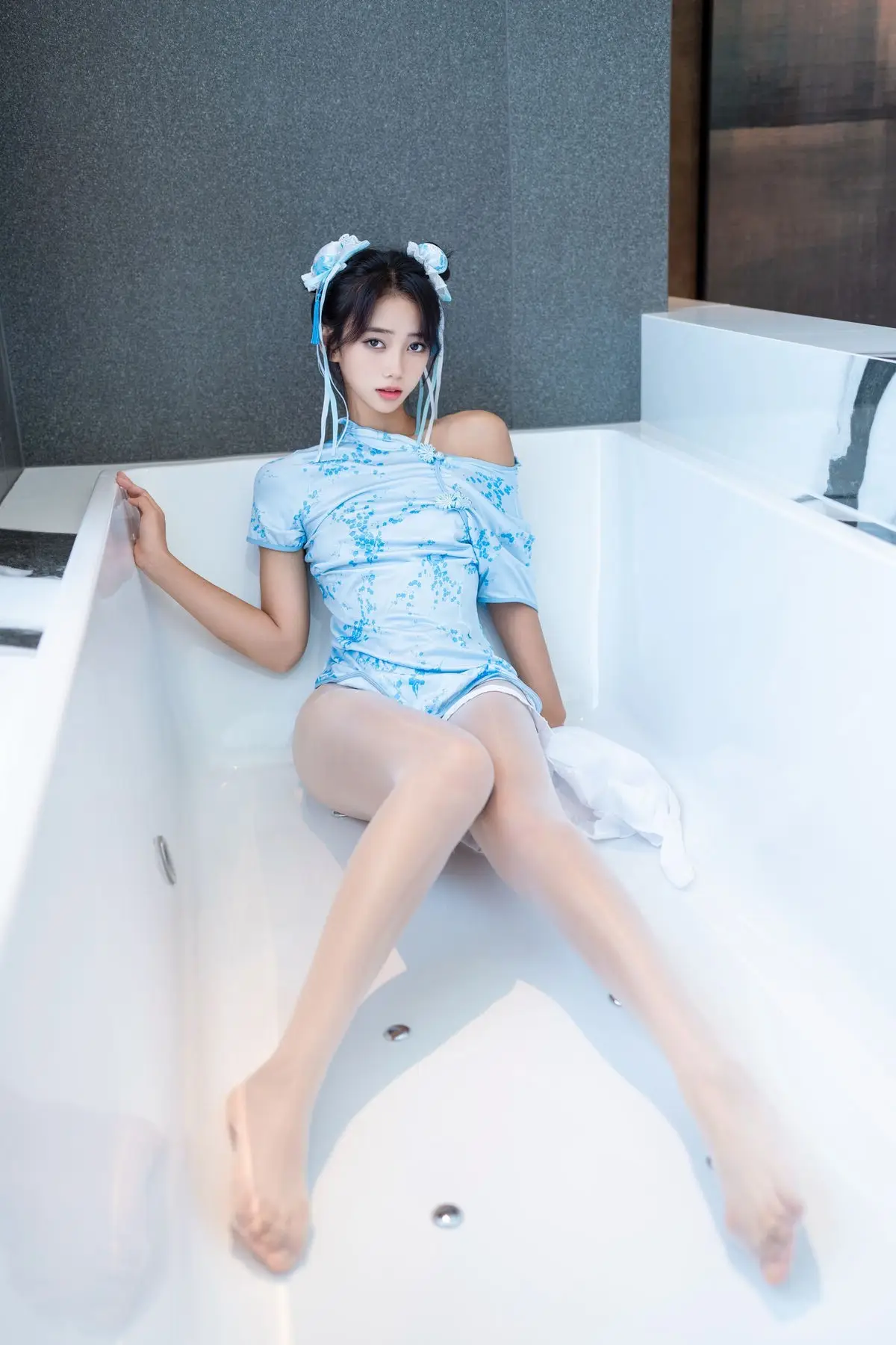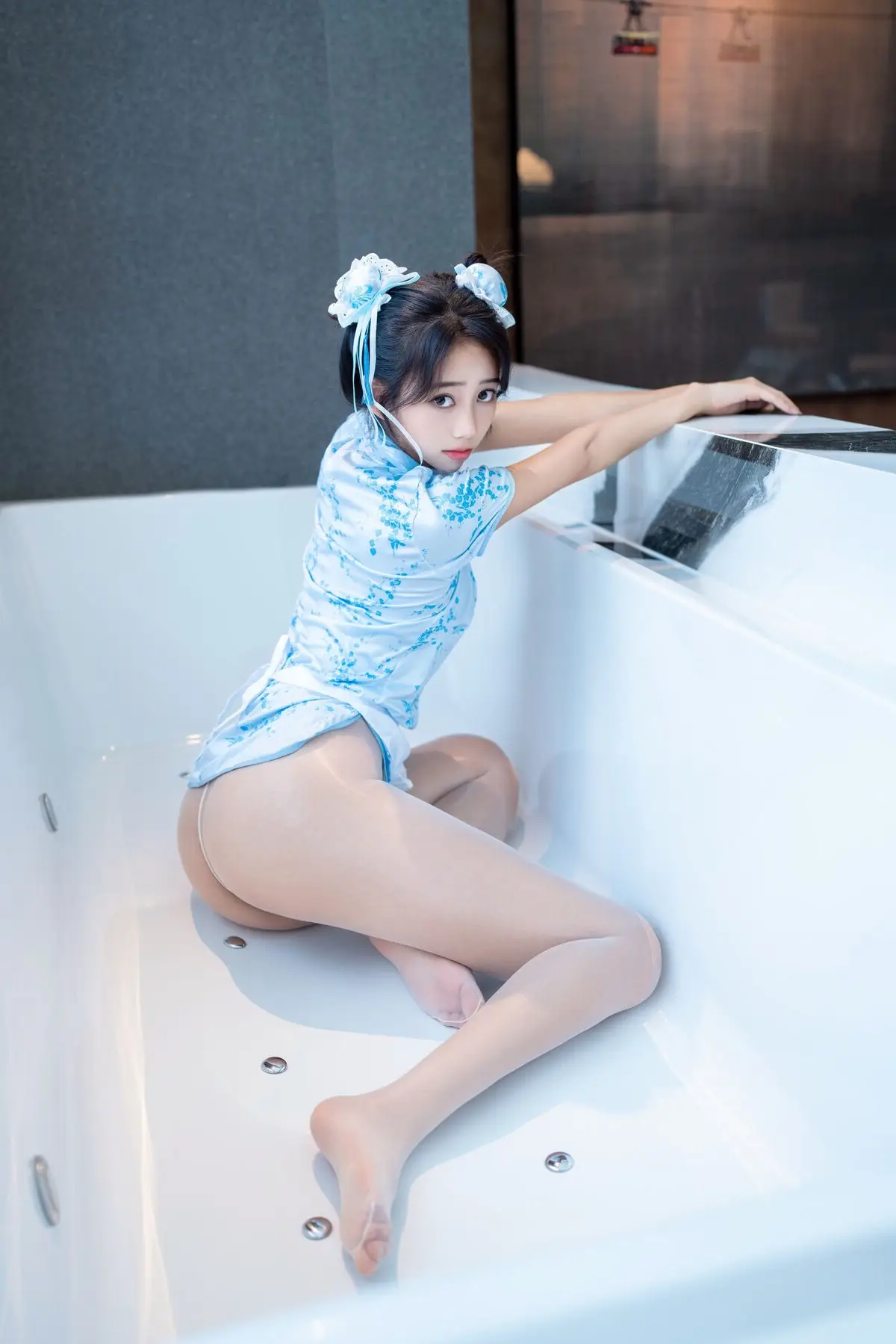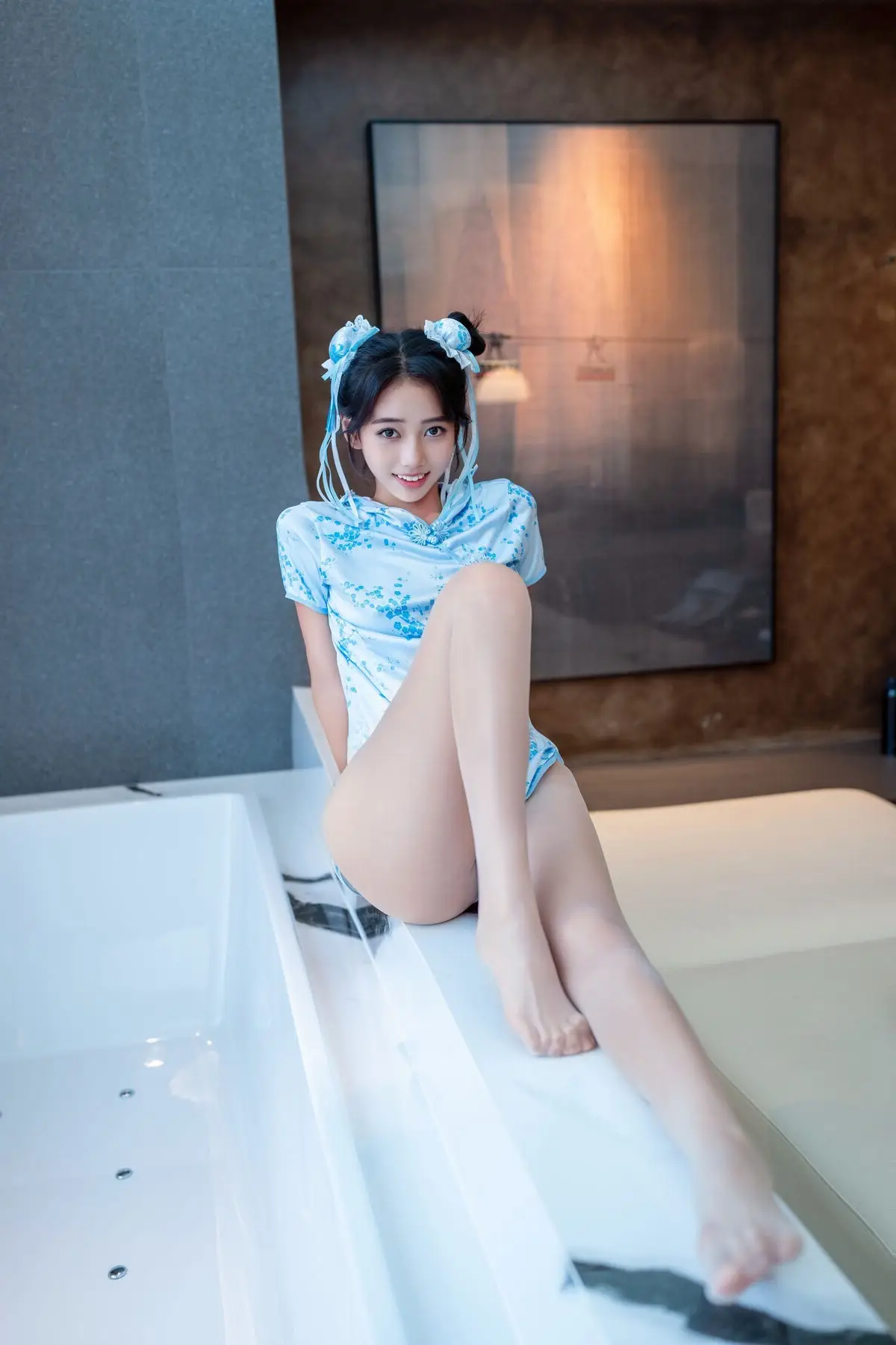 This stunning image features Shi An An 时安安 a talented model from XiuRen website in a captivating cheongsam inspired by blue and white porcelain. The unique design beautifully blends traditional Chinese aesthetics with a modern daring style creating an irresistible allure. Posing confidently with an engaging gaze Shi An An showcases her slender figure and long elegant legs. The delicate blue and white outfit adorned with classic patterns highlights her refined yet bold beauty. This is a perfect fusion of art and fashion embodying the model s confidence and charm. Shi An An truly shines offering a fresh and enchanting perspective on traditional attire.#ShiAnAn #BluePorcelainCheongsam #XiuRen #AsianBeauty #UniqueFashion