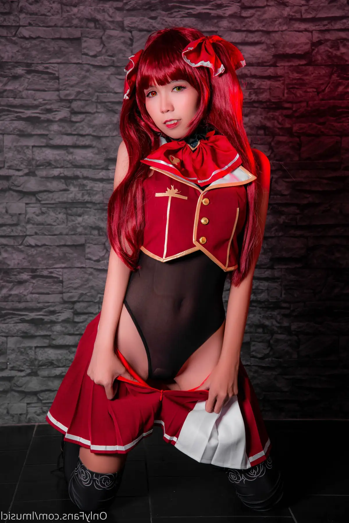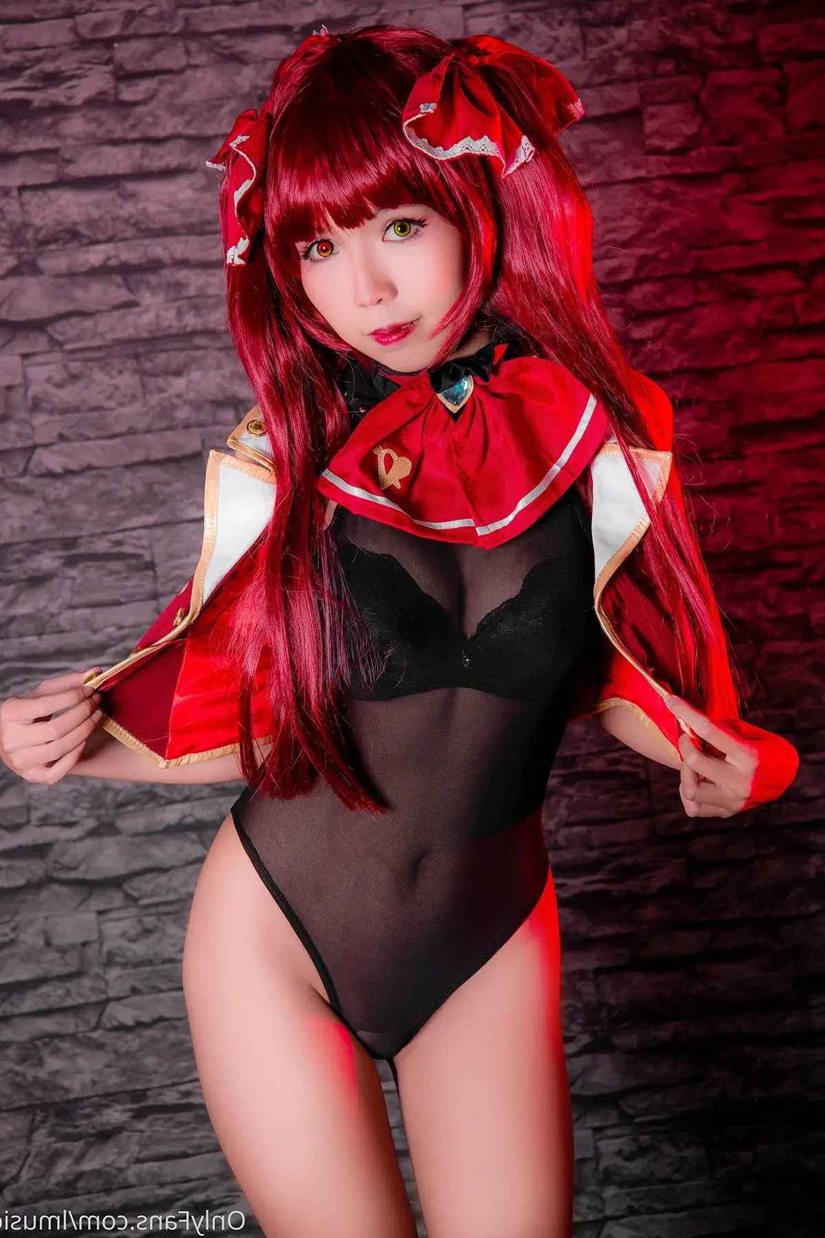 Immerse yourself in the Hololive universe with Coser lMusicl's stunning portrayal of Marine Senchou. This captivating image showcases the iconic red hair and meticulously recreated pirate captain outfit. LMusicl embodies the character's alluring and vibrant spirit from her playful gaze to her elegant pose. The cosplay not only highlights the cosplayer's beauty but also celebrates the charismatic charm of the legendary VTuber captain. This is a truly authentic and mesmerizing piece of cosplay art for fans of Marine Senchou and the Hololive community. The dedication to every costume detail and expression creates an unforgettable visual experience.#MarineSenchou #HololiveCosplay #CoserlMusicl #VTuber #PirateCaptain