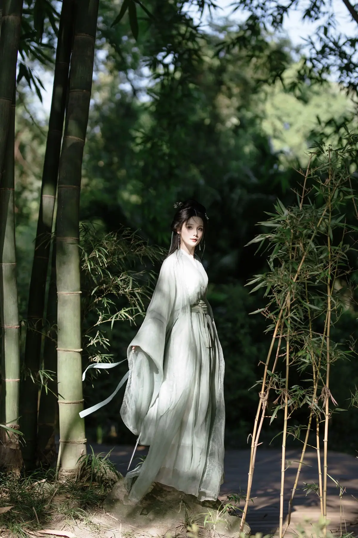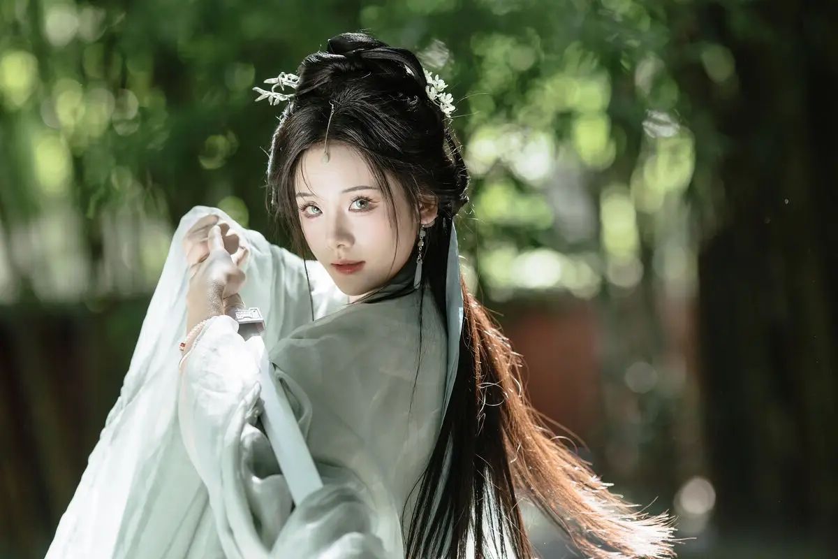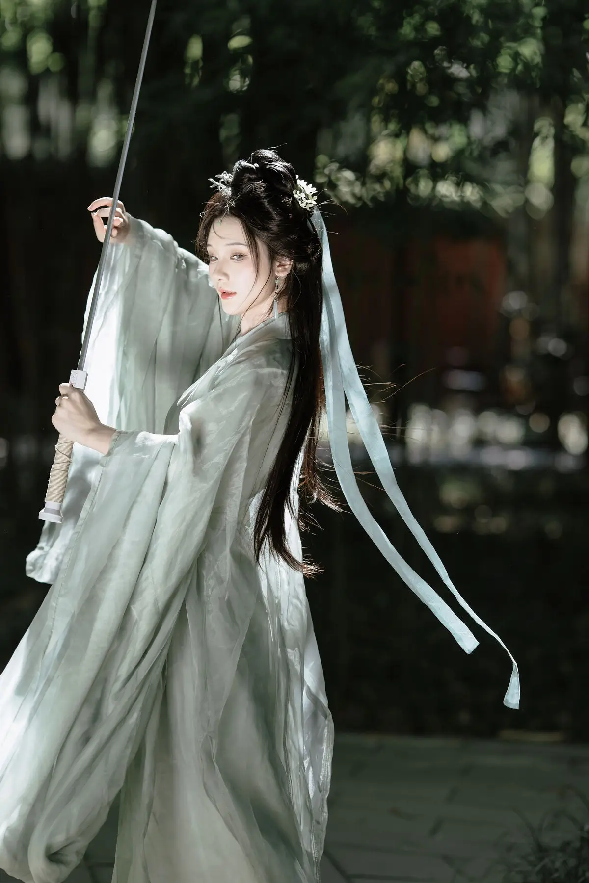 In the captivating YiTuYu Vol.8559 collection, Yi Zhi Mu Yao Yao emerges as an enchanting figure amidst a lush bamboo forest. Adorned in elegant traditional attire of soft, flowing fabric, her presence exudes grace and an ethereal aura. With her long dark hair styled in a sophisticated updo and a profound gaze, Yi Zhi Mu Yao Yao embodies the spirit of a powerful yet charming swordswoman. The sword she holds is not merely an accessory but a symbol of her resolve and mastery of martial arts. This image beautifully captures a moment where human elegance harmonizes with nature's tranquility, offering a visually stunning narrative that is both serene and compelling, a true testament to visual art.#Hanfu #Swordswoman #BambooForest #TraditionalBeauty #YiZhiMuYaoYao