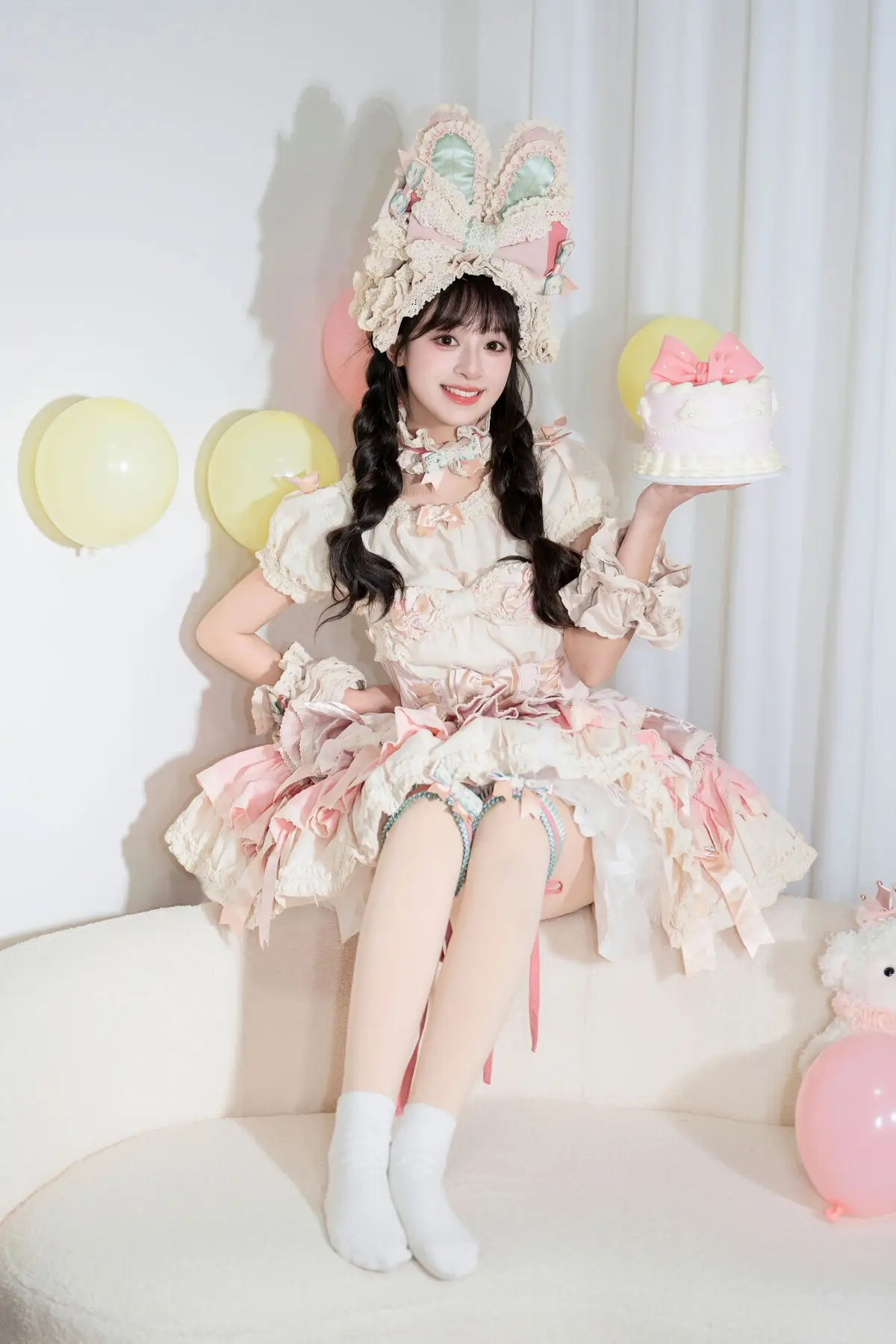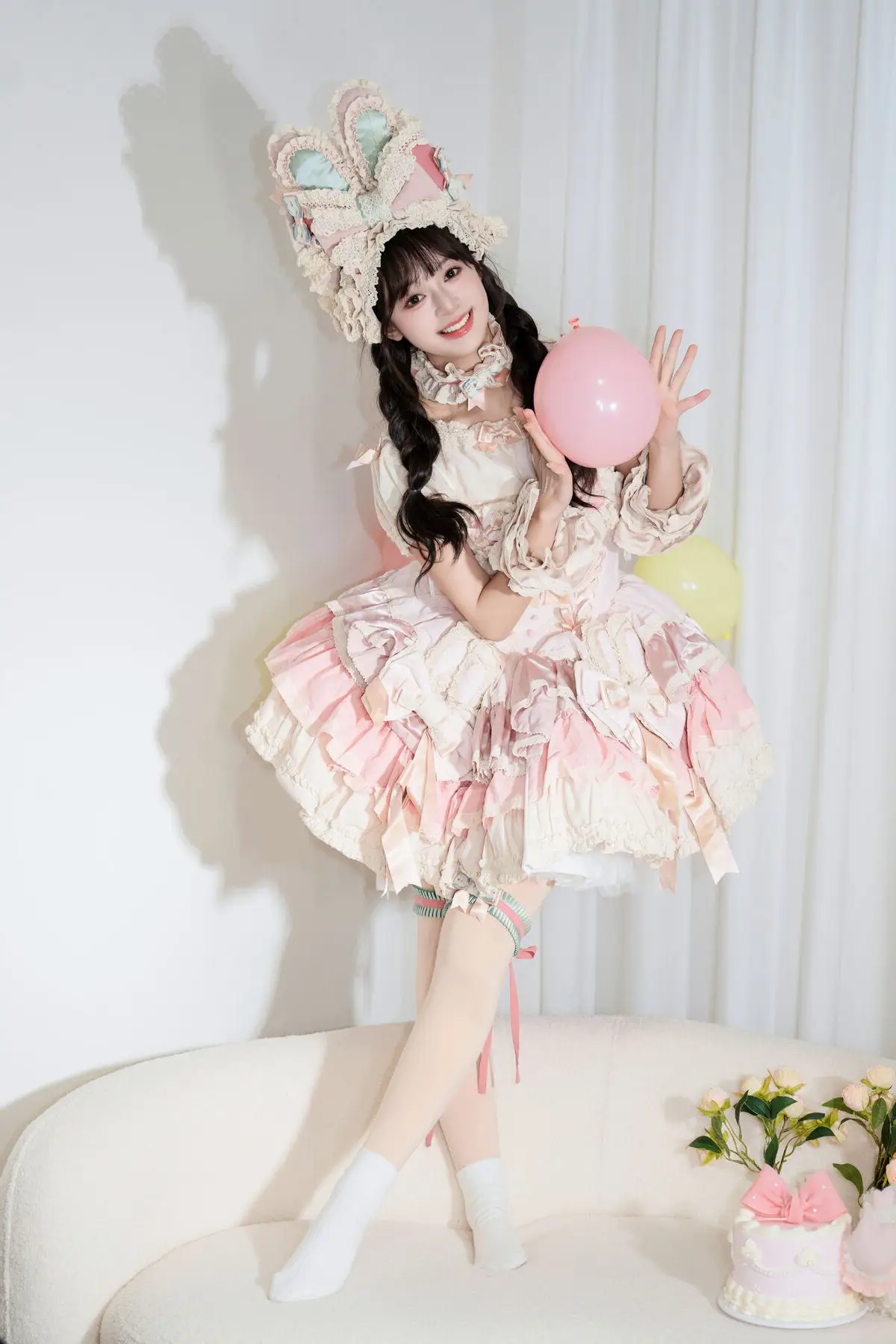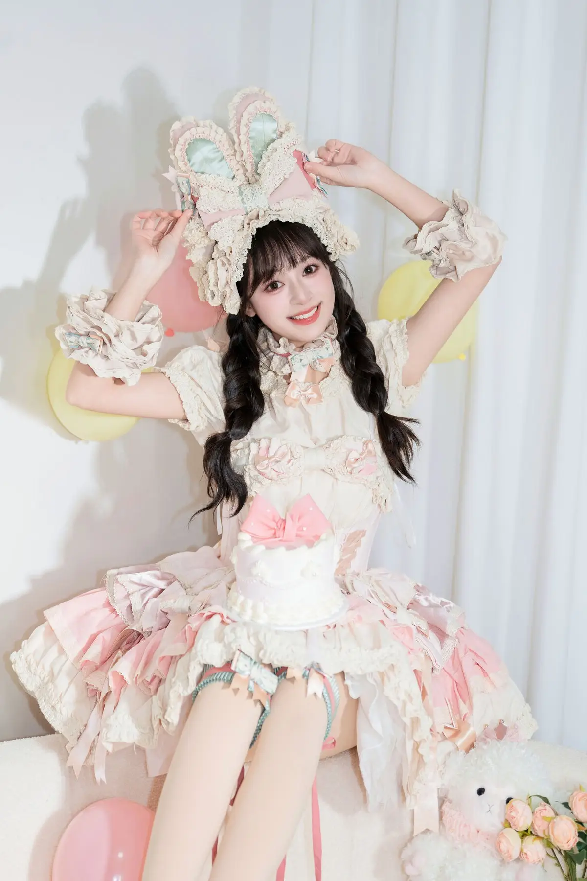 The YiTuYu Vol.8557 photo series introduces Xia Yu Xiao Nian in an incredibly sweet and adorable appearance. The young girl transforms into a living doll with an exquisite pastel pink Lolita outfit. The voluminous, multi-layered dress, adorned with lace and large bows, creates a classic yet modern beauty. A highlight is the elaborate headpiece, reminiscent of cute bunny ears, further enhancing her charm. Xia Yu Xiao Nian's innocent expression, with her large, round eyes, exudes purity and grace. The simple background with pastel balloons further accentuates her pristine beauty. This is a captivating collection of images, sure to enchant fans of Lolita fashion and those who appreciate sweet aesthetics.#XiaYuXiaoNian #LolitaFashion #YiTuYu #PastelAesthetic #DollStyle