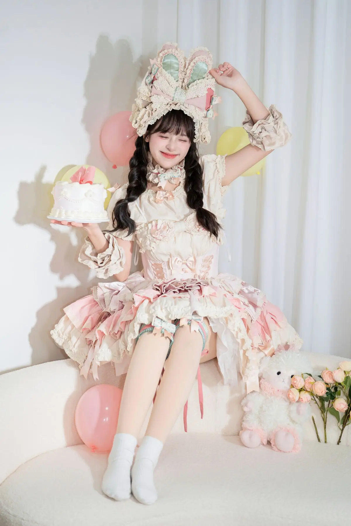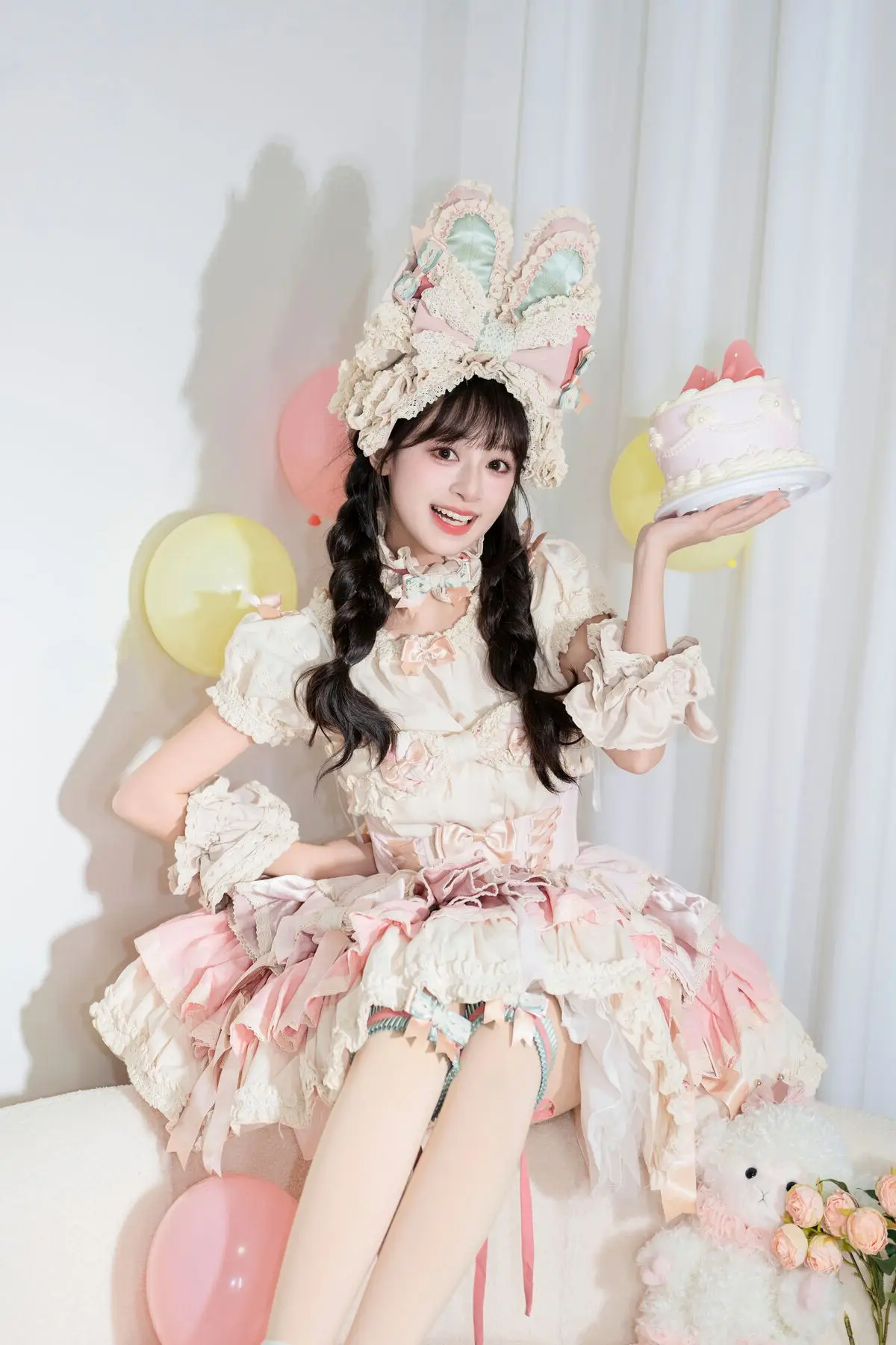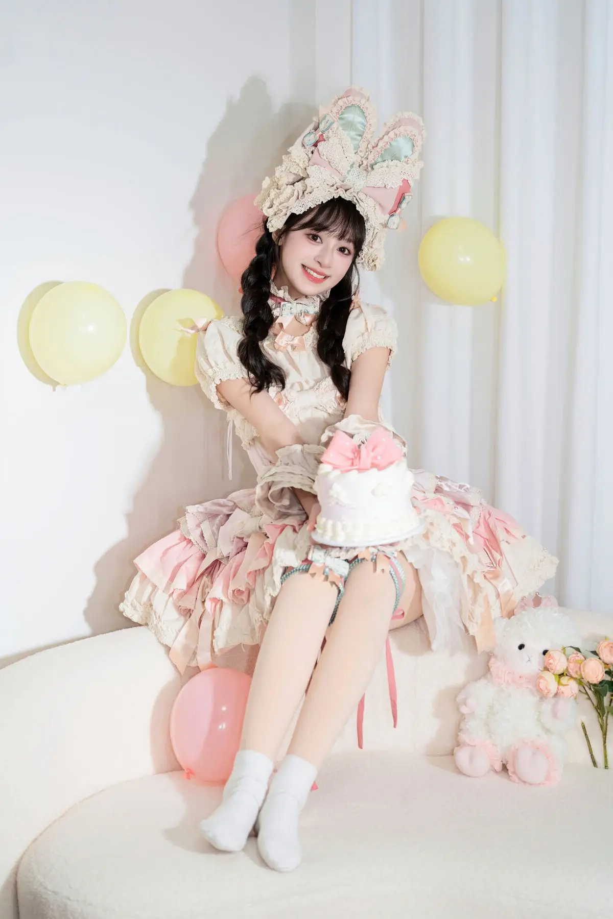 The YiTuYu Vol.8557 photo series introduces Xia Yu Xiao Nian in an incredibly sweet and adorable appearance. The young girl transforms into a living doll with an exquisite pastel pink Lolita outfit. The voluminous, multi-layered dress, adorned with lace and large bows, creates a classic yet modern beauty. A highlight is the elaborate headpiece, reminiscent of cute bunny ears, further enhancing her charm. Xia Yu Xiao Nian's innocent expression, with her large, round eyes, exudes purity and grace. The simple background with pastel balloons further accentuates her pristine beauty. This is a captivating collection of images, sure to enchant fans of Lolita fashion and those who appreciate sweet aesthetics.#XiaYuXiaoNian #LolitaFashion #YiTuYu #PastelAesthetic #DollStyle