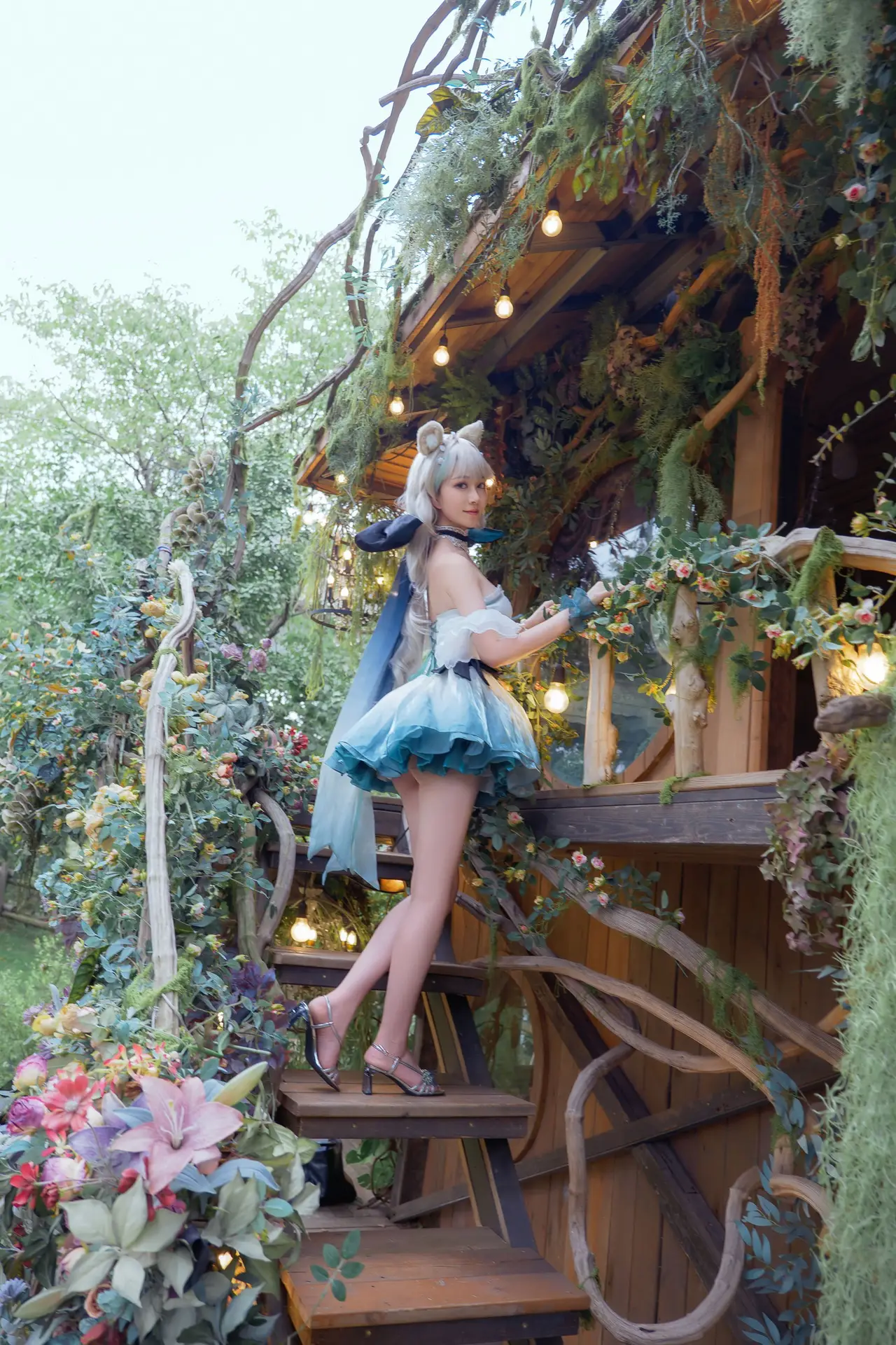 This captivating image from the YiTuYu Art Language Vol.8581 collection showcases model Ya Tui's serene and elegant beauty. Dressed in pristine white flowing attire her long dark hair is adorned with a delicate white flower evoking the image of an ethereal muse. The lush green natural backdrop subtly enhanced by soft pink blossoms adds a touch of poetic charm to the scene. Ya Tui radiates tranquility and grace much like a blossom gently unfurling in the morning dew. Every detail reflects artistic finesse inviting viewers to appreciate a harmonious blend of classic and contemporary allure.#YaTui #YiTuYu #AsianBeauty #Ethereal #ArtisticPhotography