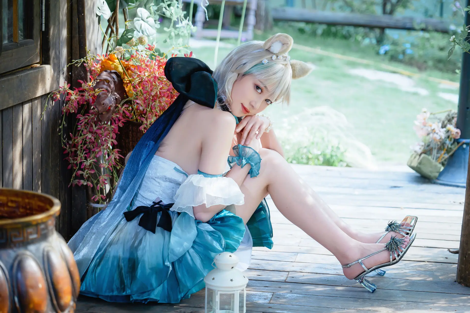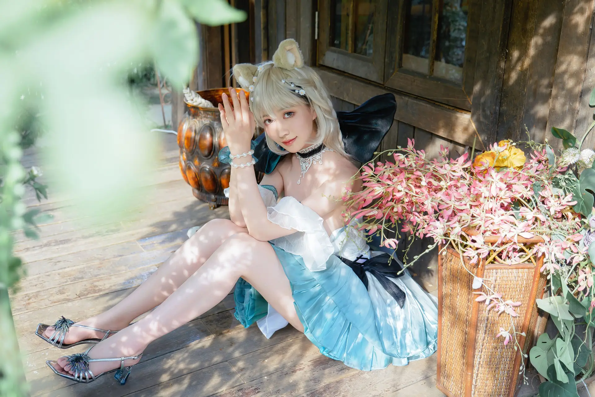 Explore the captivating beauty of Coser Kurotia Kuro in her unique black tights swimsuit ensemble a stylish and distinctive blend She poses gracefully on a grey sofa exuding confidence and allure Her mesmerizing gaze and platinum blonde hair create a harmonious and striking overall impression This image not only showcases creative cosplay but also celebrates the beauty of the figure with elegance and sophistication Every detail from the outfit to her expression is meticulously crafted offering an unforgettable visual experience This is a genuine artistic moment blending fashion with the art of cosplay#Coser #KurotiaKuro #BlackTightsSwimsuit #AlluringCosplay #CosplayFashion #KurotiaKuro
