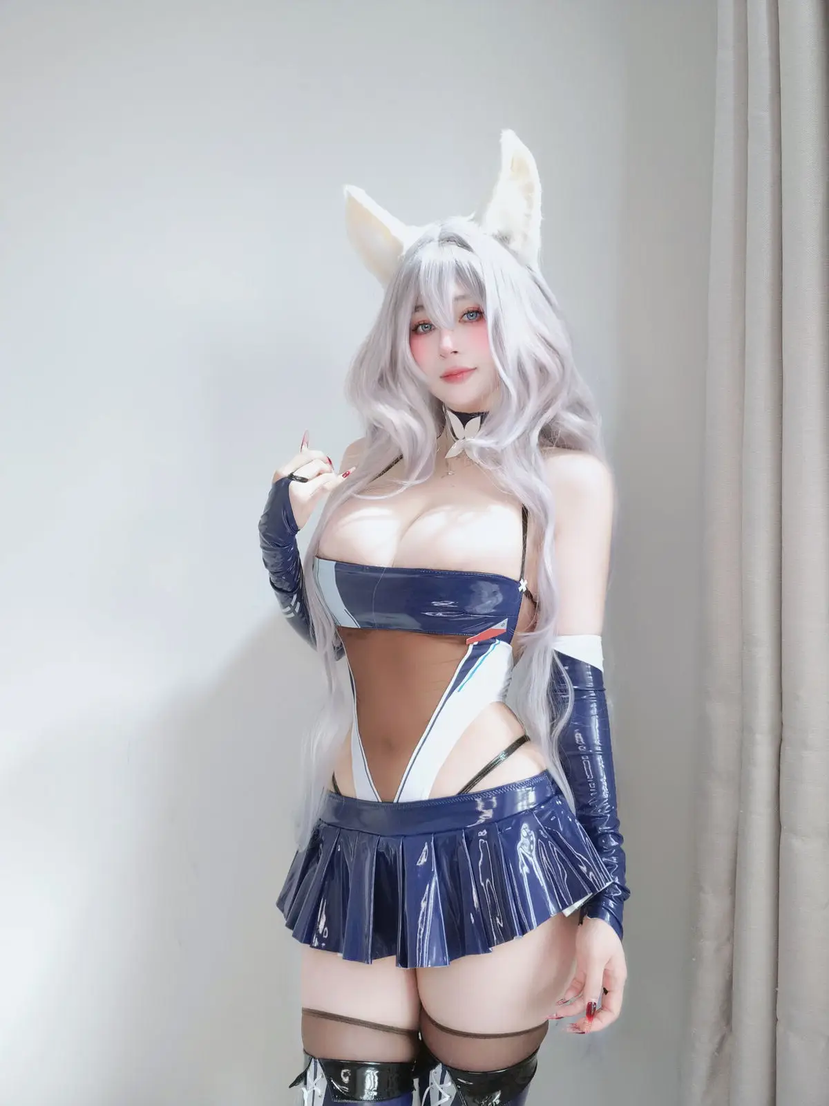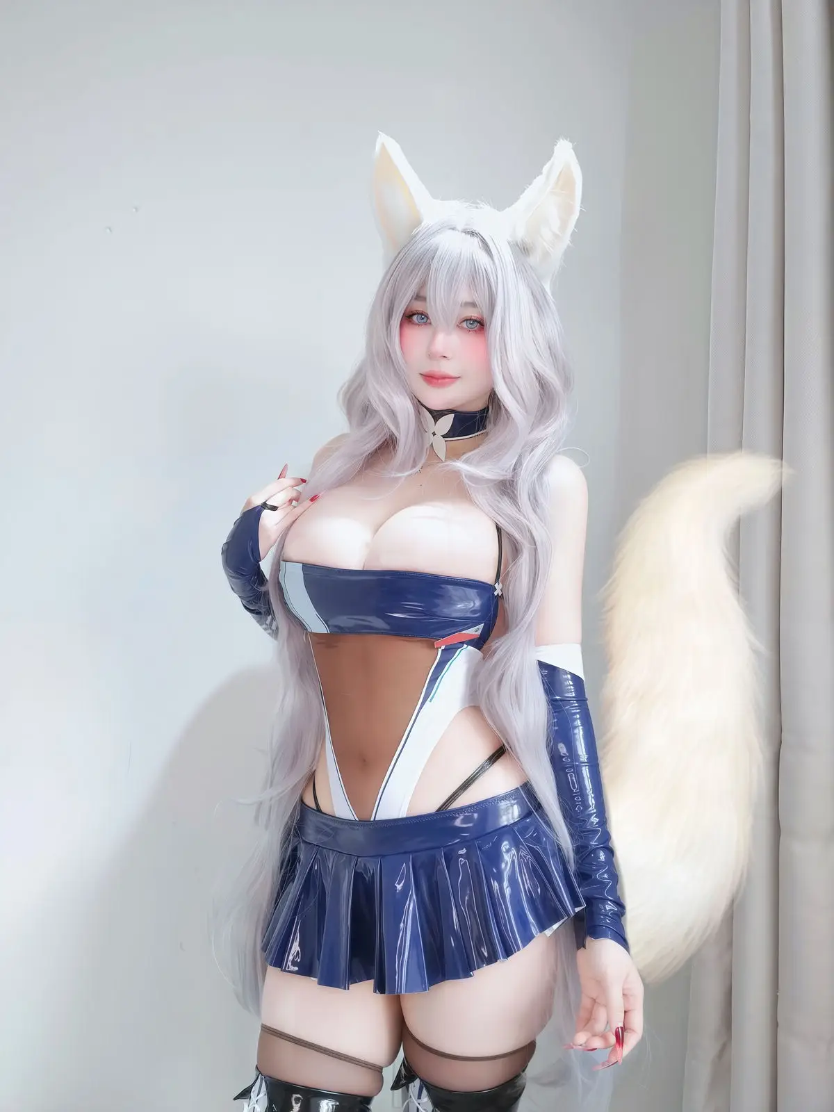 Coser Bai Yin 81 shines in her Fantia 2025/4 Part01 collection with a truly captivating and alluring portrayal. The cosplayer showcases her stunning beauty in a unique glossy blue and white costume complete with adorable animal ears and flowing silver hair. Her gaze is magnetic drawing viewers in and exuding a confident and professional demeanor as if telling a story. Every detail from the form-fitting outfit that highlights her figure to the intricate accessories demonstrates immense dedication and high-level skill in the art of cosplay. This image not only presents physical beauty but also captures the essence of the character promising an impressive and unforgettable visual experience for fans. It is undoubtedly a highlight not to be missed in Bai Yin 81s collection.#Cose #rBaiYin81 #FantiaCosplay #AlluringCosplay #FemaleCosplayer #CharacterPortrayal