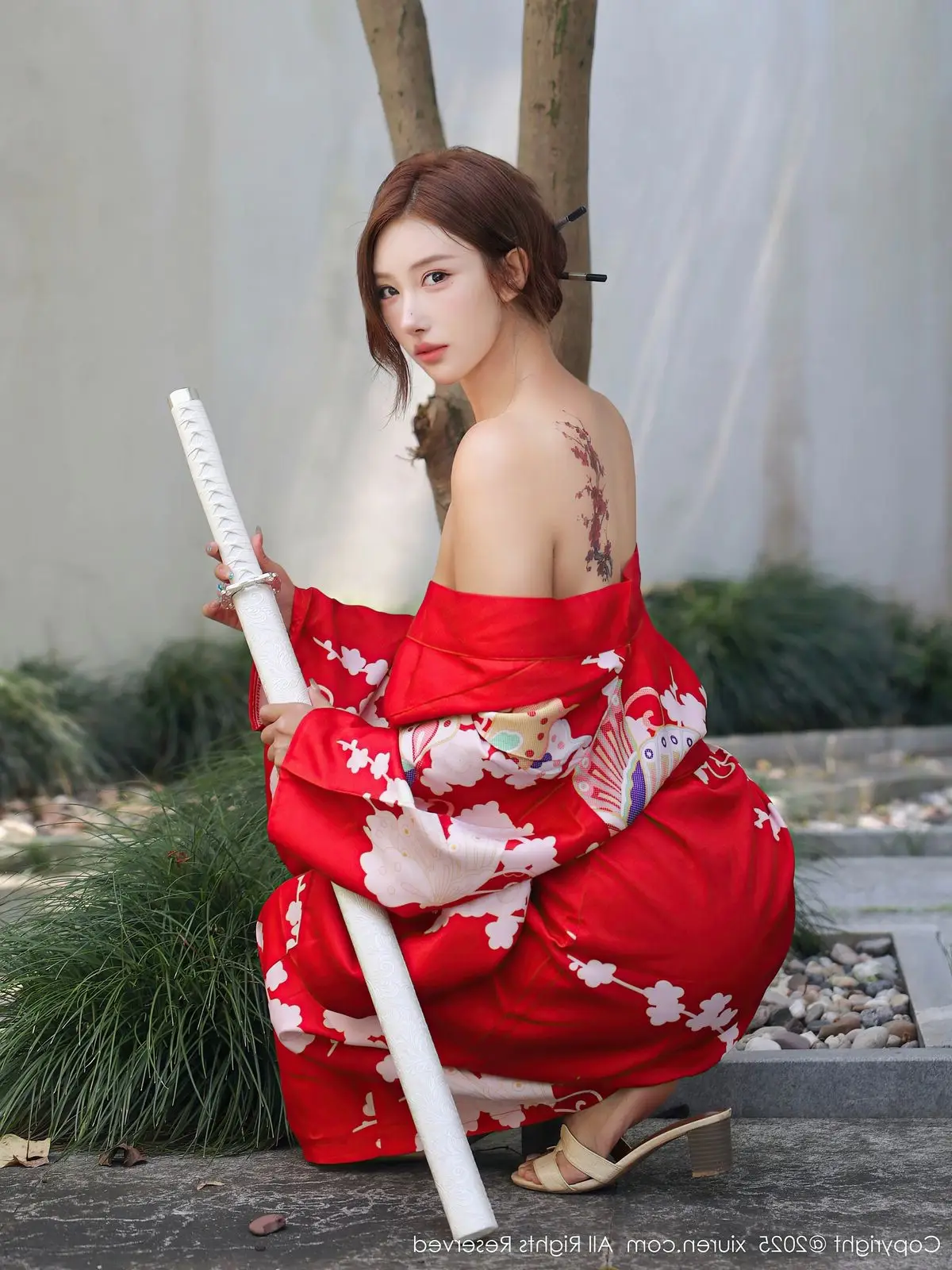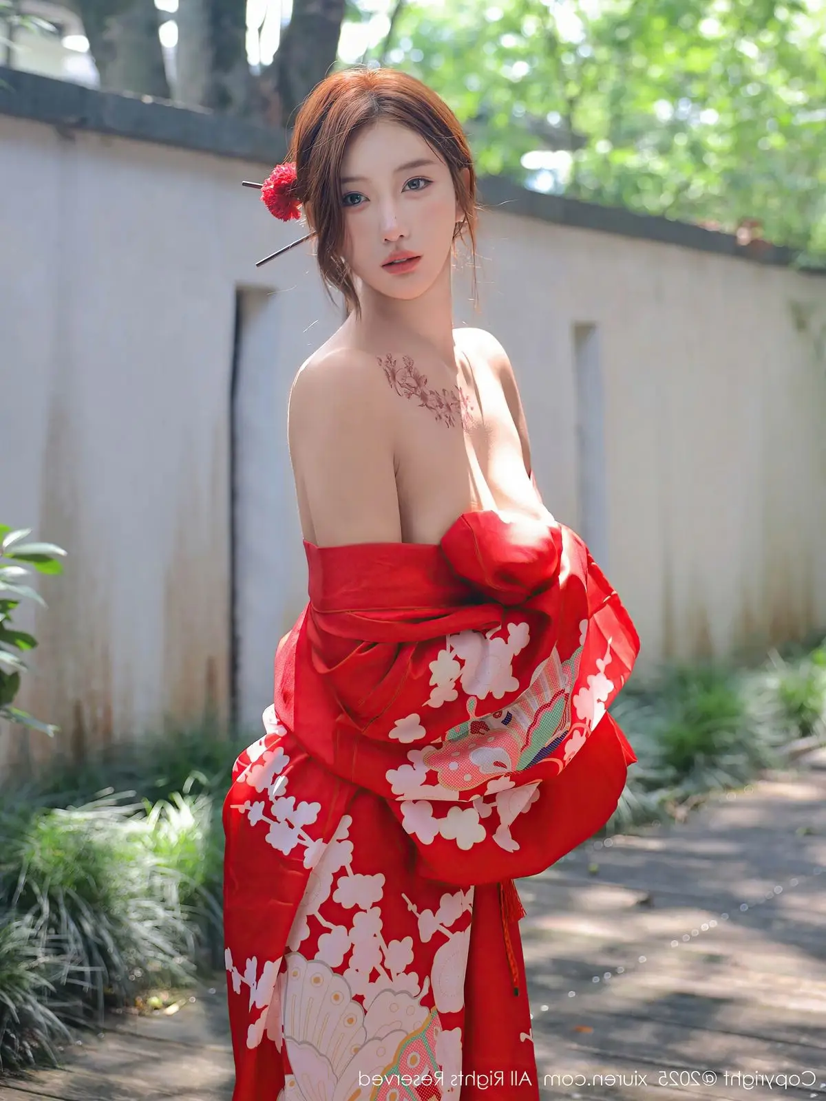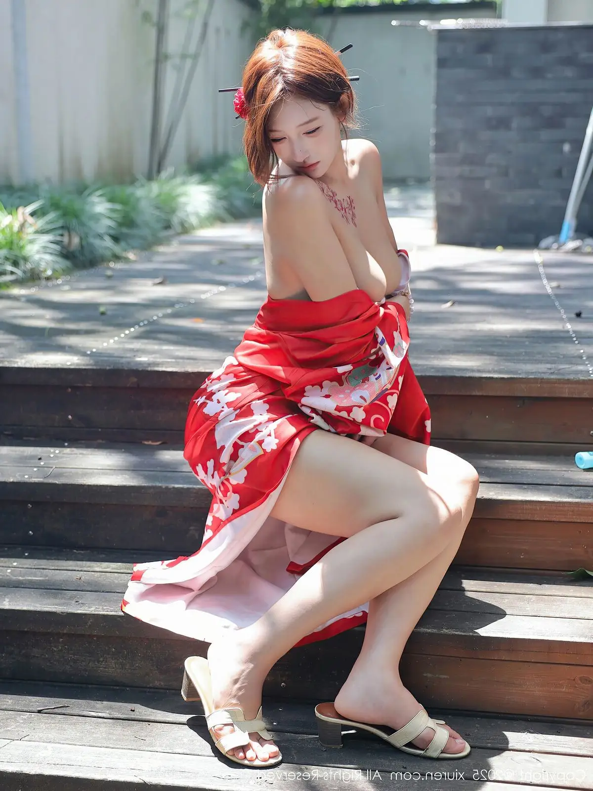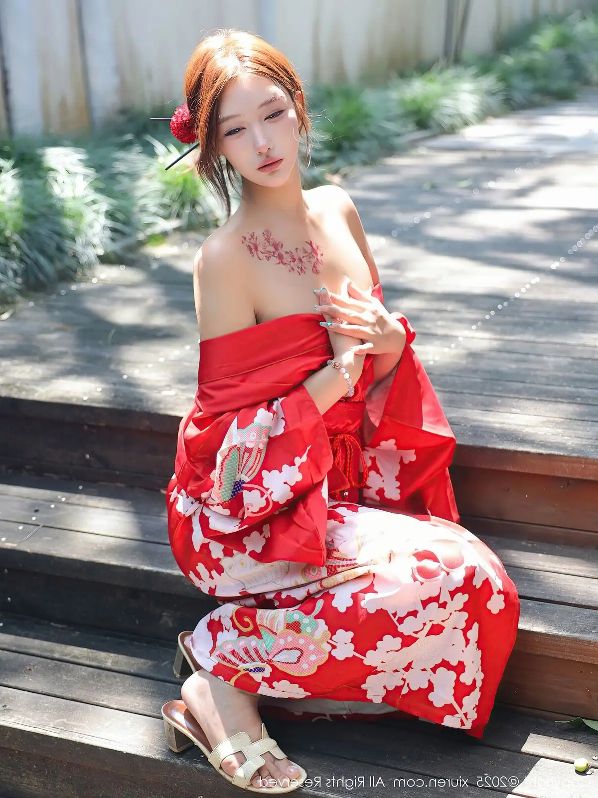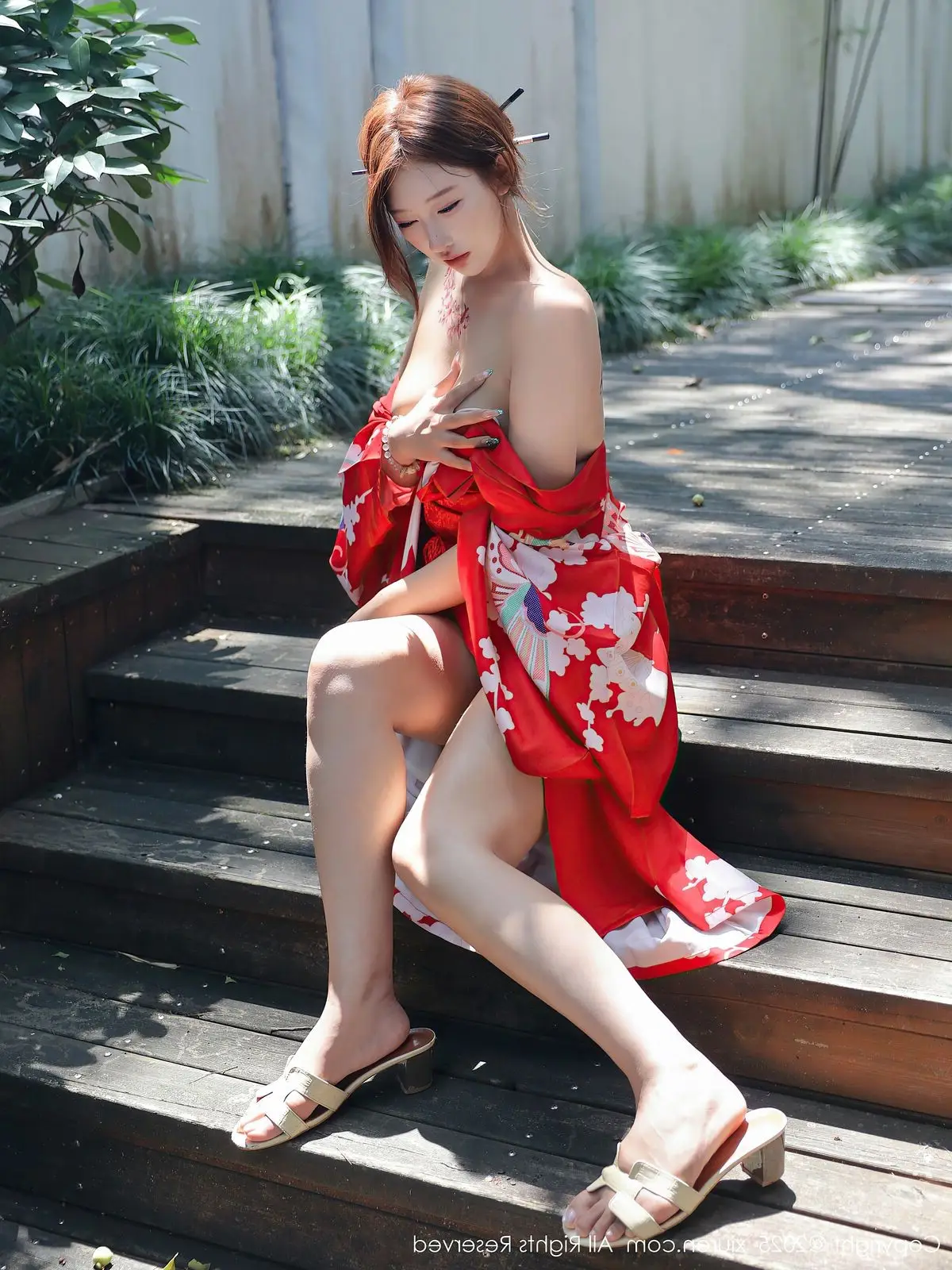 Jin Yun Xi Yuki: Enchanting Beauty in a Fiery Red Kimono, Captivating Every Gaze - XiuRen No.10683