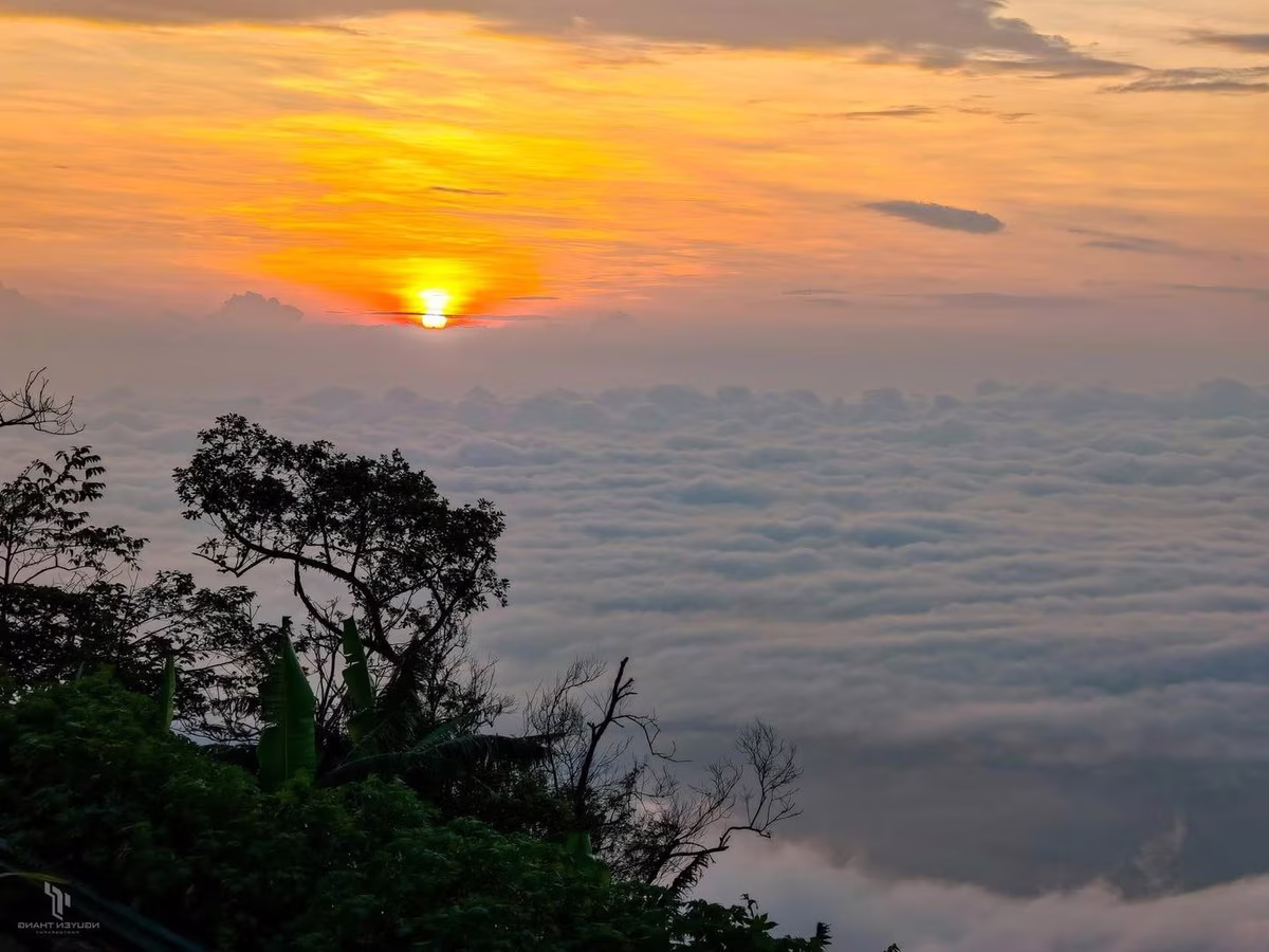 The stunning sunrise view from Ba Vi peak unfolds a mystical floating sea of clouds captivating every gaze The brilliant golden sunlight from the rising sun illuminates creating a majestic and poetic natural masterpiece This is an ideal check-in spot for those seeking to escape the city find fresh air and the tranquility of Ba Vi mountains and forests Exploring Ba Vi National Park in autumn visitors will enjoy a unique ecological retreat experience immersing themselves in pristine beauty and feeling the freshness of Northern Vietnam A short trip to Ba Vi promises unforgettable relaxing moments amidst the magical seasonal scenery