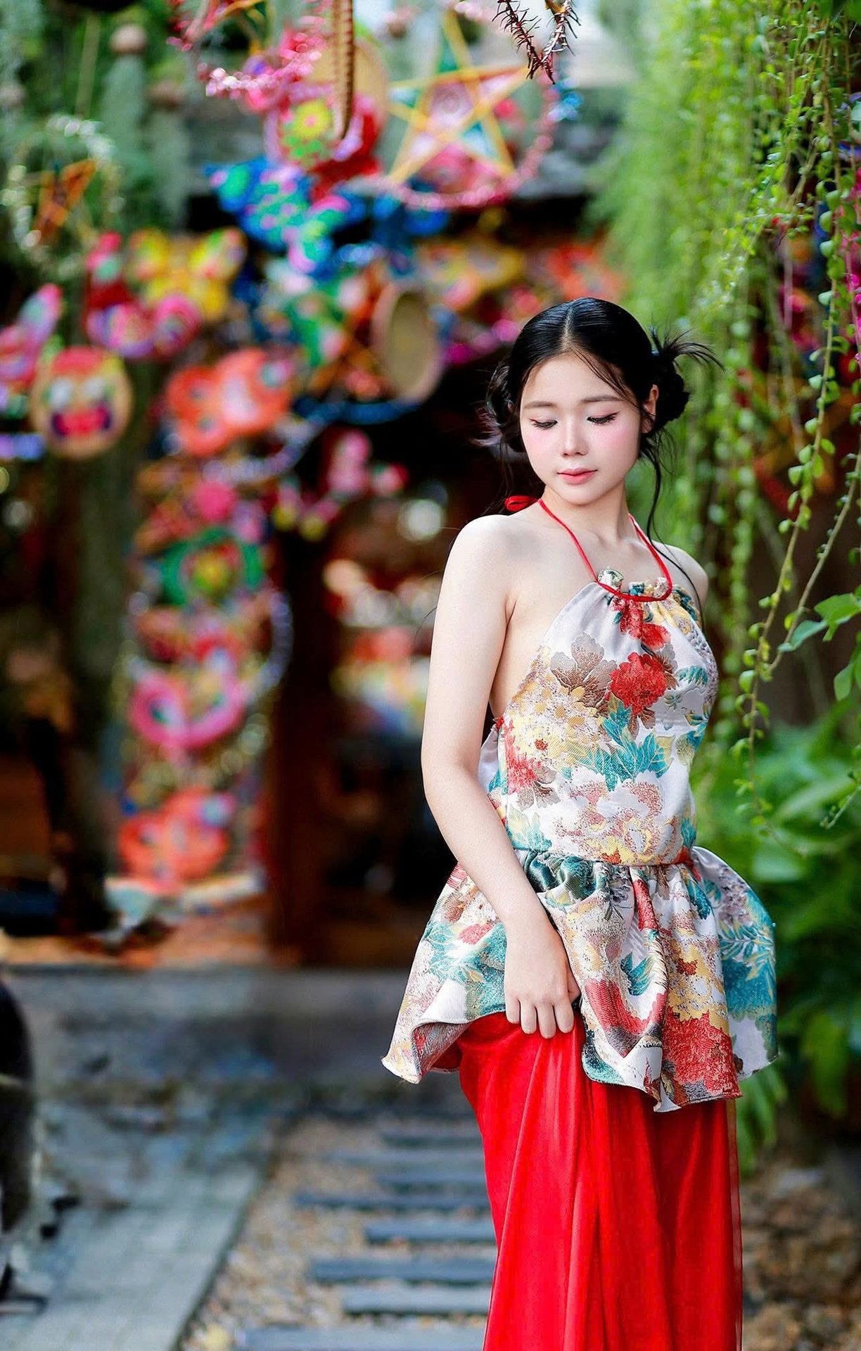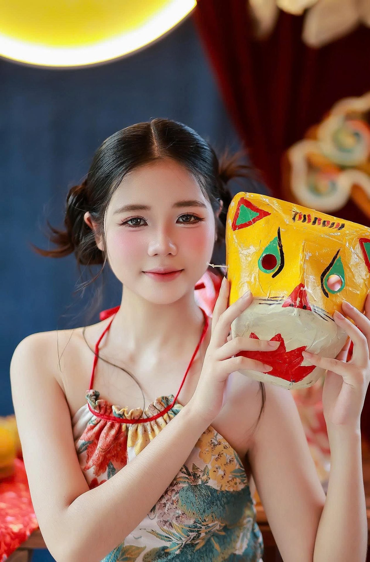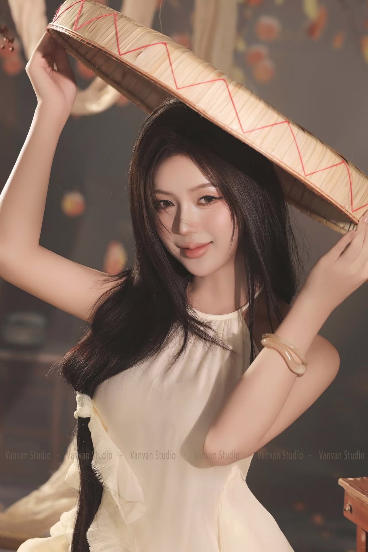 This MTYH Vol.224 image captures the gentle beauty of a young woman amidst a vibrant golden late autumn field. The beautiful girl with long hair and a pristine white dress sits gracefully among the dry grasses creating a poetic and romantic scene. Golden sunlight bathes the entire setting highlighting her delicate features and elegant charm. This moment represents a harmonious blend of human beauty and nature offering a sense of peace and tranquility. She exudes a feminine and captivating allure perfectly blending into the romantic late autumn natural landscape.Traditional Vietnamese Mid-Autumn Festival: Girl amidst Vibrant Cultural Colors