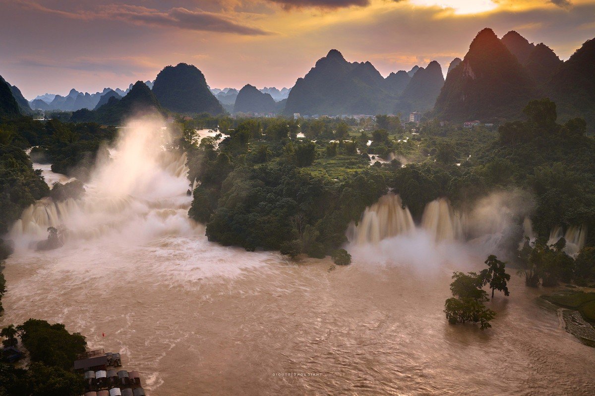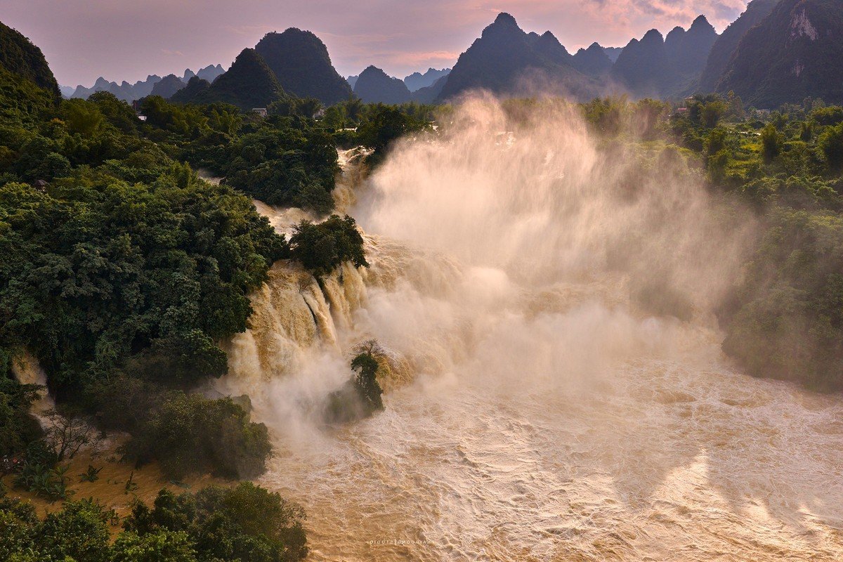 Ban Gioc Waterfall in Autumn Majestic Scenery Rushing White Waters Amidst Cao Bang Mountains