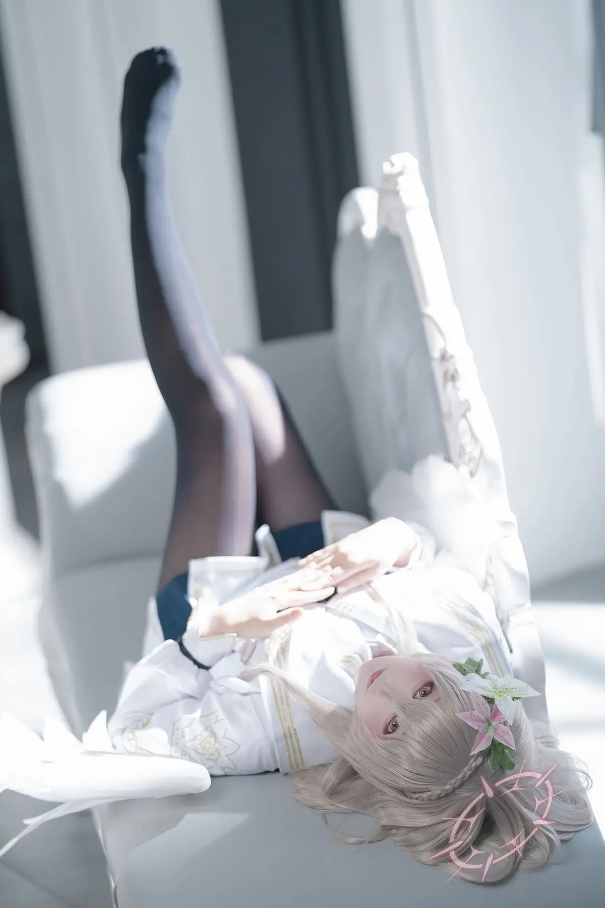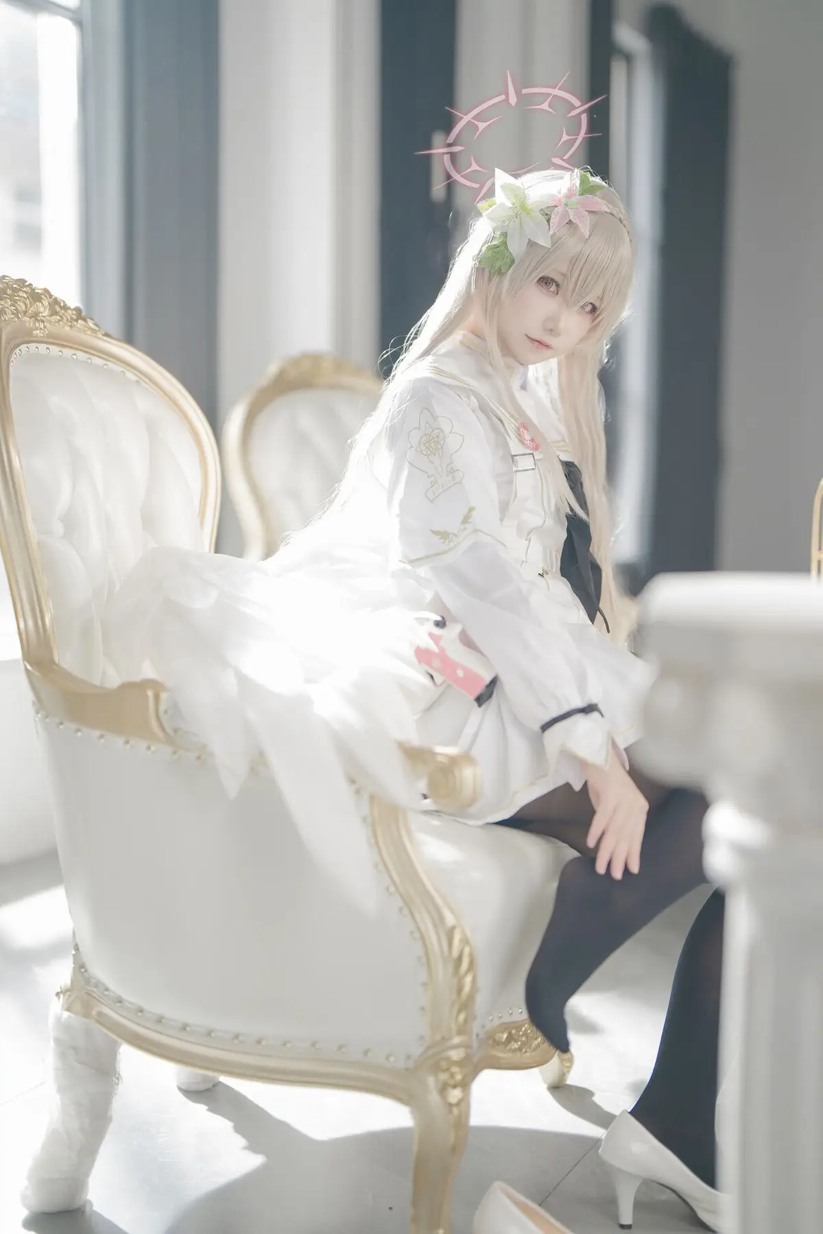 Immerse yourself in the ethereal beauty of Coser Lunananya as she masterfully embodies Kirifuji Nagisa from the popular game Blue Archive. With her flowing platinum hair, pristine white attire, and striking angelic wings, Lunananya perfectly captures Nagisa's elegant and refined essence. The serene setting, bathed in soft natural light, further enhances the character's pure and gentle charm. Every detail, from the delicate black bow to her graceful posture on the classic armchair, contributes to a captivating visual masterpiece. This stunning cosplay offers an exquisite experience for Blue Archive fans and admirers of sophisticated cosplay artistry.#Coser #Lunananya #Kirifuji #Nagisa #BlueArchive #Cosplay #AnimeCosplay #AngelCosplay