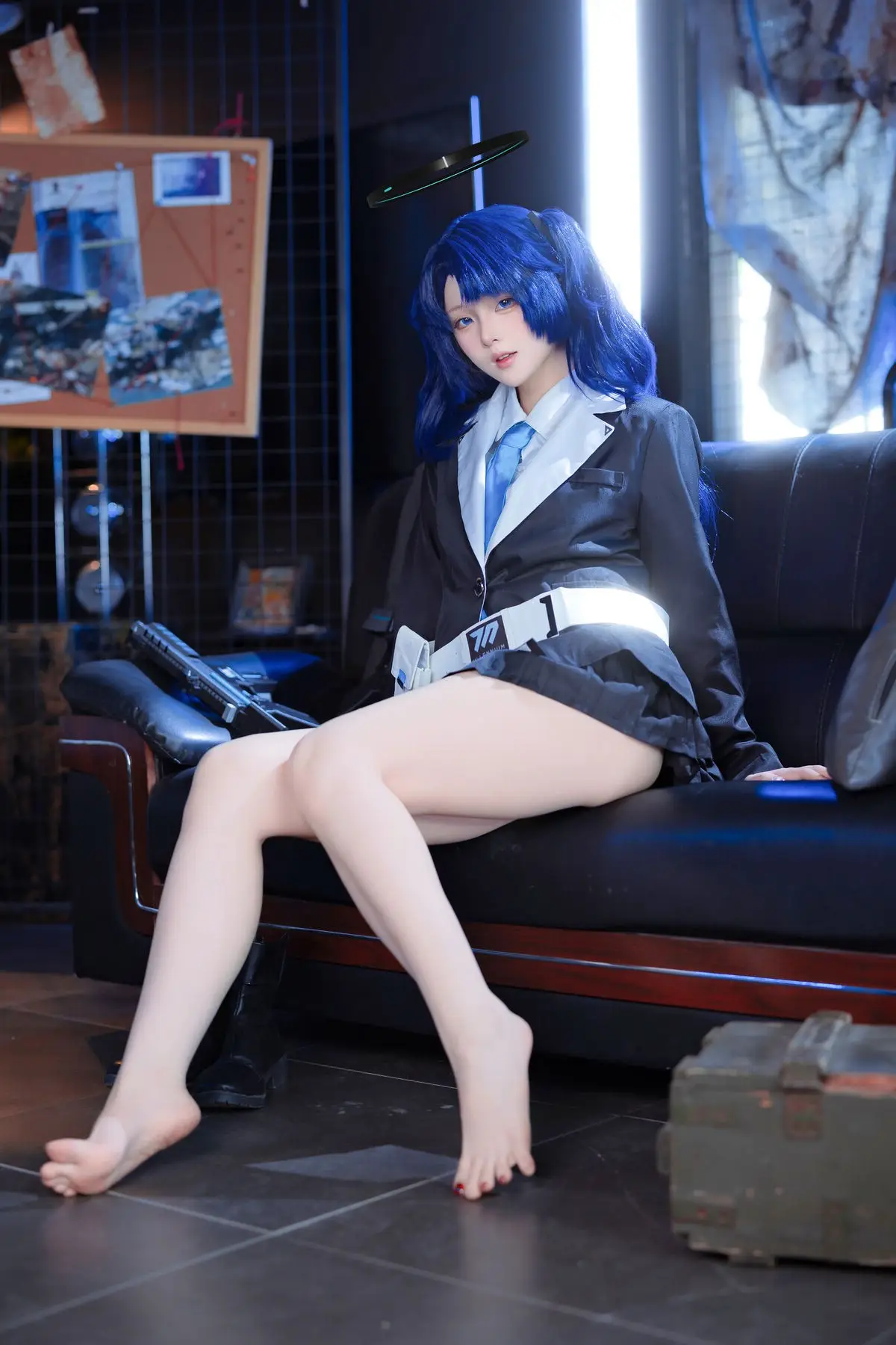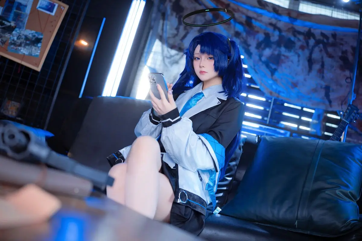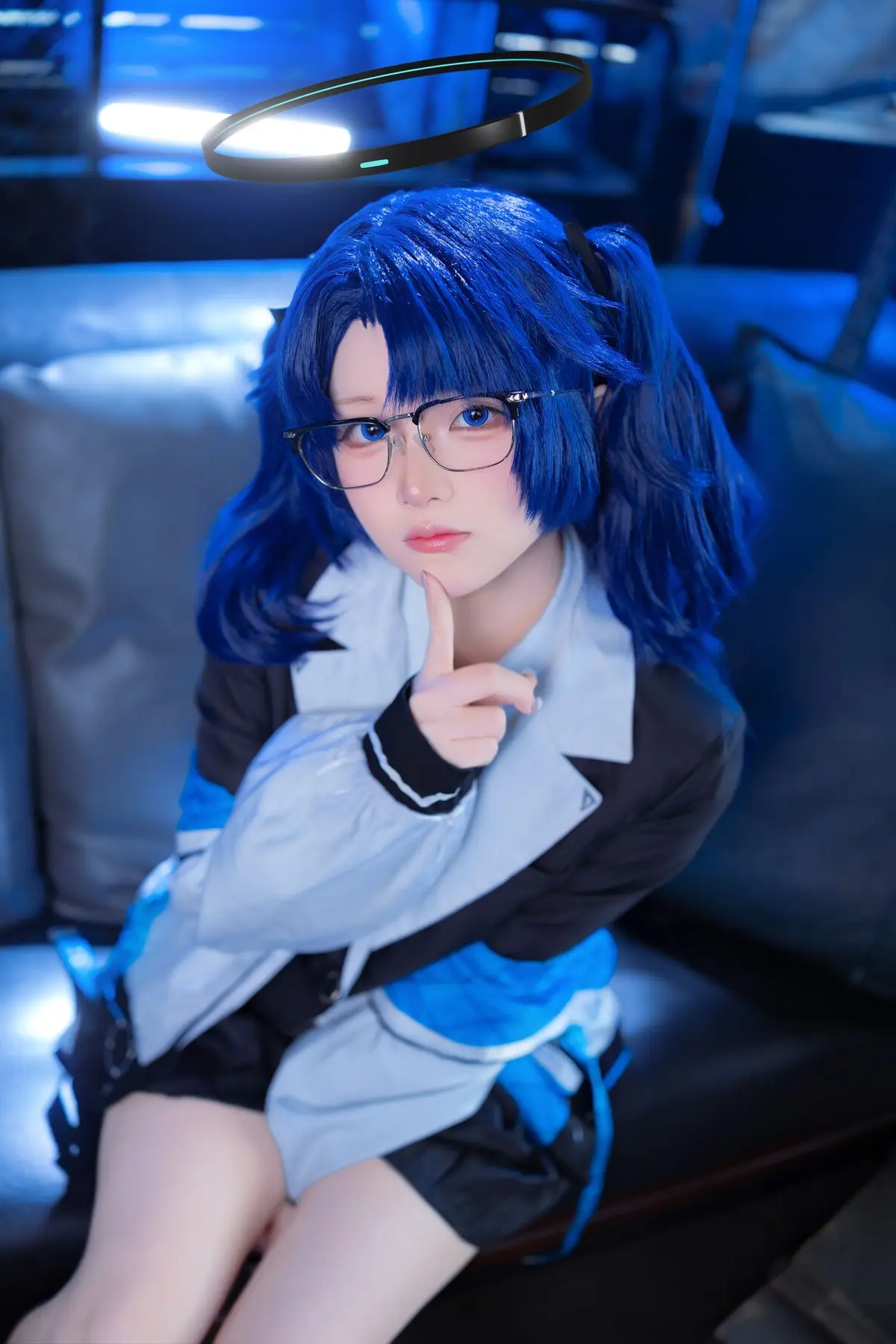 This stunning image showcases an exceptional portrayal of Amau Ako from the popular game Blue Archive, brought to life by cosplayer Jiu Qi Miao. Jiu Qi Miao perfectly captures the sharp and captivating aura of the character, from her flowing pastel blue hair to the meticulously detailed dark blue academy uniform. Every small detail, such as the red bow in her hair, the gleaming gold badge, and the white gloves, is authentically recreated, demonstrating the cosplayer's dedication and passion. With a focused gaze and an elegant sitting posture, Jiu Qi Miao not only wears the costume but also breathes life into Amau Ako, presenting a vibrant and incredibly appealing version. This is undoubtedly a professional cosplay masterpiece that will keep viewers captivated and further enhance their appreciation for the Blue Archive universe.#Cosplay #AmauAko #BlueArchiveCosplay #JiuQiMiao #AnimeCosplay