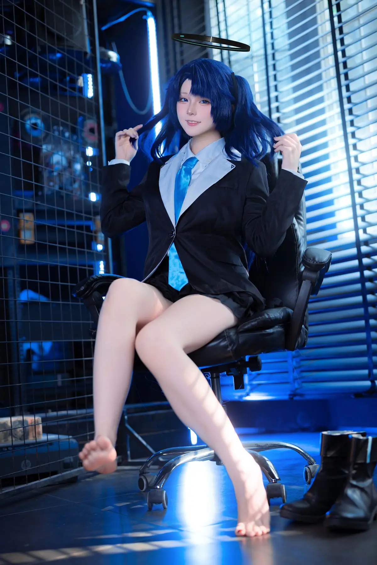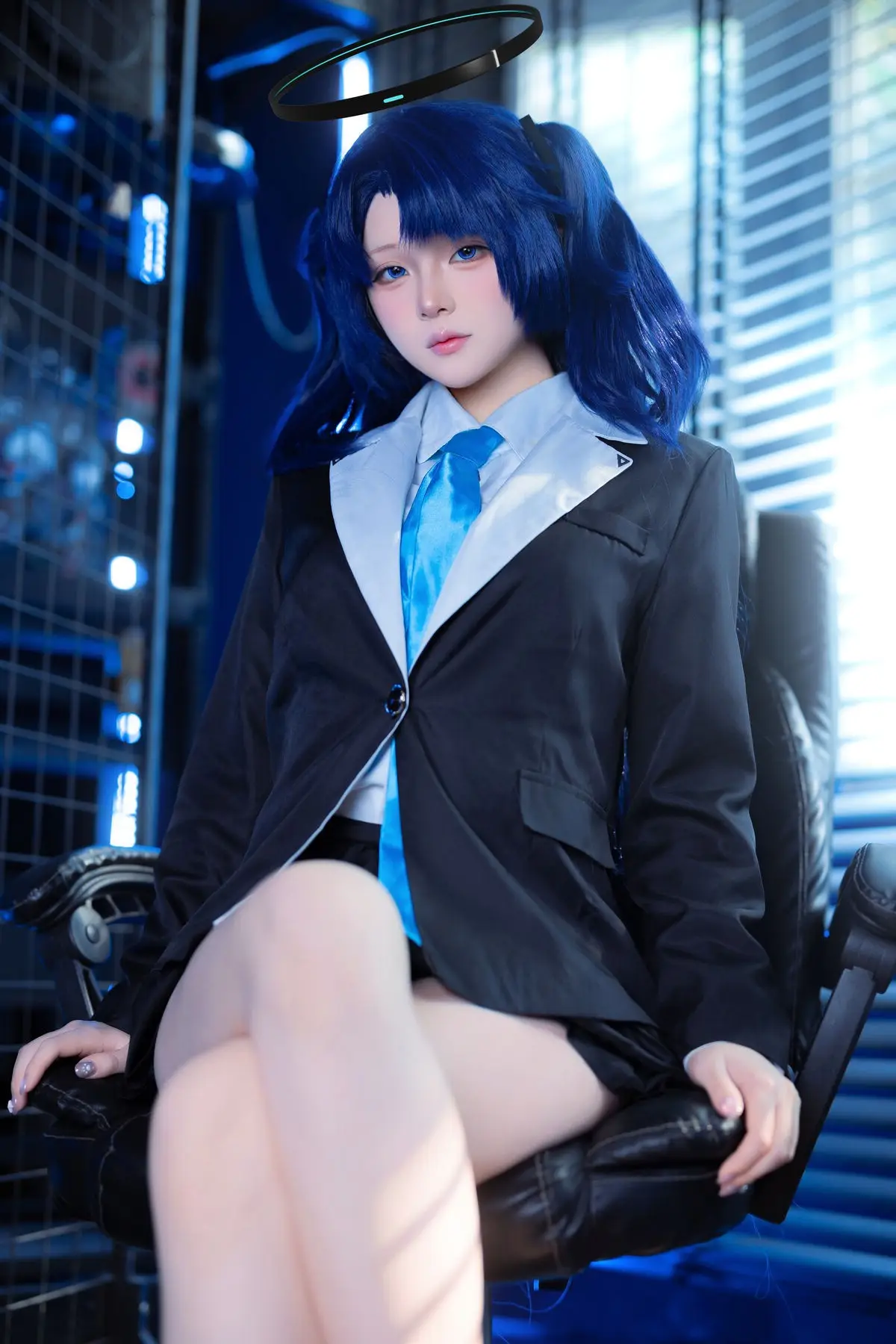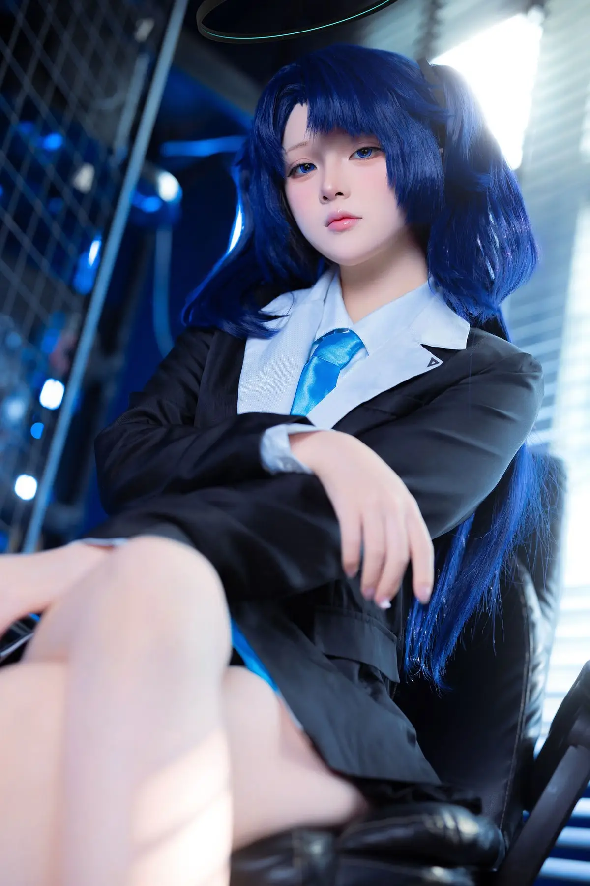 This stunning image showcases an exceptional portrayal of Amau Ako from the popular game Blue Archive, brought to life by cosplayer Jiu Qi Miao. Jiu Qi Miao perfectly captures the sharp and captivating aura of the character, from her flowing pastel blue hair to the meticulously detailed dark blue academy uniform. Every small detail, such as the red bow in her hair, the gleaming gold badge, and the white gloves, is authentically recreated, demonstrating the cosplayer's dedication and passion. With a focused gaze and an elegant sitting posture, Jiu Qi Miao not only wears the costume but also breathes life into Amau Ako, presenting a vibrant and incredibly appealing version. This is undoubtedly a professional cosplay masterpiece that will keep viewers captivated and further enhance their appreciation for the Blue Archive universe.#Cosplay #AmauAko #BlueArchiveCosplay #JiuQiMiao #AnimeCosplay