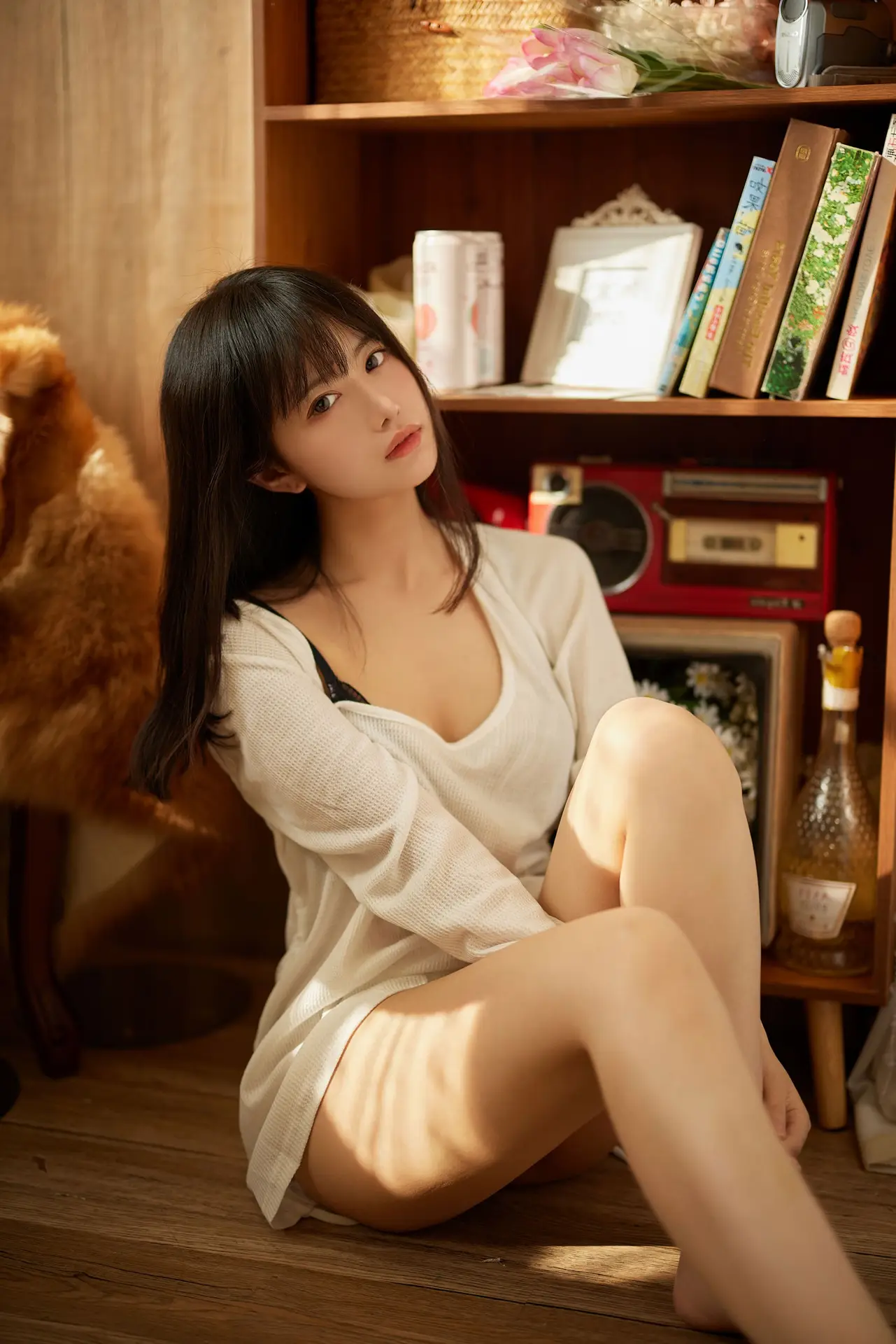 Shika Xiaolulu: Elegant Beauty in a Modern Library, A Captivating Serene View