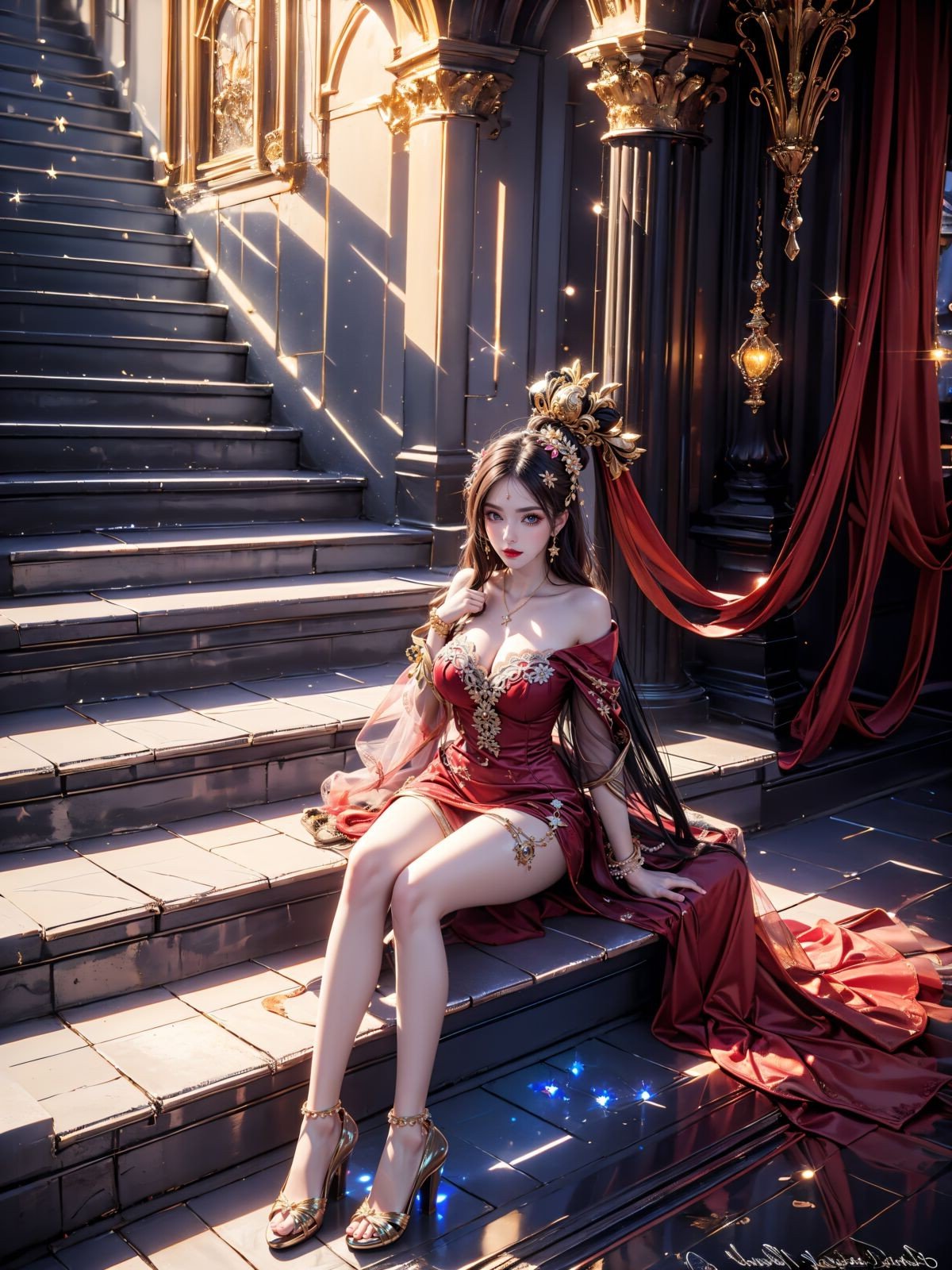 This stunning AI Generated image beautifully portrays Queen Medusa from the Battle Through the Heavens series in an enchanting setting. Medusa captivates with her irresistible allure, featuring long flowing dark hair, mesmerizing eyes, and luscious red lips. Her minimalist yet exquisite golden attire gracefully accentuates her slender and elegant physique. The backdrop unfolds as a mystical forest, awash in the vibrant pink hues of blooming cherry blossoms, creating a romantic and ethereal atmosphere. Soft light filters through the canopy, highlighting Medusa's majestic aura and regal beauty. This digital masterpiece perfectly blends advanced AI technology with rich imagination, presenting a Medusa who is both powerful and inherently feminine, captivating the hearts of fans and admirers alike.
