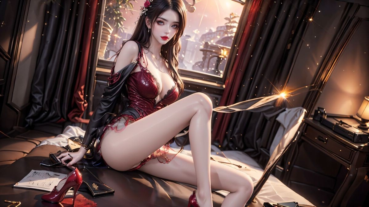 Chinese Model No.2336 Cherry: Elegant in Sheer Hosiery and High Heels