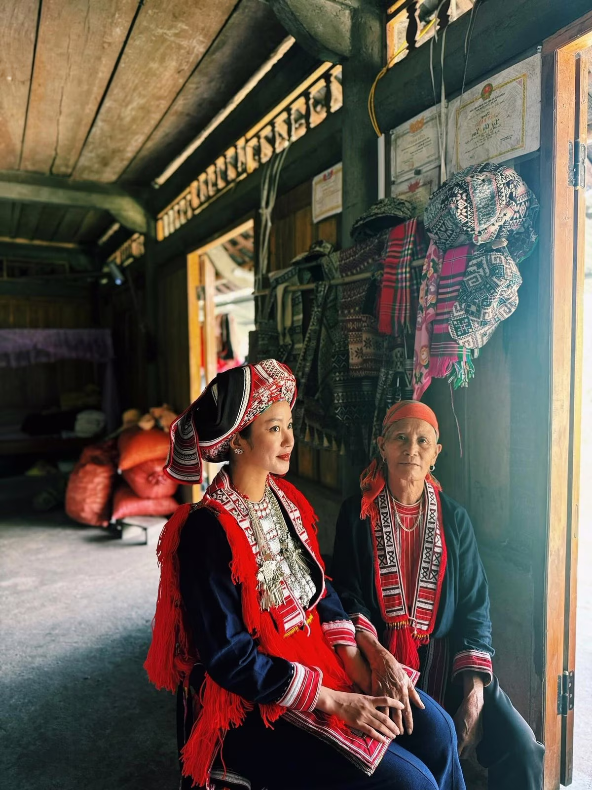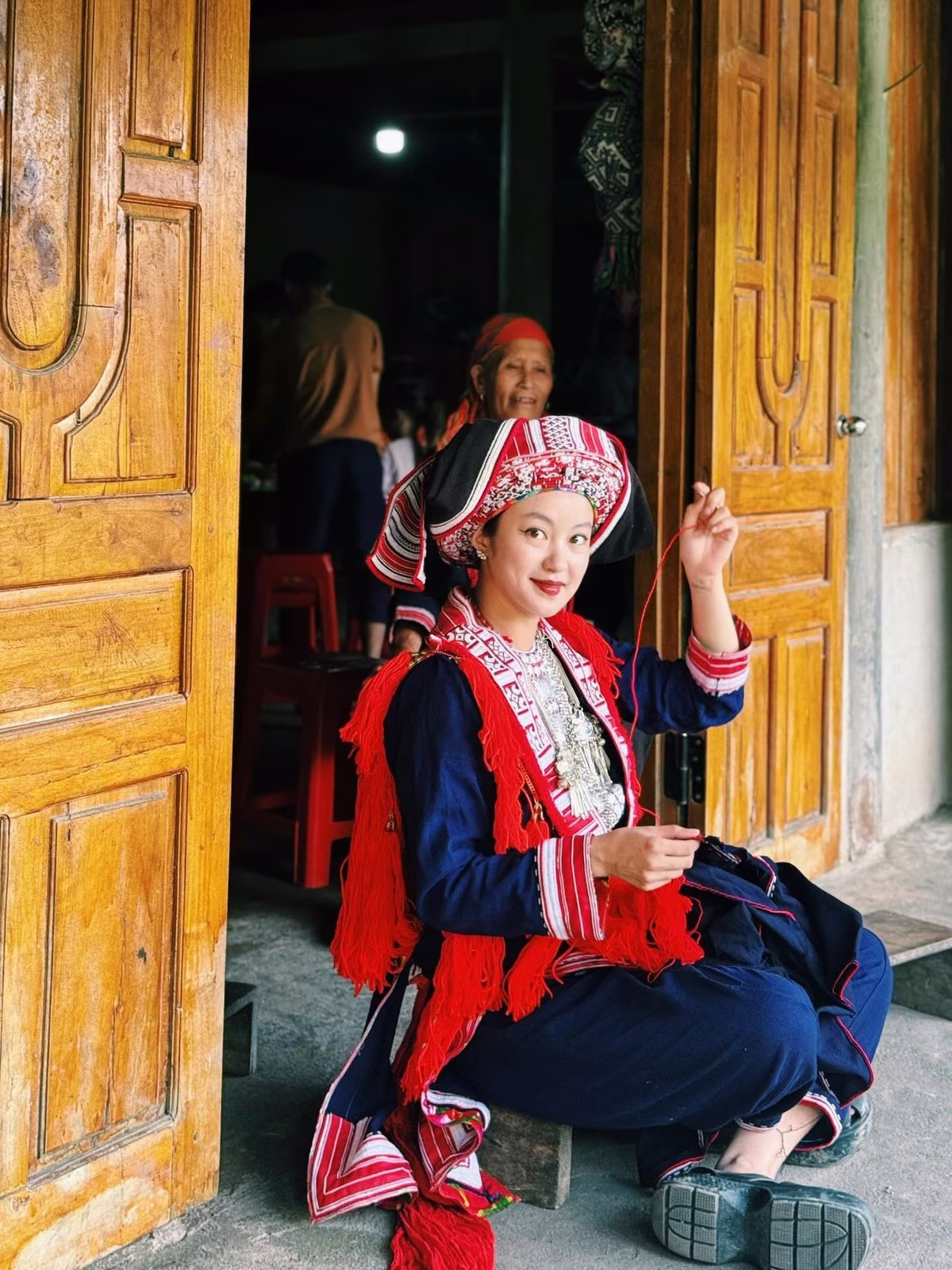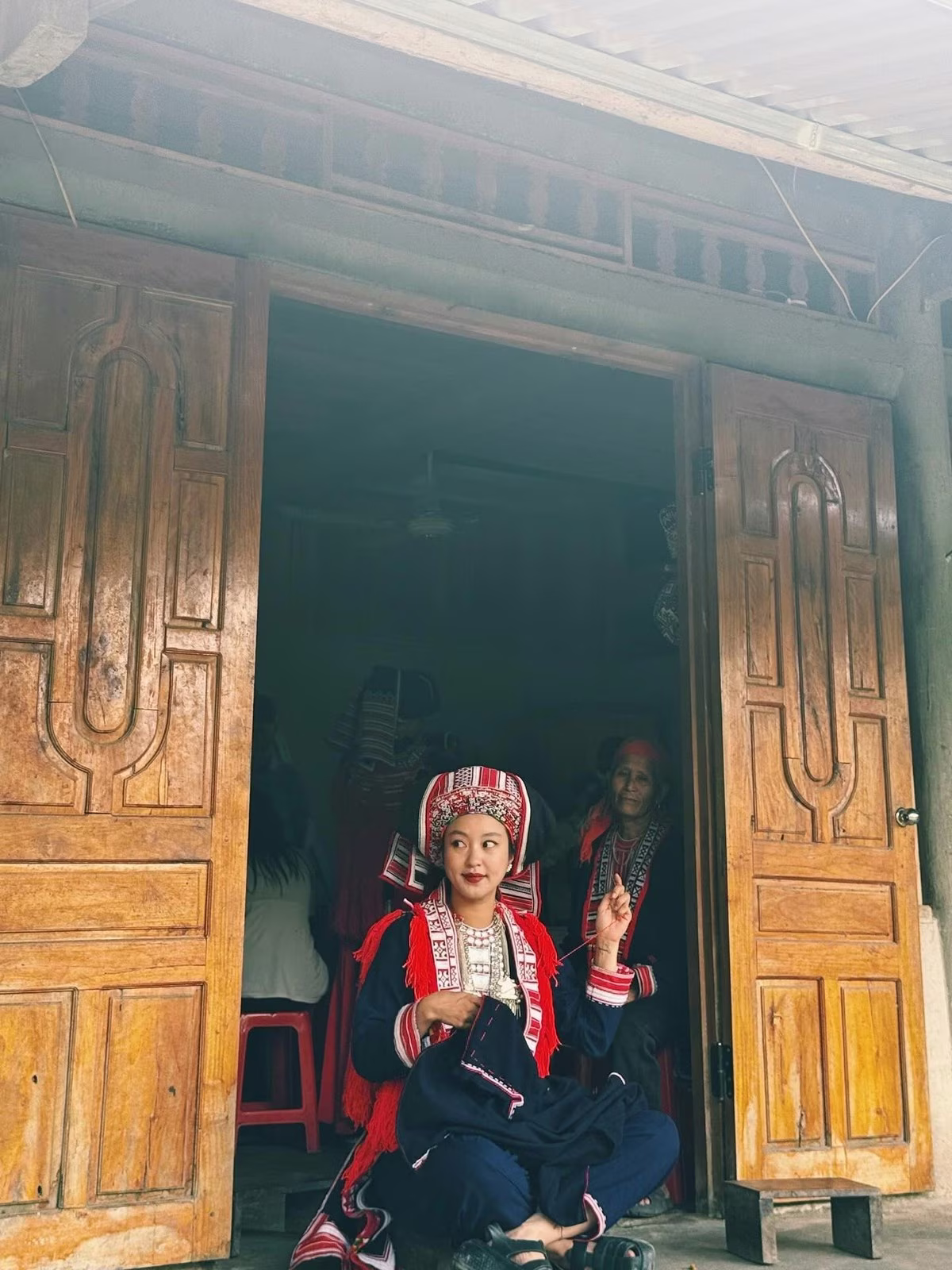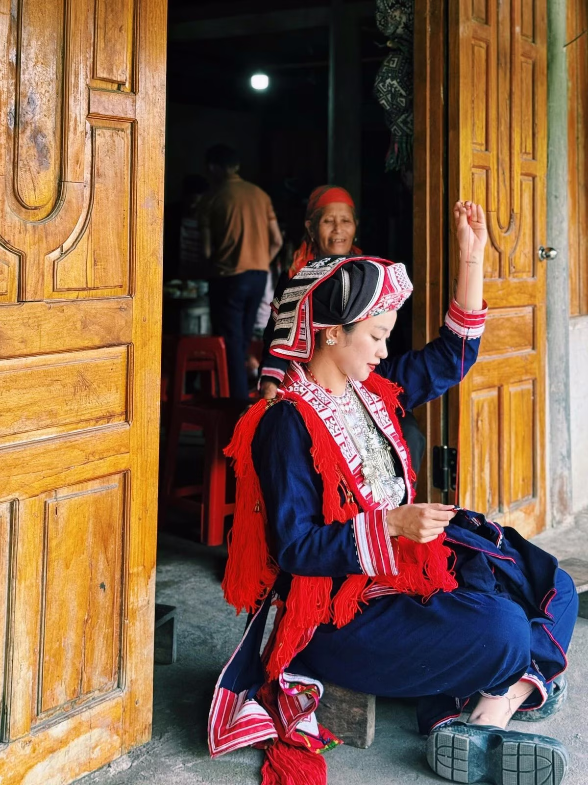 This image captures a graceful moment of Mi Van in the traditional attire of a Red Dao girl. She is meticulously engaged in handicraft work demonstrating her deep immersion into the ethnic cultural beauty of the highlands. This exploratory trip is not just a journey to experience the scenery but also an opportunity for Mi Van to share impressive images of the local people's life and traditions. The beauty of the former Hanoi hot girl donning Red Dao clothing has captivated many fans who admire her cultural appreciation and simplicity. This is truly a meaningful journey honoring the unique cultural values of Vietnam.Stories