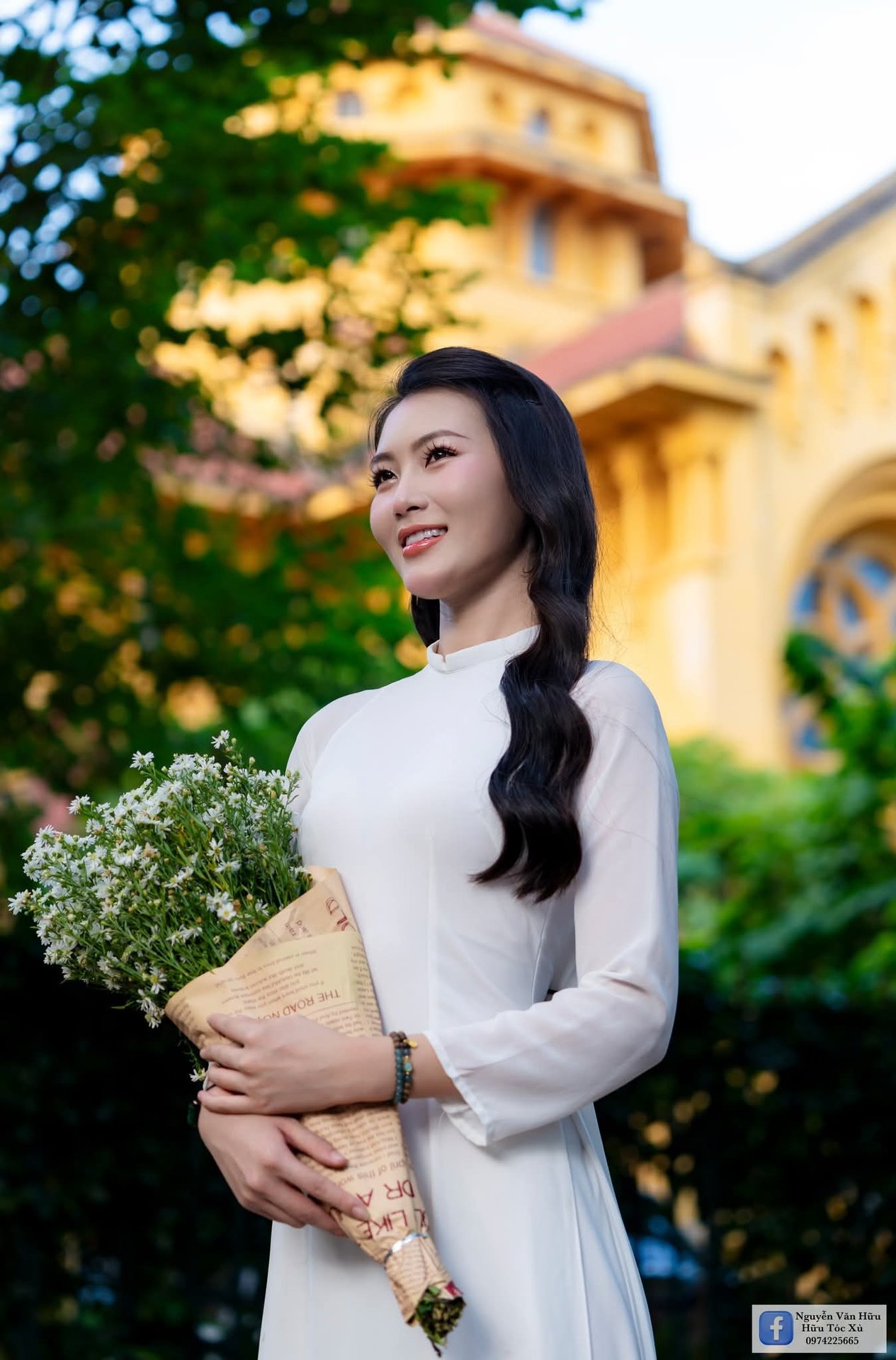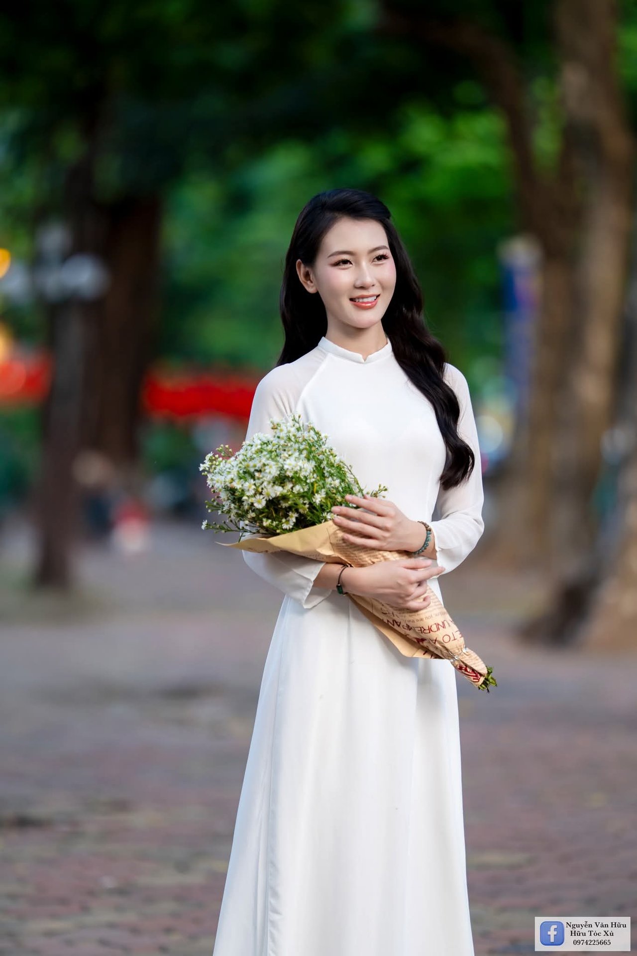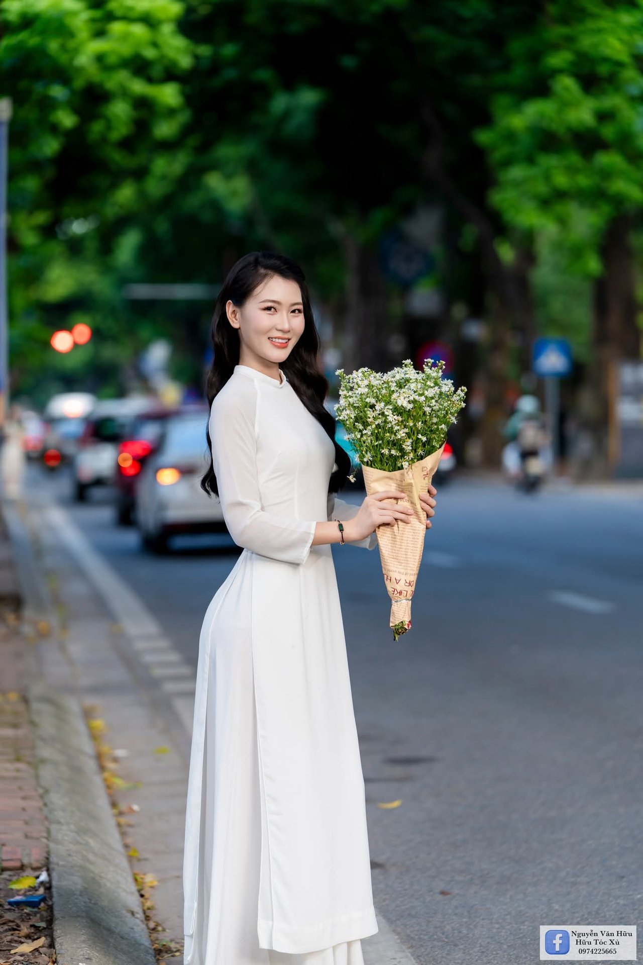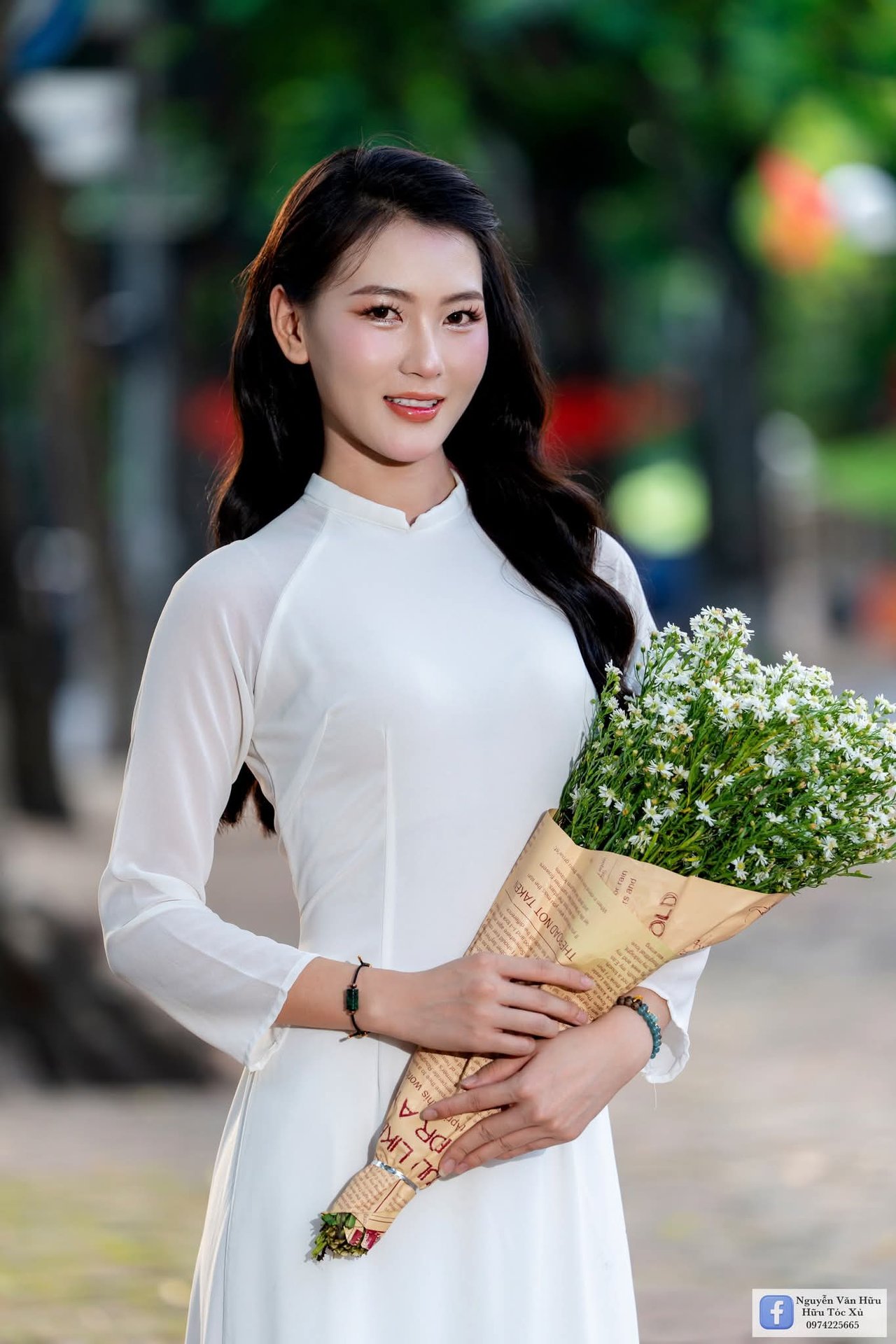 Actress Hoang Khanh Ly, known as the 'hot girl at the boarding house', shines with pure Vietnamese beauty in a pristine white Ao Dai. Her radiant smile and gentle grace serve as a meaningful welcome to National Day 2/9. This photo collection not only honors the traditional beauty of Vietnamese women but also expresses national pride through the small flag detail on her dress. Khanh Ly truly captivates fans with her elegant and refined image, evoking deep cultural values and patriotic spirit. She embodies a harmonious blend of modernity and tradition.