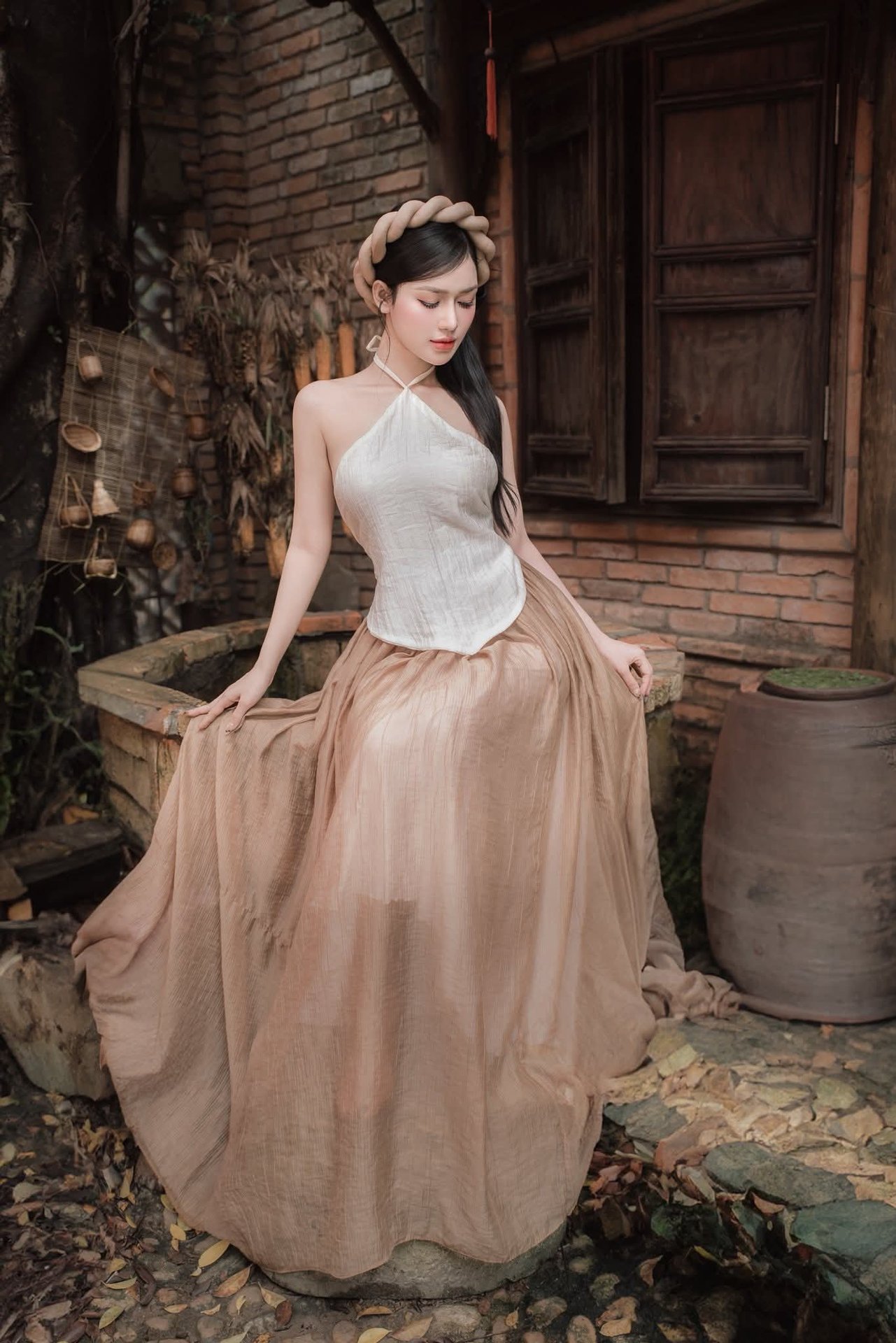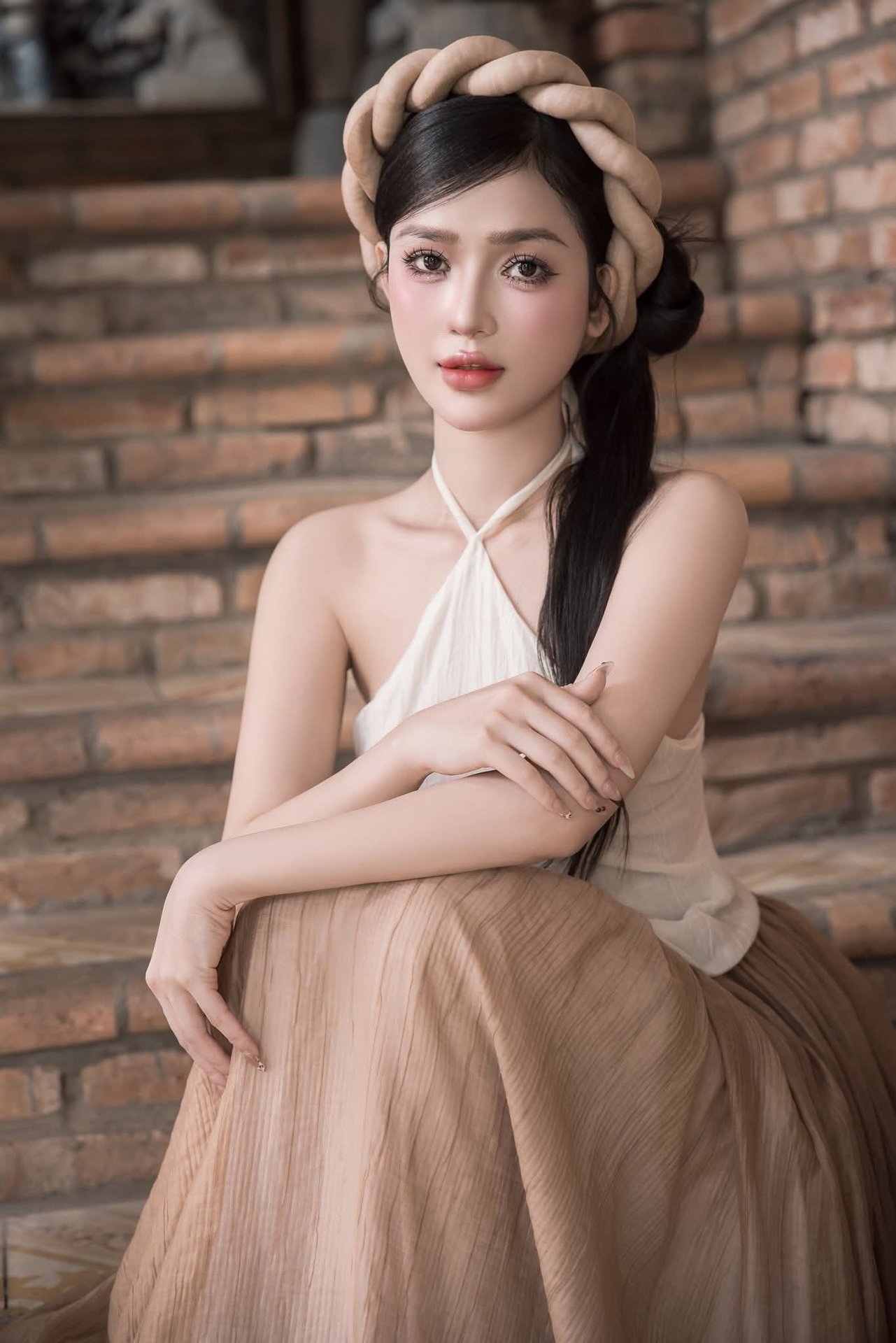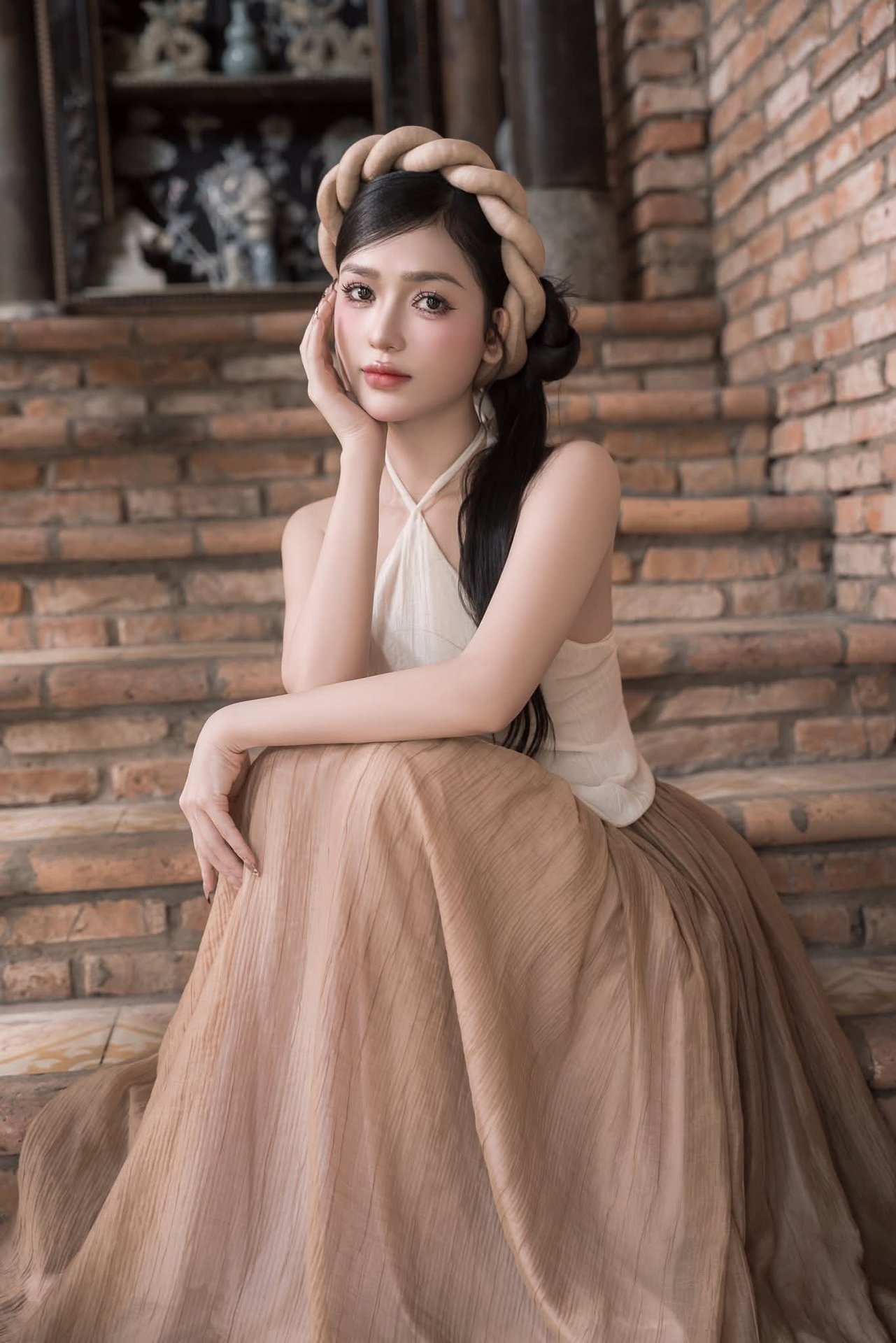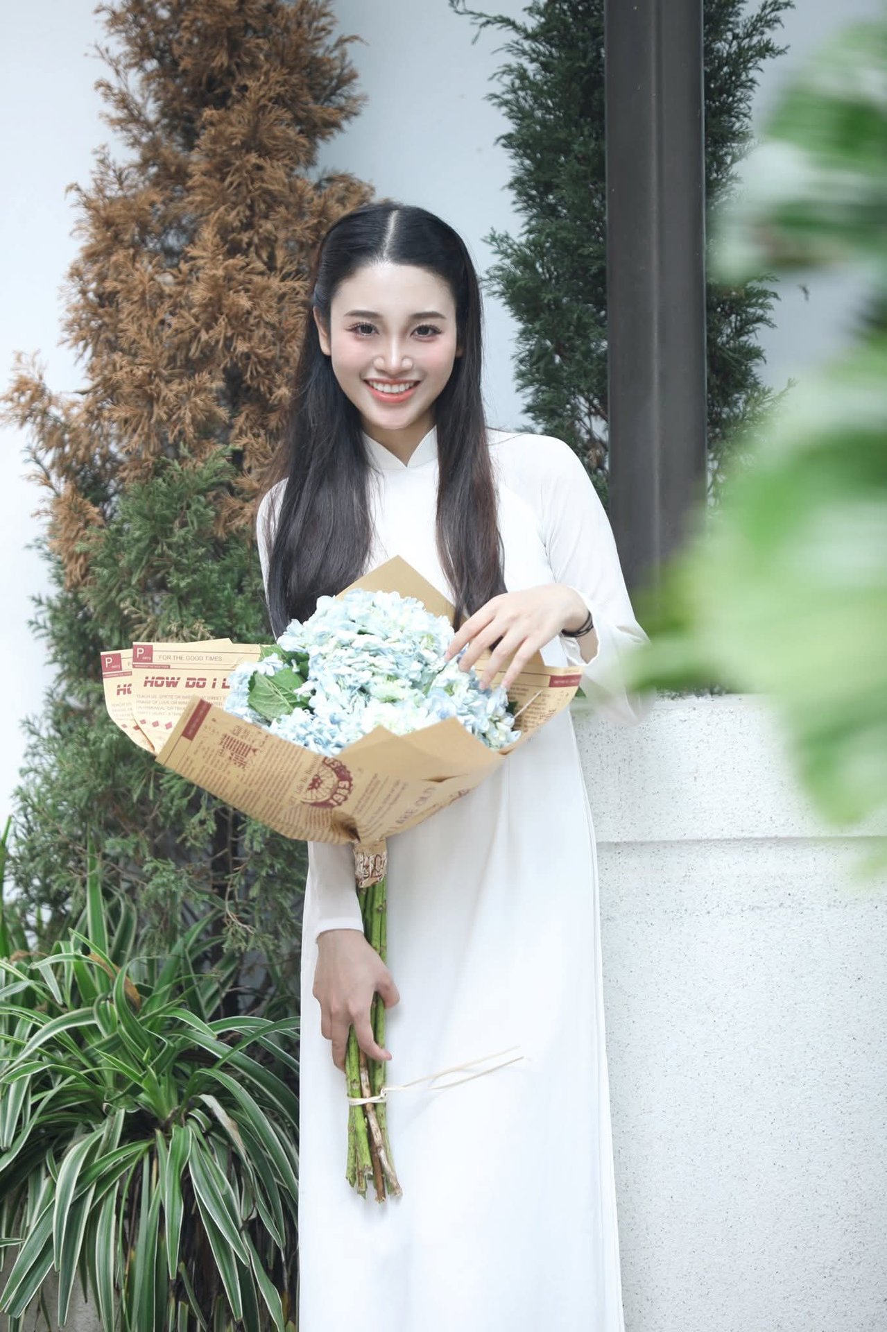 Actress Hoang Khanh Ly, known as the 'hot girl at the boarding house', shines with pure Vietnamese beauty in a pristine white Ao Dai. Her radiant smile and gentle grace serve as a meaningful welcome to National Day 2/9. This photo collection not only honors the traditional beauty of Vietnamese women but also expresses national pride through the small flag detail on her dress. Khanh Ly truly captivates fans with her elegant and refined image, evoking deep cultural values and patriotic spirit. She embodies a harmonious blend of modernity and tradition.