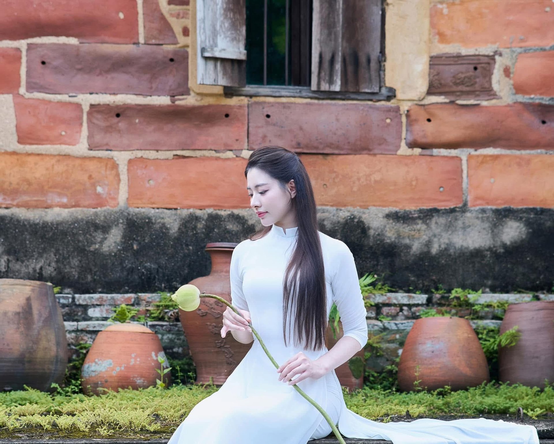 This stunning image captures the graceful moment of a beautiful Vietnamese woman in a pristine white Ao Dai. The traditional Ao Dai dress, a cultural symbol of Vietnam, accentuates her slender figure and gentle beauty. Holding a characteristic conical hat (nón lá) with delicate grace, she exudes elegance and poetic charm. This picture represents the traditional beauty and grace of Vietnamese women, deeply imbued with Vietnamese cultural identity. The photograph is not only an artwork but also an ode to the sophistication of the Ao Dai and the Vietnamese girl. Keywords: Ao Dai Vietnam, beautiful Ao Dai woman, traditional culture, conical hat, Vietnamese female beauty.Traditional Vietnamese Silk Ao Dai Portrait: Elegant Asian Beauty - Gentle Woman Wallpaper HD