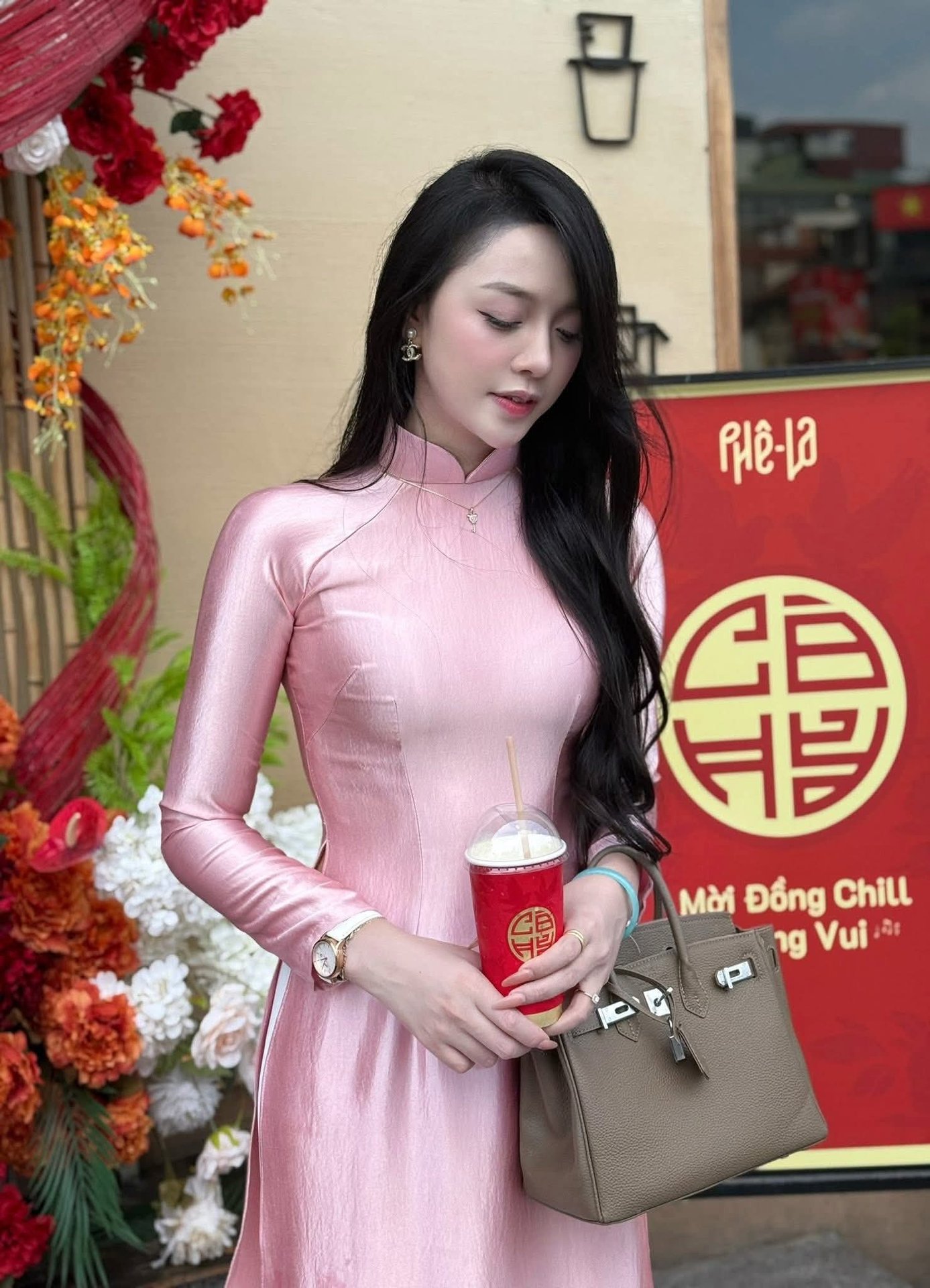 The captivating AI-like hot girl captured a stunning check-in moment at a cafe currently trending among young people Dressed in a pristine white dress and a fashionable hat she gracefully poses by an ancient fountain and vibrant pink flowers creating a romantic scene The European-inspired garden cafe setting is not only an ideal destination for beverages but also a place that subtly spreads a patriotic spirit through its meticulously arranged corners This image not only showcases unique personal style but also invites everyone to explore popular patriotic locations where beauty and culture intertwine attracting all eyes and inspiring unforgettable experiencesHot girl Linh Kul in traditional Ao Dai with Vietnamese flag shares beautiful peace message for National Day 2/9