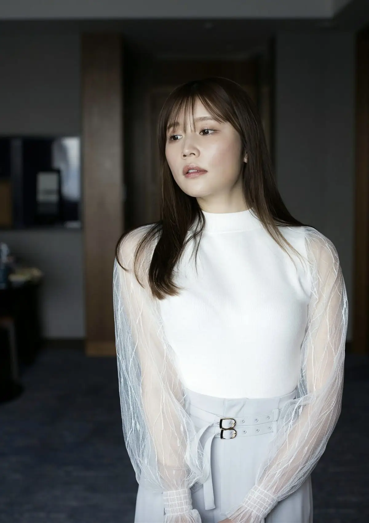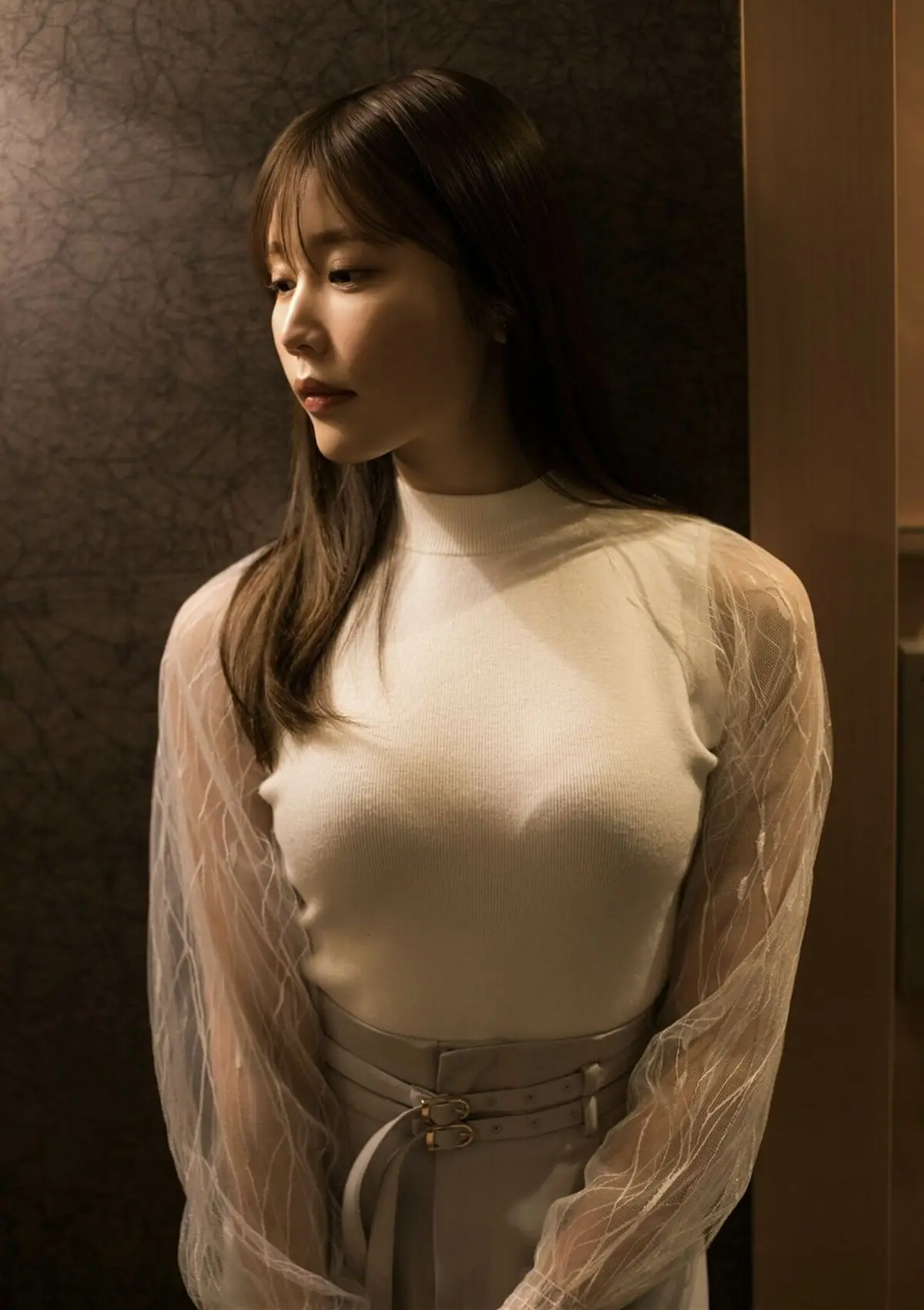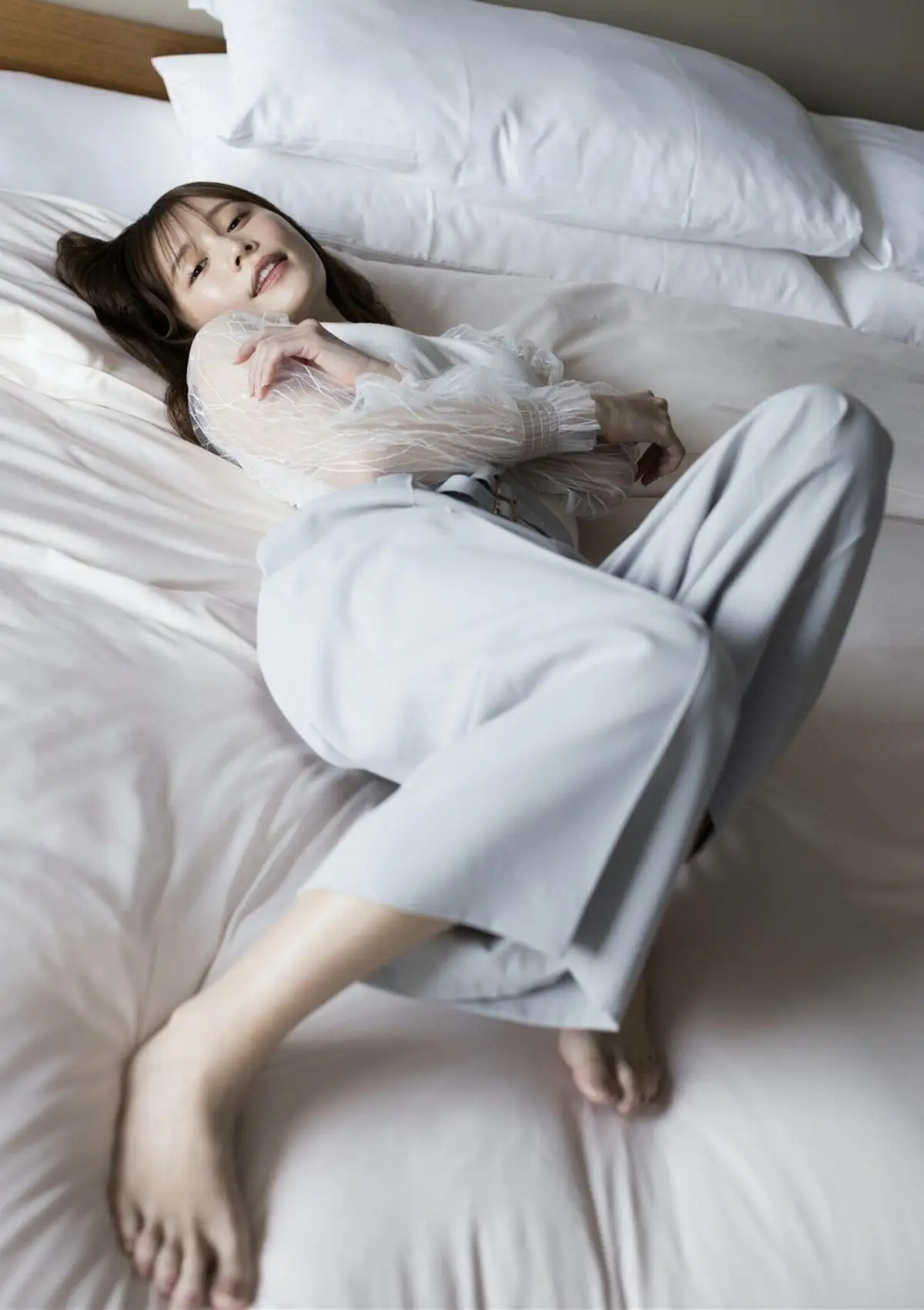 This captivating image beautifully portrays Yuka Kohinata (小日向ゆか), a radiant presence from the BRODY Digital Photo Book "Drenched in Love". Her serene gaze and gentle expression convey a sense of delicate charm and introspection. Dressed in a pristine white top with ethereal sheer sleeves, Yuka exudes an elegant simplicity that is both enchanting and refined. The softly blurred background skillfully draws attention to her captivating aura, making her the undeniable focal point. This photograph transcends a mere snapshot, offering a glimpse into a narrative of inner beauty, tranquility, and profound emotions. It invites viewers to delve deeper into the full collection, experiencing the emotional depth and artistic vision that Yuka Kohinata embodies.#YukaKohinata #JapaneseModel #BRODY #DigitalPhotobook #AsianBeauty