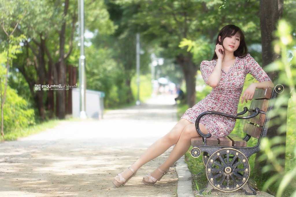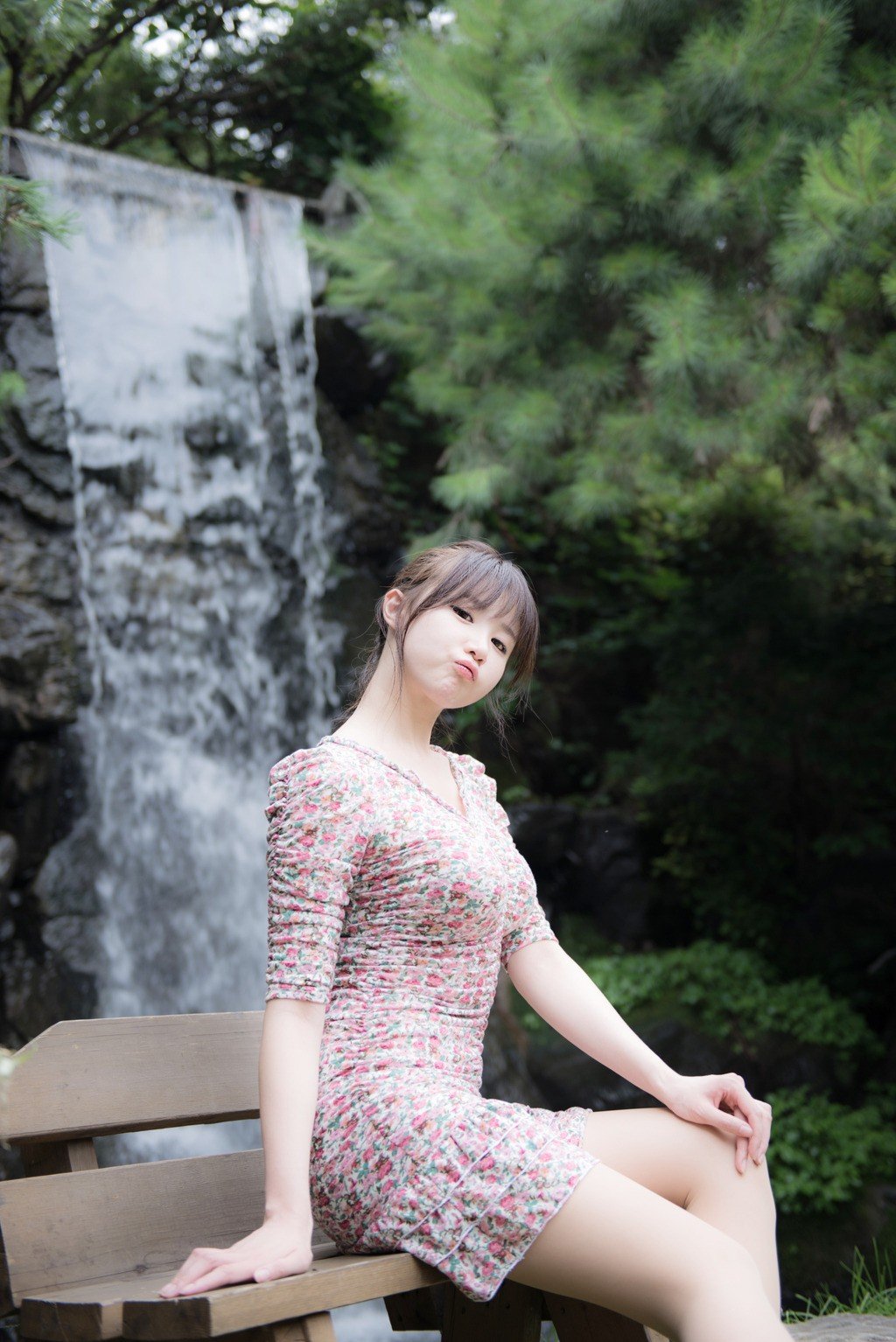 Yeon Da Bin: Adorable Korean Girl in Floral Dress Outdoors