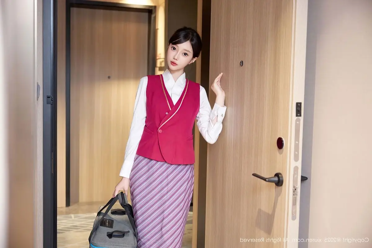 This captivating image, part of the XiuRen No.10581 collection, features model Nai Fu Jiang EVA exuding sweet charm and allure. Dressed in a delicate pastel pink uniform, she radiates grace and elegance. Her gentle pose on the edge of the bed, combined with a captivating gaze, creates an irresistible appeal. Nai Fu Jiang EVA skillfully showcases her slender figure and long legs, highlighting her confident and attractive demeanor. The modern hotel room setting provides a sophisticated backdrop, enhancing the overall refined aesthetic of the photograph. This collection promises memorable moments capturing Nai Fu Jiang EVA's harmonious blend of tenderness and subtle sensuality.#NaiFuJiangEVA #XiuRen #PinkUniform #AsianModel #ElegantStyle #OL #Nurse
