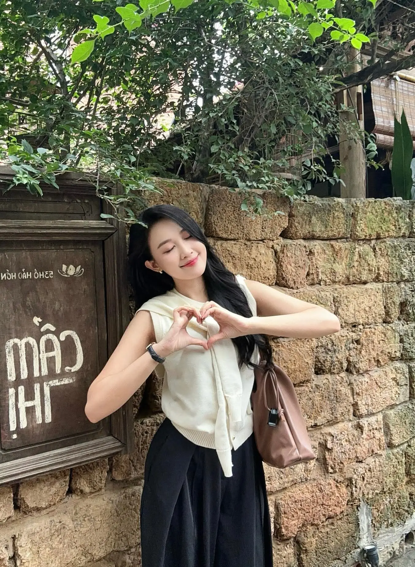 This VGU No182 image captures a young woman exuding elegant beauty and modern fashion style This confident girl chose a light beige outfit consisting of a spaghetti strap top and tailored trousers highlighting her balanced figure The highlight is her stylish glasses which are not just an accessory but also emphasize her intellectual and charming appeal With a graceful smile and a sophisticated white handbag she poses relaxed amidst a refreshing green space The image conveys self-confidence refined aesthetic taste and comfort in every moment serving as an inspiration for those who appreciate natural beauty and practical fashion#ElegantStyle #ModernFashion #ConfidentWoman #StylishGlasses #NaturalBeauty