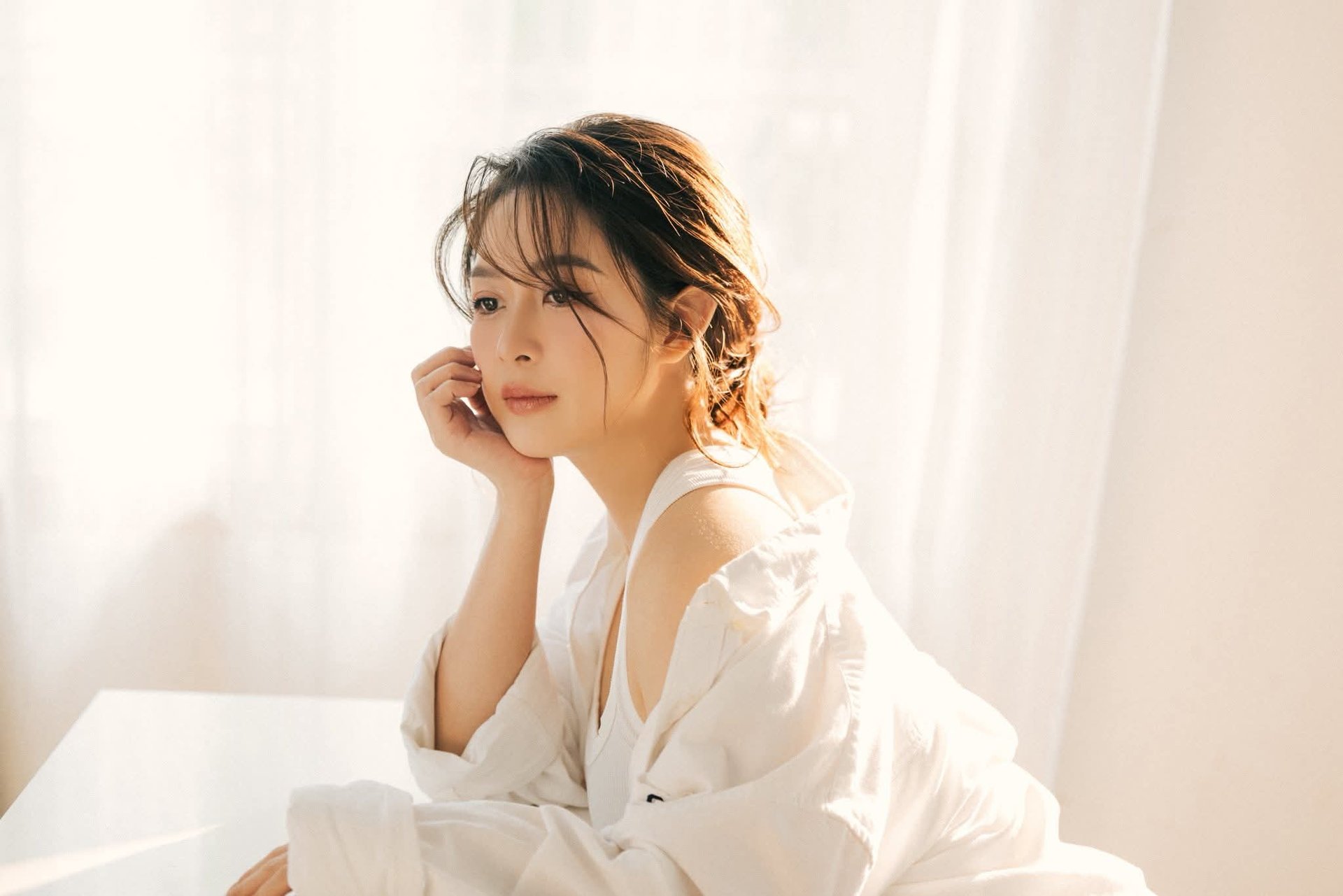 Image 1000018680 captures a captivating female portrait bathed in gentle morning sunlight. Golden rays cascade upon the woman's face creating a pure and radiant beauty. She has softly tied hair and smooth skin reflecting the warm light. Her facial expression exudes peace and serenity as if she is immersed in her own quiet moment. The simple white top further accentuates her pure natural beauty without the need for elaborate makeup. This image represents gentle femininity and flawless beauty illuminated by perfect natural light. A truly beautiful peaceful moment ideal for themes of wellness and natural glow.