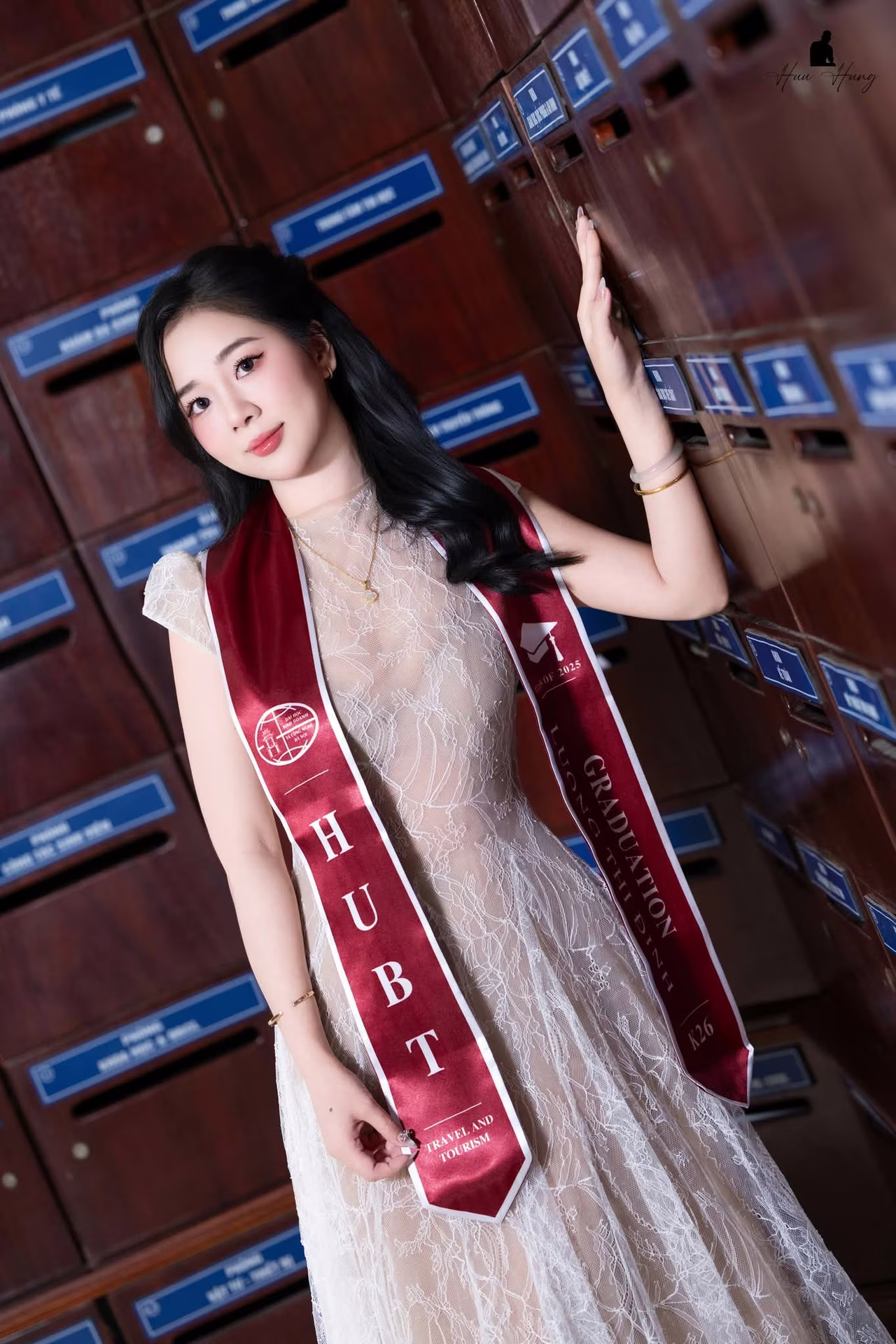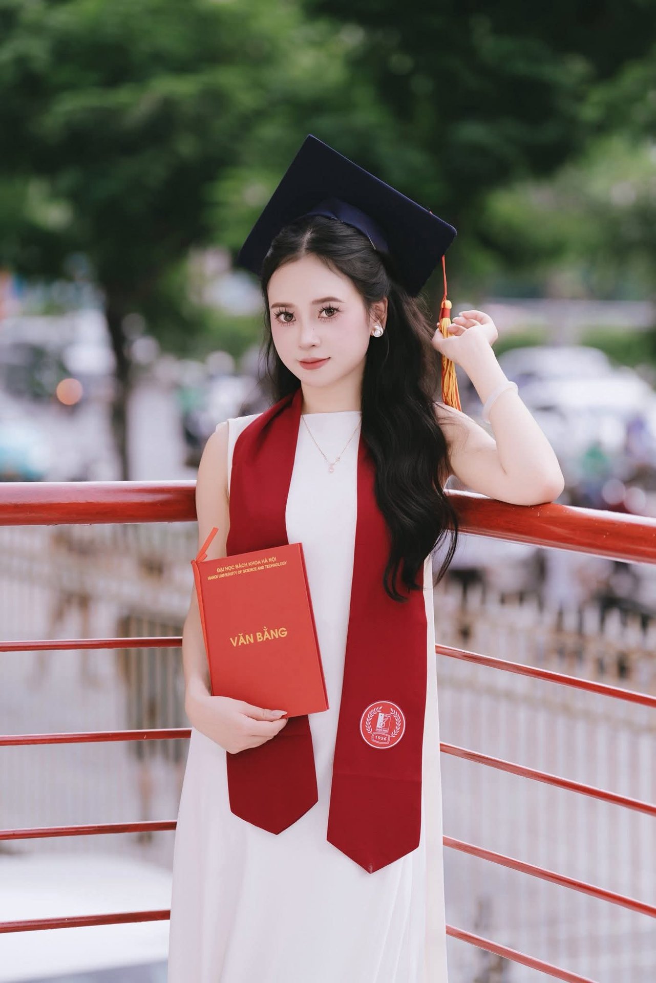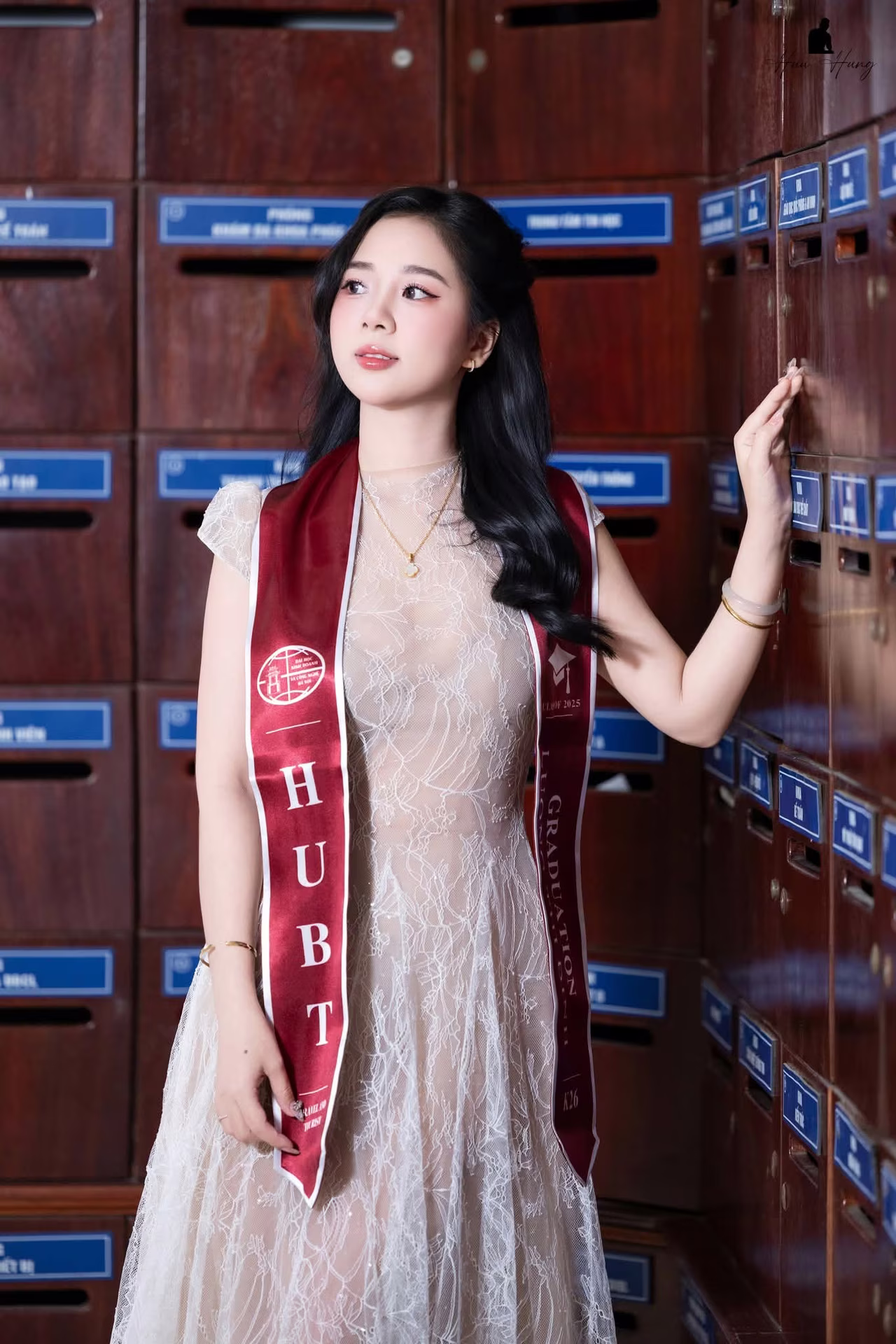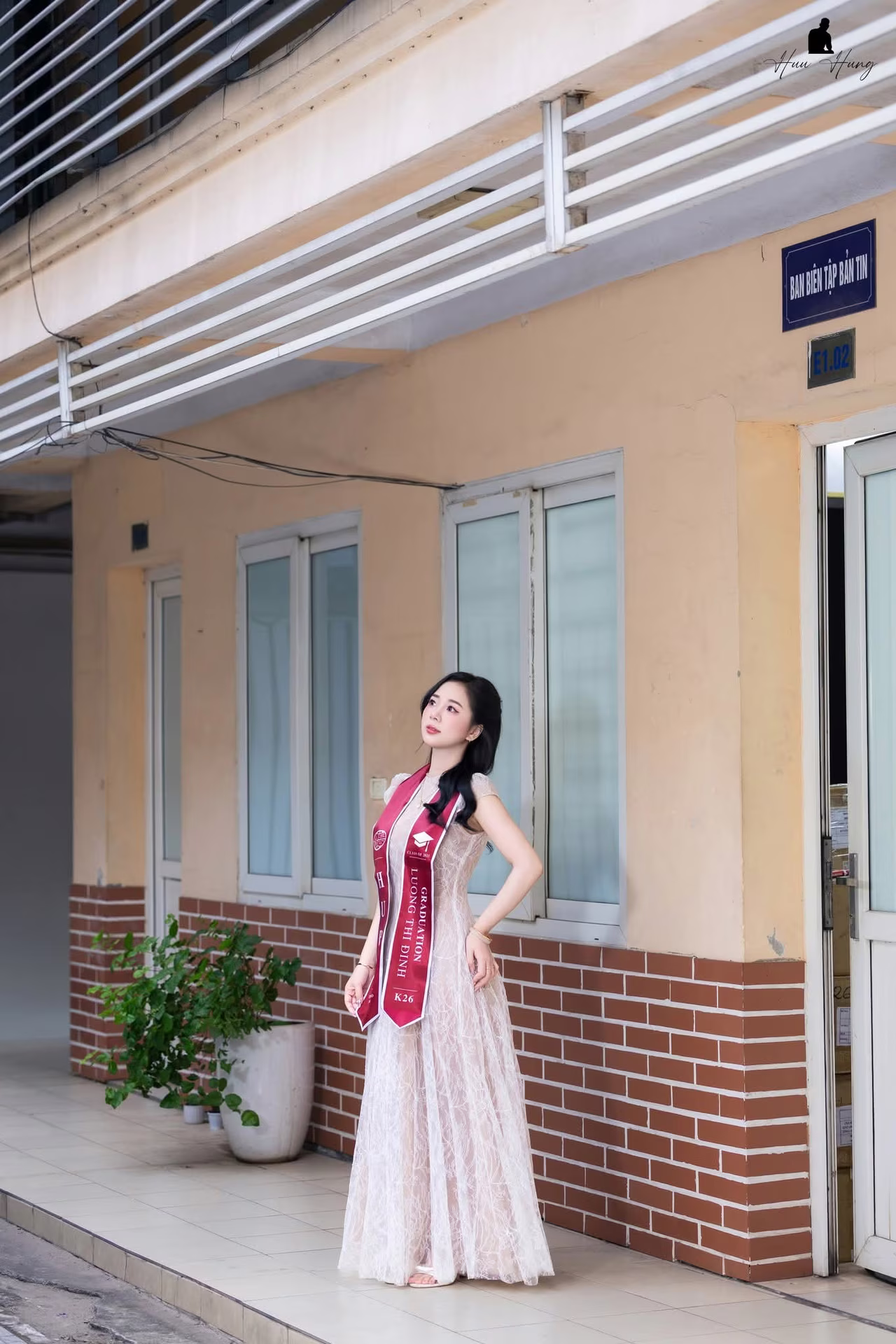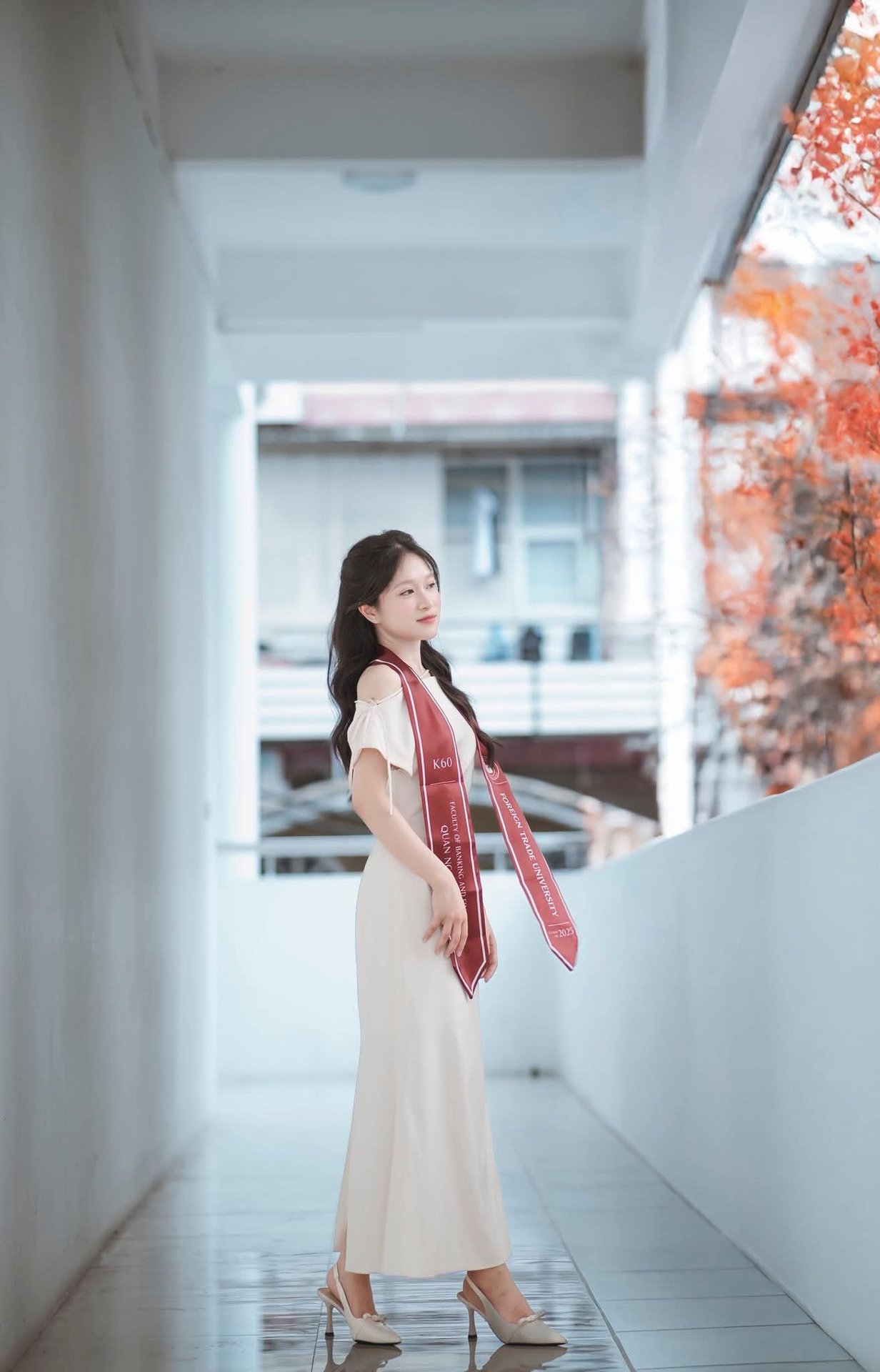 This stunning photograph captures a graceful Vietnamese female student exuding elegance and intellect Adorned in a beautiful dress and an honorary sash from HUBT the young woman confidently showcases her beauty marking a significant milestone in her academic journey Her radiant eyes and gentle smile convey pride and maturity after years of diligent study She stands not only as a symbol of Vietnams dynamic young intellectual generation but also as an inspiration for continuous effort This image disseminates a message of success the beauty of knowledge and hope for a bright future A memorable moment celebrating the beauty of a Vietnamese woman on her momentous day #Vietnamese #pretty #charmVGU No.38: Radiant Vietnamese Female Student in Uniform Capturing Youthful School Memories