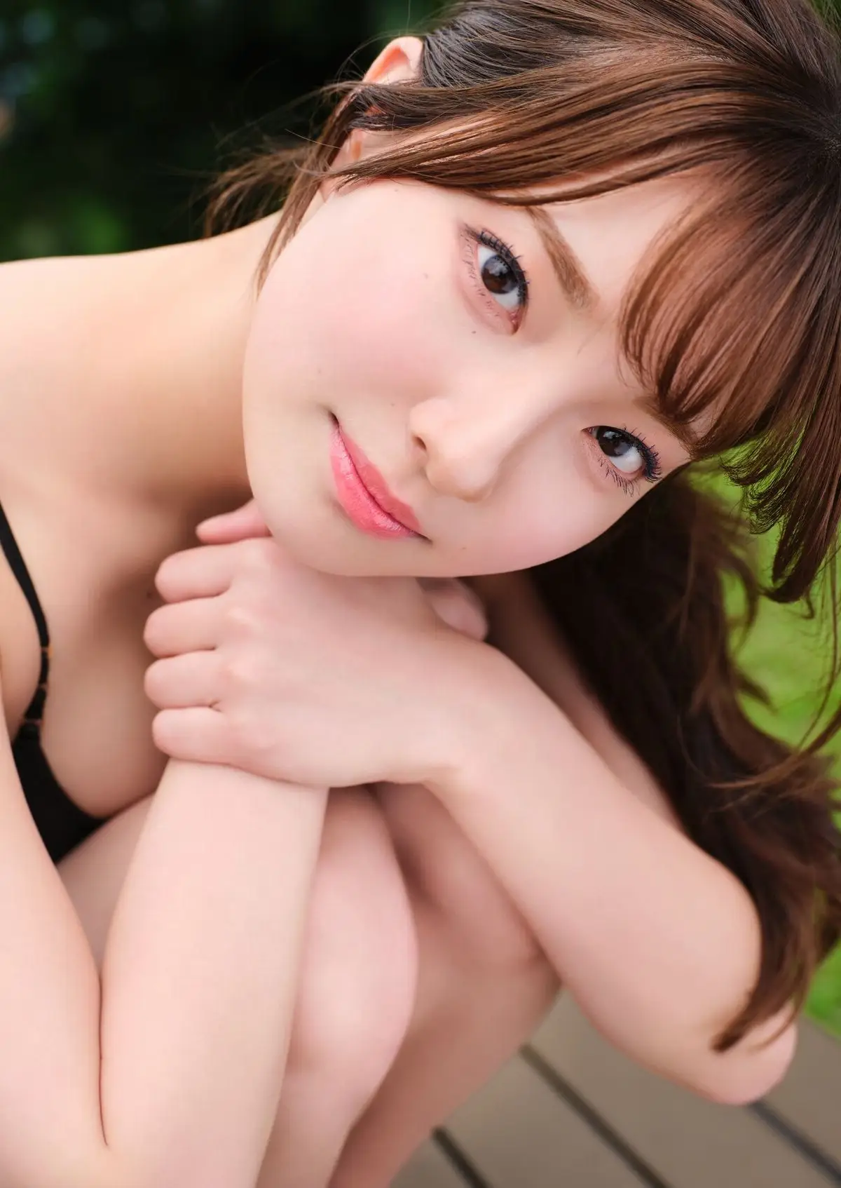 Immerse yourself in a captivating moment with Natsuki Satonaka 里仲菜月 in this stunning photograph. She appears mesmerizing in a vibrant red satin slip dress that elegantly accentuates her graceful and alluring beauty. Natsuki's direct gaze and subtle smile create an irresistible charm inviting viewers to delve deeper into her captivating aura. The luxurious backdrop featuring a pool and modern architecture further highlights the idol's refined elegance. This image is part of the exclusive digital collection YJ PHOTO BOOK Task have Fun titled Full Throttle promising authentic and emotionally rich perspectives of Natsuki Satonaka. Discover her radiant beauty and impressive fashion sense within this remarkable series.