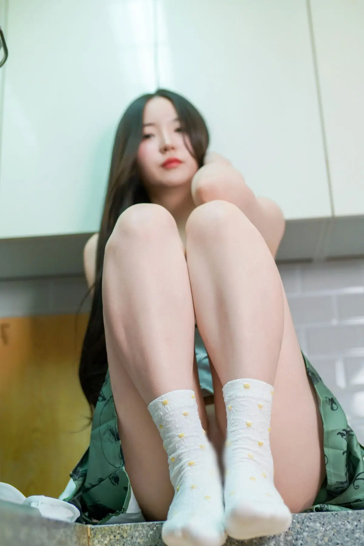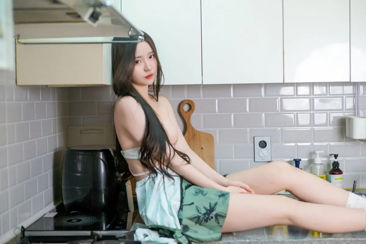 Yeolmu captivates viewers with her striking and artistic pose in a modern kitchen setting. Perched confidently on a sleek countertop, she exudes a captivating blend of self-assurance and allure, transforming an everyday domestic scene into an enchanting photographic masterpiece. Her deep gaze and subtle expression add an air of mystery and charm to every moment captured. This image is part of a special collection where Yeolmu masterfully combines subtle sensuality with familiar surroundings, offering a fresh and emotional perspective on physical beauty. Every detail in the photograph, from the soft lighting to her interaction with the space, is meticulously arranged, creating a harmonious and unforgettable visual experience.