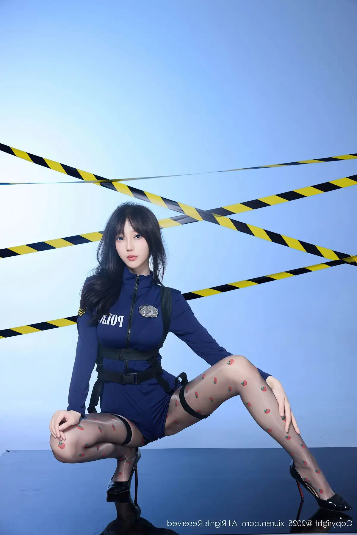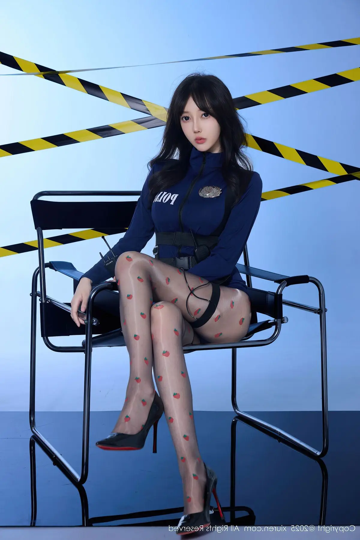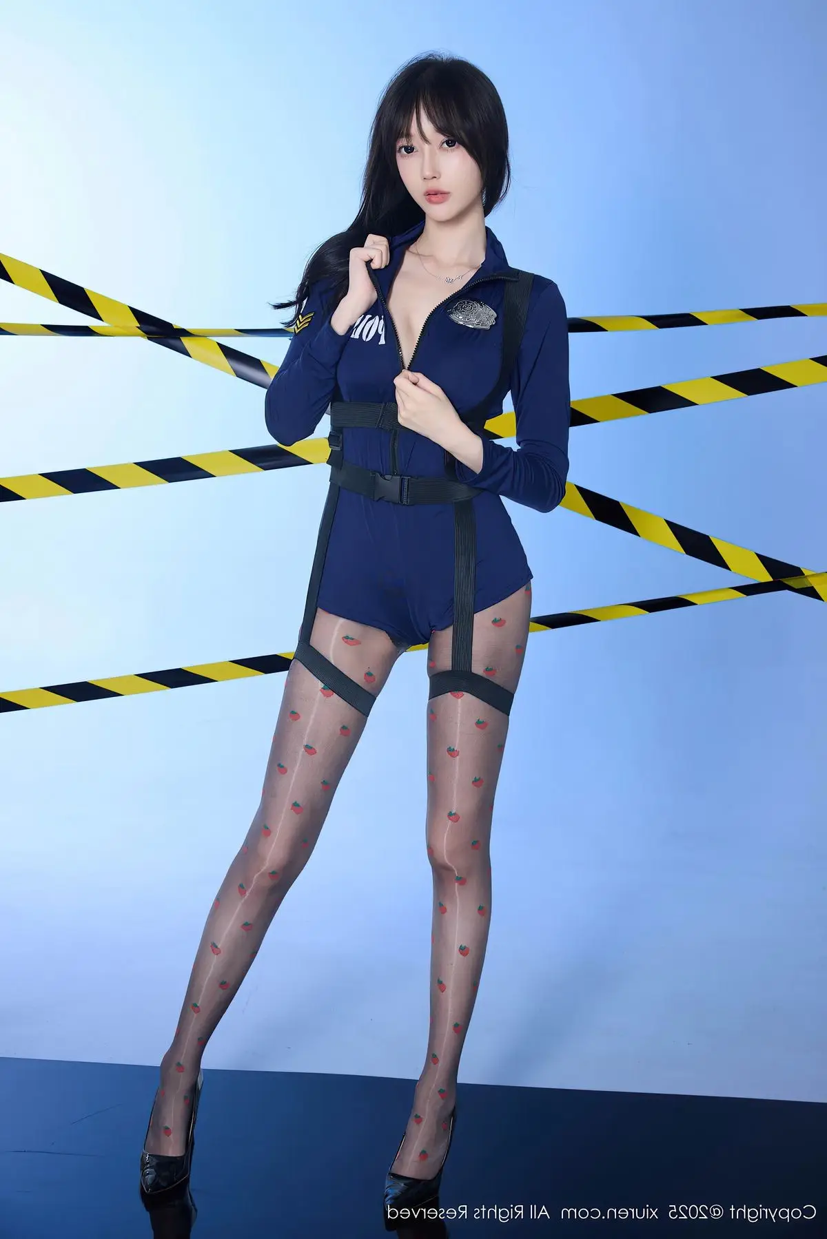 In the captivating XiuRen No.10569 series, model Mei Gui Wo Ai Ni embodies an enchanting police officer, showcasing her alluring beauty and confident demeanor. She poses gracefully on a sleek black seat, her long legs elegantly highlighted by delicate stockings. The soft ambient lighting of the luxurious setting accentuates her figure and the striking blue uniform. Every gesture from Mei Gui Wo Ai Ni exudes professionalism yet remains incredibly seductive, creating an image that is both powerful and mysterious. This unmissable collection perfectly blends authority with the captivating charm of Mei Gui Wo Ai Ni's Asian beauty.