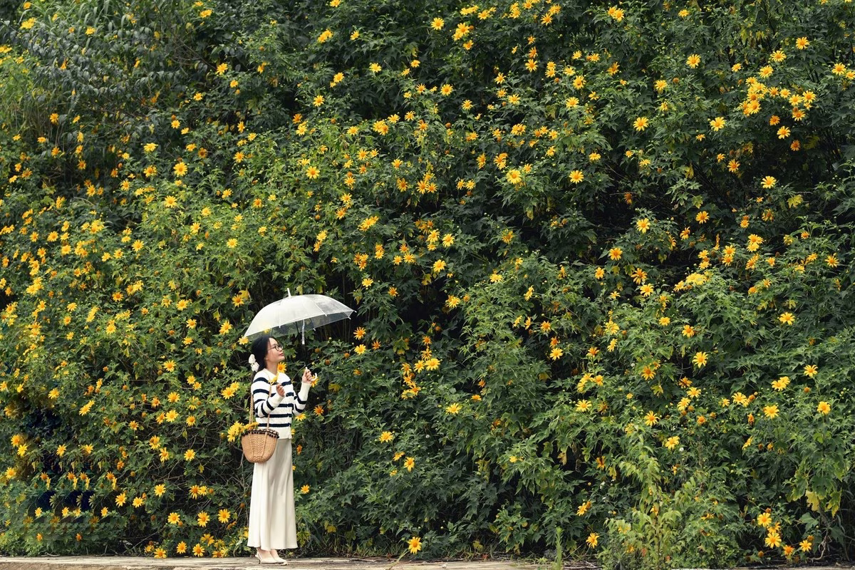 Da Lat's wild sunflower season paints a magnificent natural landscape in Vietnam. Rolling hills are transformed into a vast golden carpet by the vibrant yellow blossoms under the sunlight. Interspersed with lush green pine forests this creates a majestic and poetic scene. It is a golden moment for Da Lat as nature displays its captivating beauty. The wild yet charming allure of the wild sunflowers not only mesmerizes visitors but also highlights the wonderful diversity of Vietnam's natural environment. An unforgettable experience awaits amidst the Central Highlands of Lam Dong.