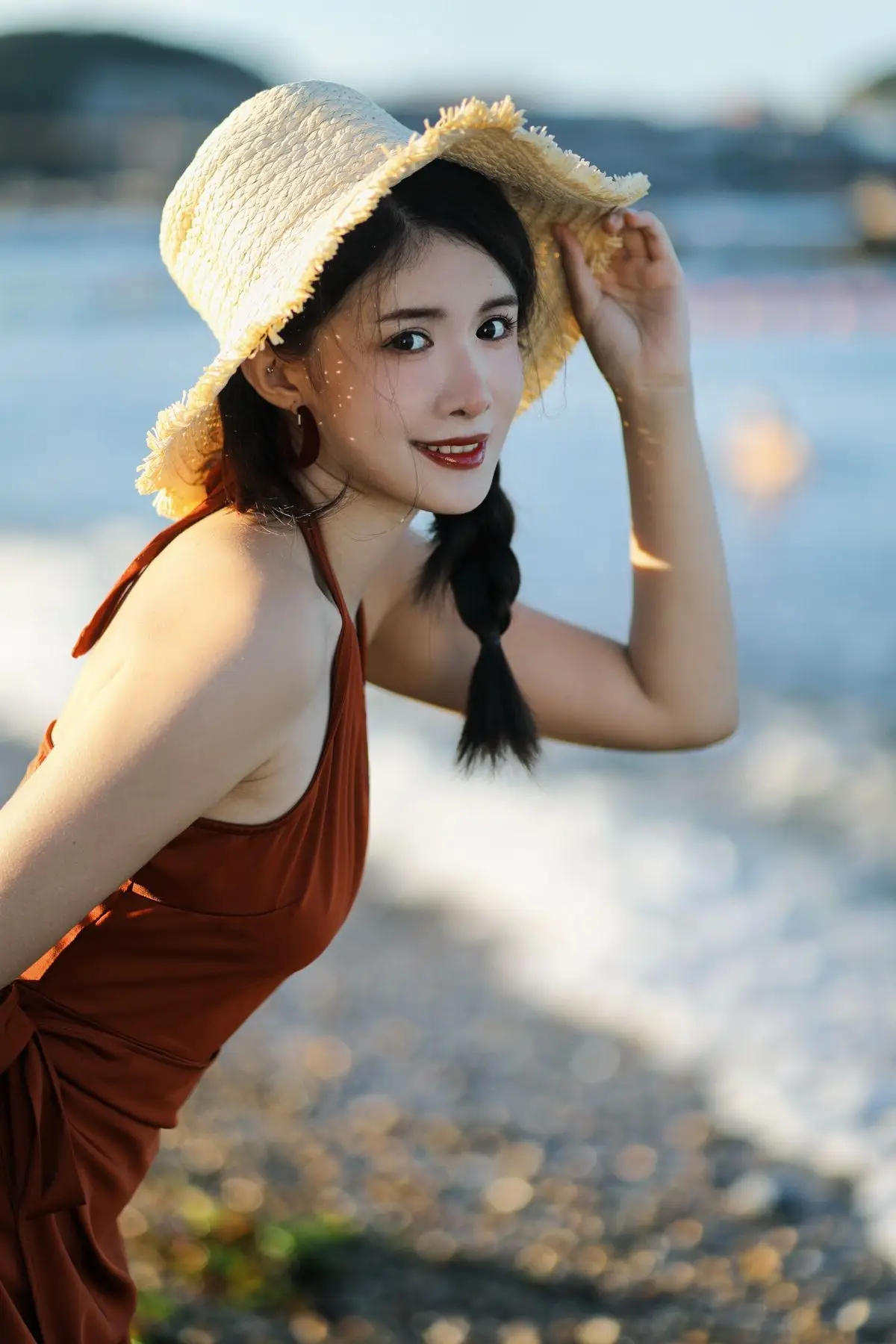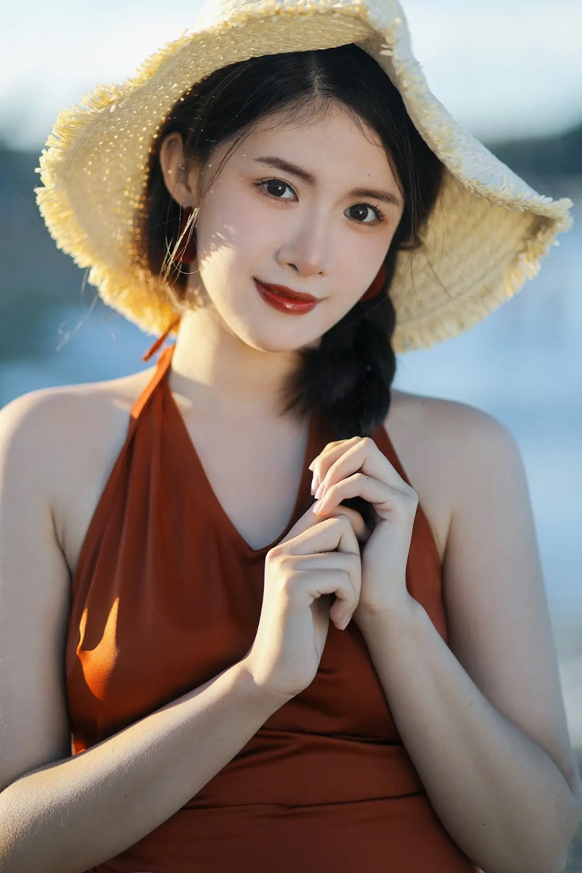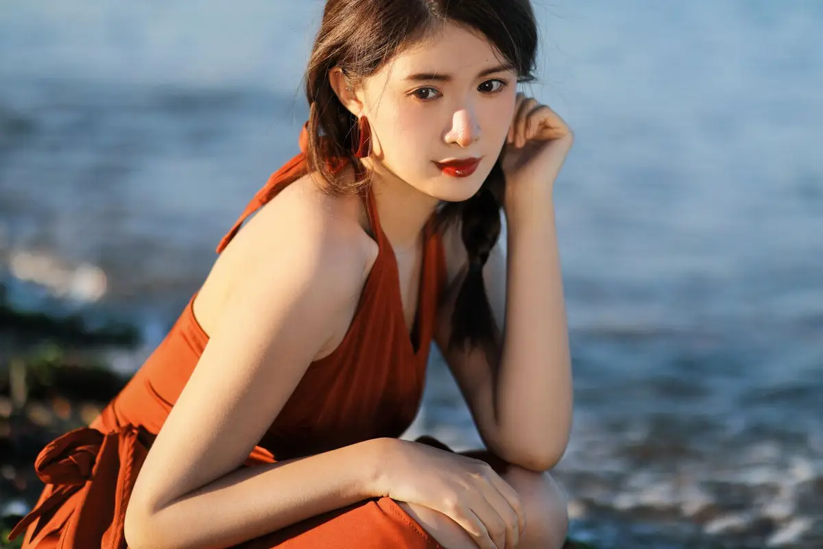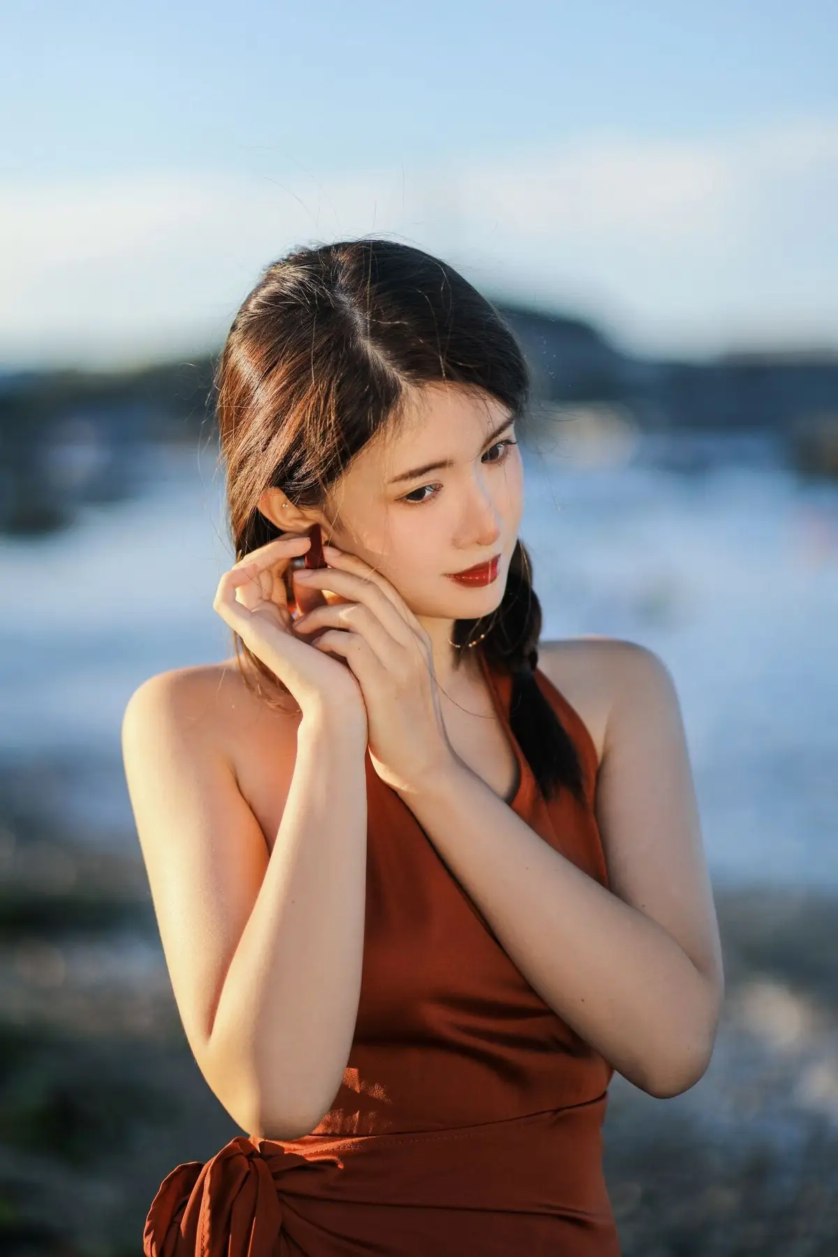 In this stunning YiTuYu Vol.8522 collection, model Yi Ming embodies elegant allure under the radiant golden hour sun. Her delicate profile, accentuated by vibrant red lips and lustrous brown hair kissed by the sunset glow, creates a truly enchanting moment. Dressed in a sophisticated terracotta-toned outfit, she gracefully reveals a hint of bare shoulder, adding to her refined charm. The serene backdrop of calm waters and a clear blue sky perfectly complements Yi Ming's natural beauty and tranquil presence. This photograph is a beautiful fusion of a romantic setting and a captivating aura, offering an emotionally rich and unforgettable visual experience. Yi Ming in YiTuYu Vol.8522 truly shines as a muse of the afternoon.#YiTuYu #YiMing #AsianBeauty #GoldenHour #SubtleAllure