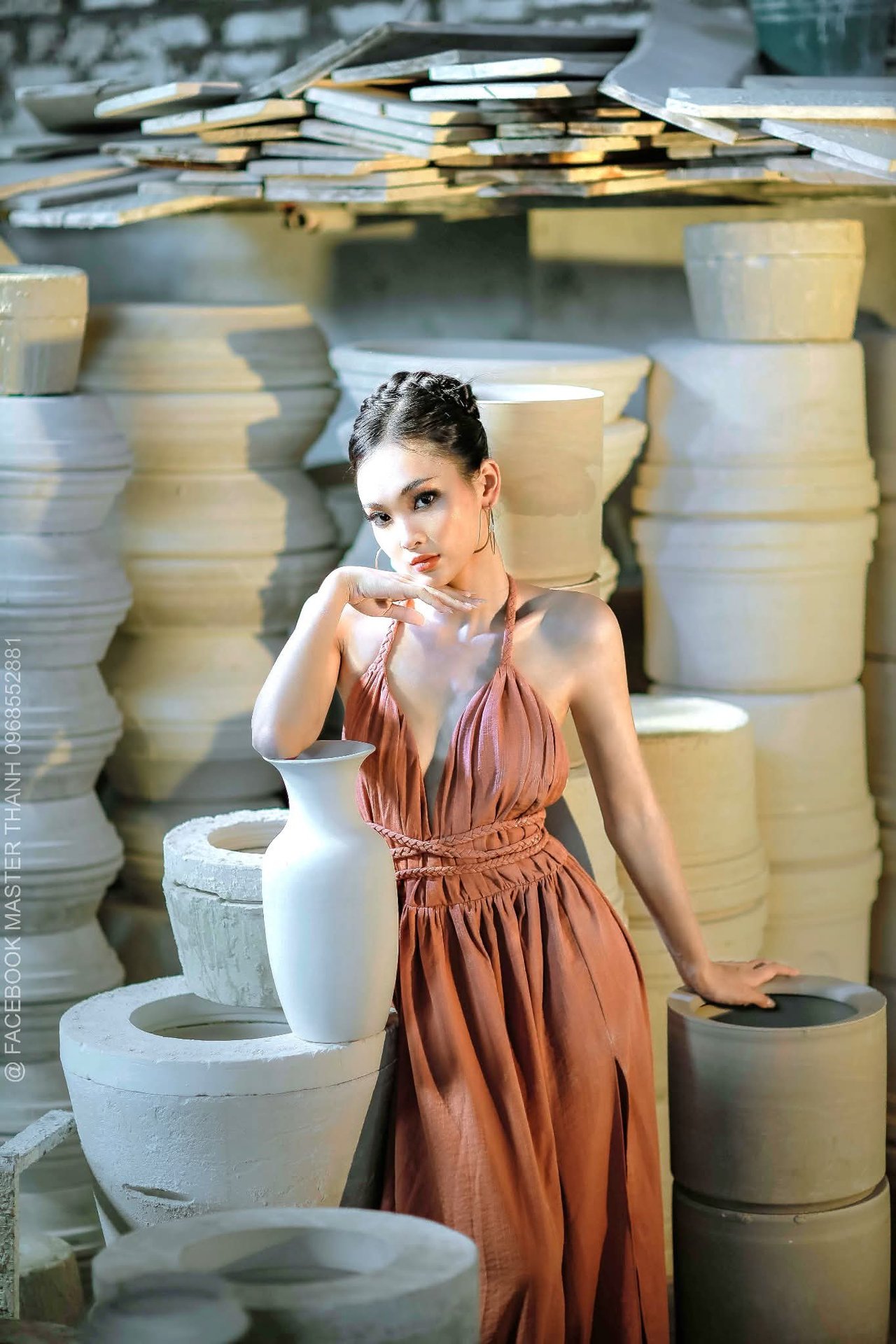 This captivating image portrays timeless elegance as a graceful woman stands amidst a space brimming with handcrafted pottery. She delicately holds a pristine white ceramic vase her gaze contemplative seemingly reflecting on art and creation. The backdrop features countless rustic unglazed pottery pieces crafting a scene that is both classic and contemporary honoring the value of traditional handicraft. This is more than just a serene moment it is a profound connection between humanity and cultural heritage. The photograph evokes feelings of refinement patience and the passion of artisans who meticulously craft unique pottery pieces embodying beauty that transcends time.Discover the Majestic Beauty of Vietnam's Terraced Fields Northern Vietnam's Breathtaking Natural Landscape