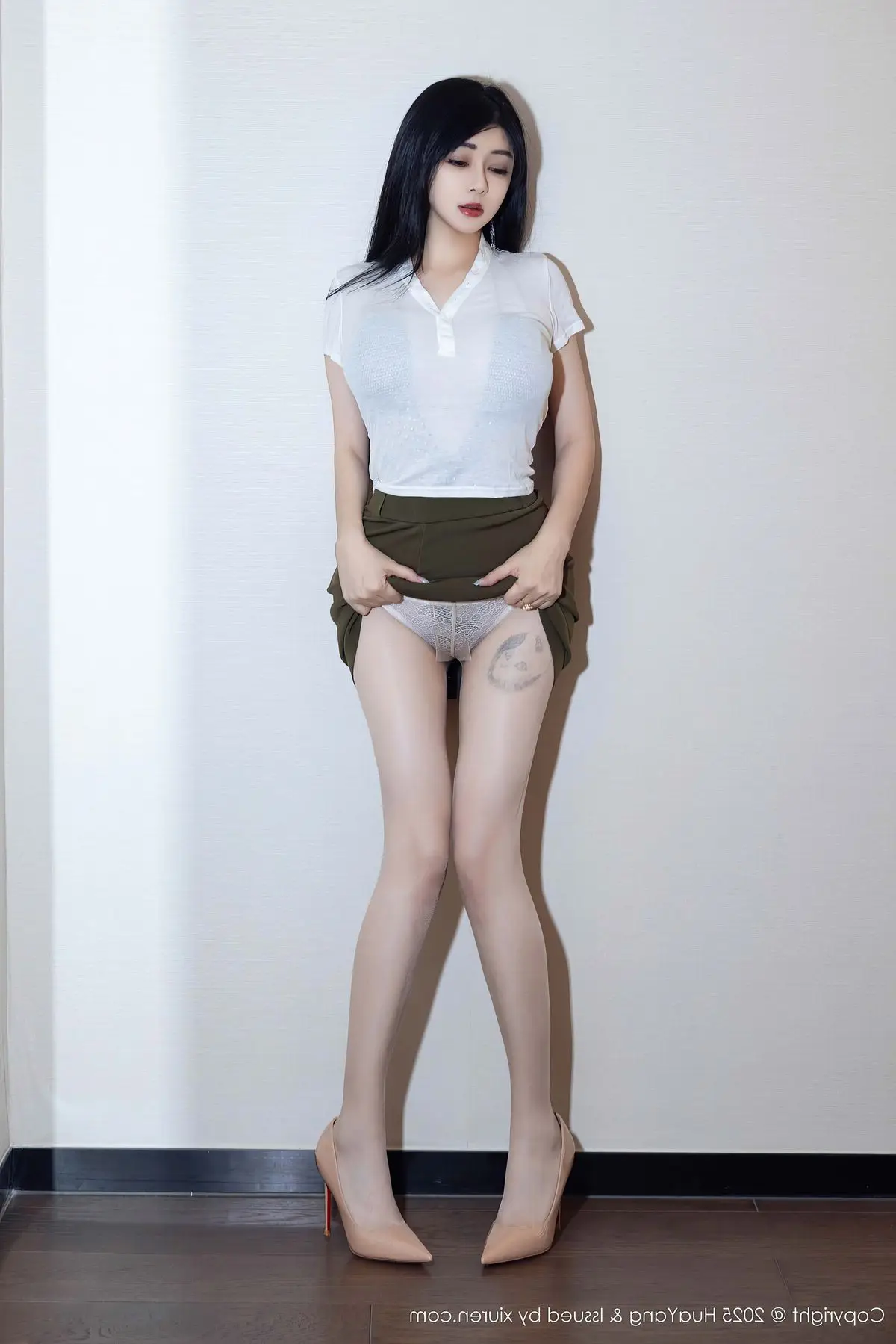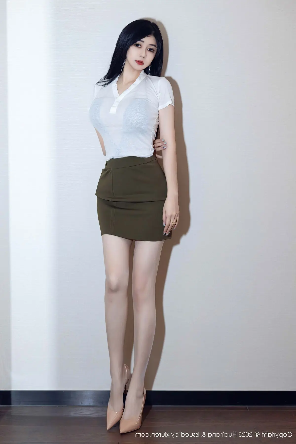 Discover the irresistible charm of Ai Li Li in the HuaYang Vol.041 collection. This beautiful secretary captivates every gaze with her elegant yet undeniably alluring appearance. Her refined office attire, from the crisp white shirt to the sleek black skirt, subtly highlights her graceful figure, creating an image that is both professional and utterly enchanting. Every moment captured of Ai Li Li radiates confidence and charisma, making it impossible for viewers to look away. This is a perfect blend of East Asian beauty and modern style, delivering a visually striking and unforgettable experience.