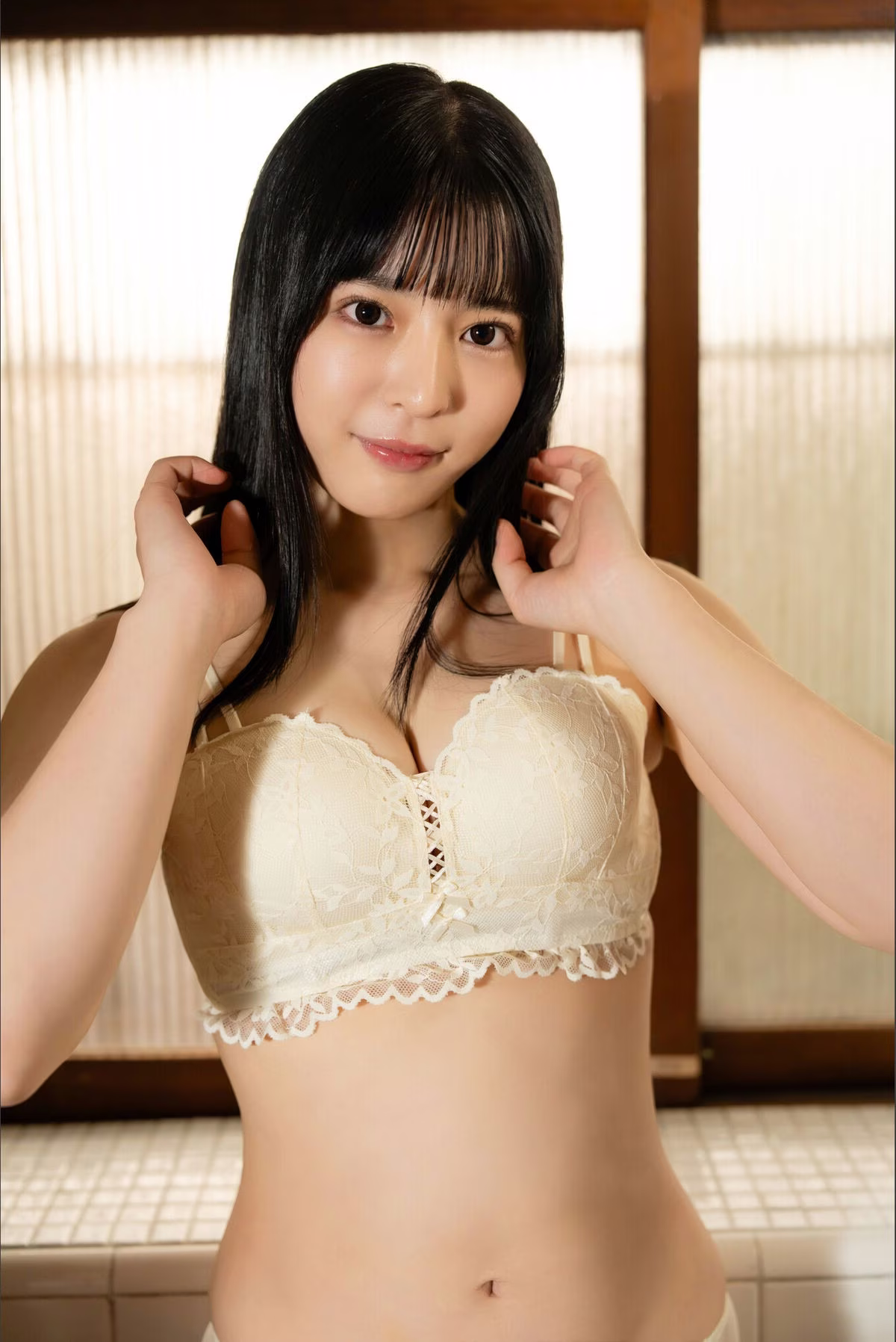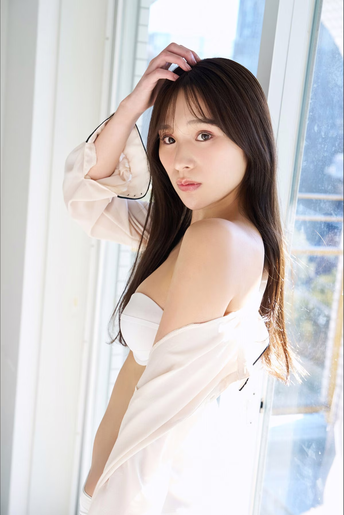 This stunning portrait features Haruka Kodama 兒玉遙 a captivating Japanese beauty with a delicate allure and an engaging gaze She is depicted in an elegant white lace bra highlighting her sensual yet natural and innocent charm With her lustrous dark hair and smooth complexion Haruka Kodama exudes an irresistible magnetism This image is part of the Secret Relationship 秘密の関係SPAデジタル写真集 Digital Photo Book a collection promising intimate and emotional moments This photo book is sure to enchant viewers offering a deeper look into the unique style and charisma of Haruka Kodama a contemporary icon of East Asian beauty