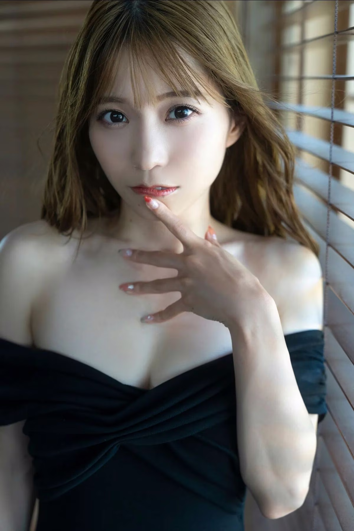 This stunning image features JP Ayaka Hidaritomo, an exquisite Japanese model, from her FRIDAY Digital Photo Book Vol.2. She reclines gracefully, her pose exuding a delicate sensuality and thoughtful elegance. Dressed in intricate black lace lingerie, her natural beauty and alluring silhouette are beautifully highlighted against a warm, intimate backdrop. The soft lighting further enhances the serene and private atmosphere, drawing viewers into her world. This photograph not only showcases Ayaka Hidaritomo's captivating physical presence but also hints at a deeper, confident and mysterious aura, inviting fans to explore the full spectrum of her charm within the digital photo book.Stories