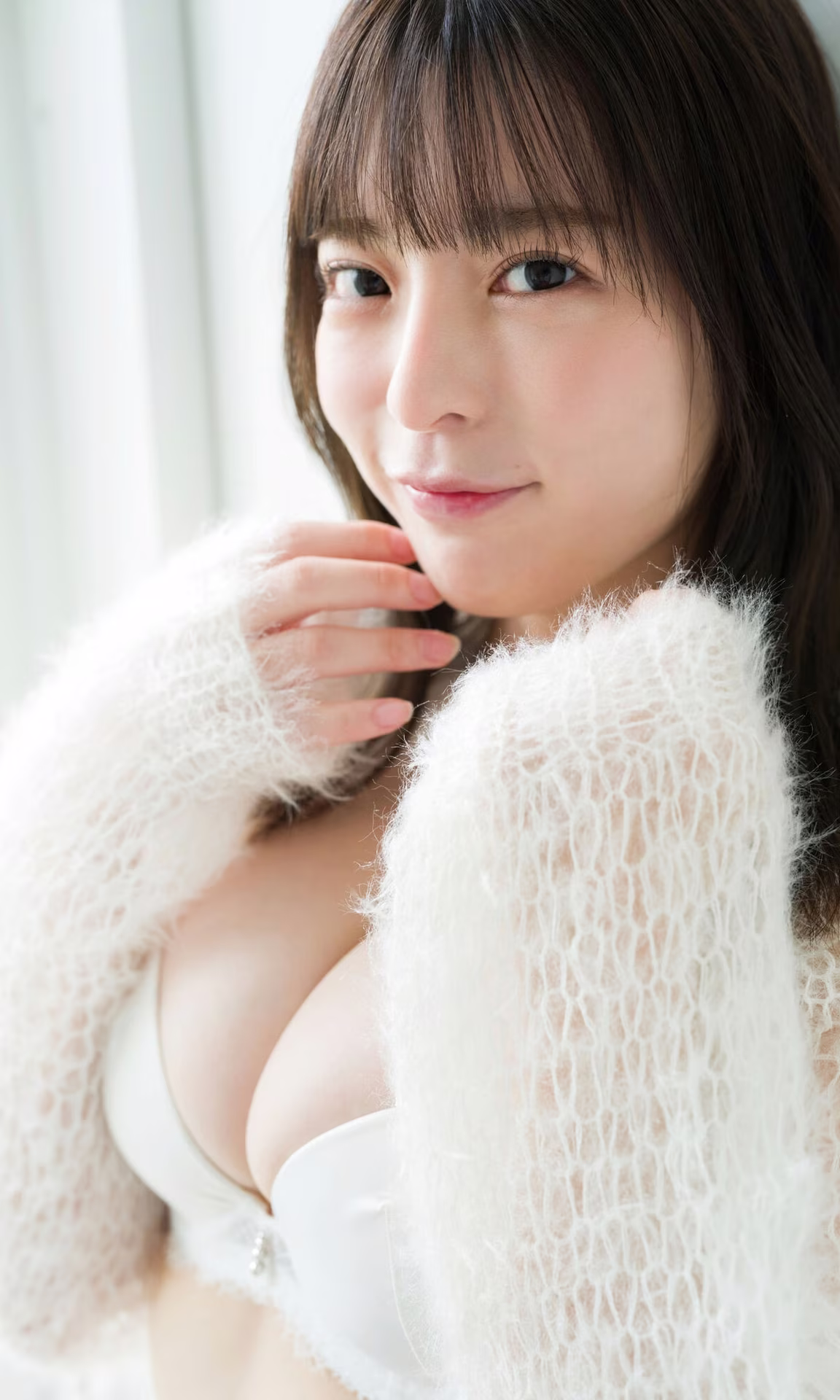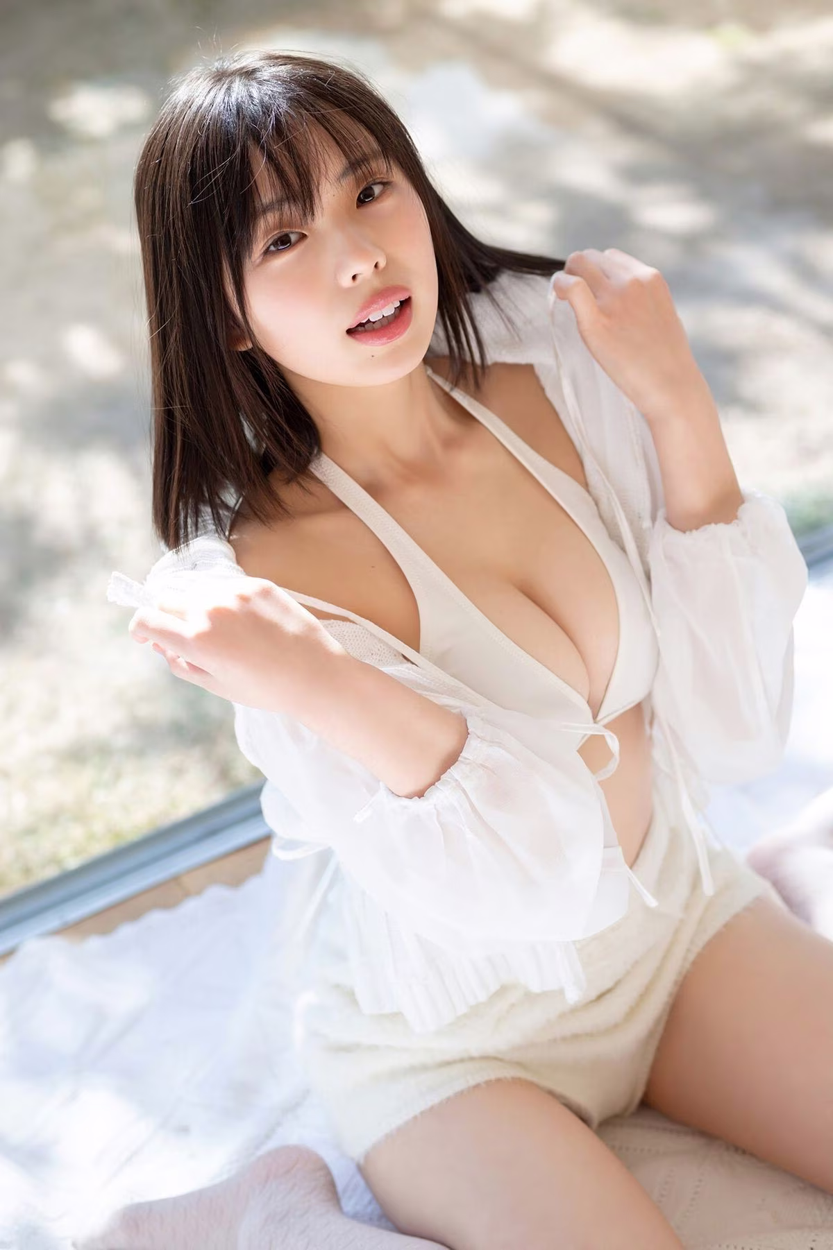 In this exclusive photoshoot from Yanmaga, Kikuchi Hina 菊地姫奈 shines with a pure and sweet beauty. She appears in a pristine white outfit, subtly showcasing her natural alluring curves. Soft light bathes the space, highlighting her fair skin and dark hair. Every angle exudes grace, from her innocent gaze to her gentle smile, revealing an irresistible charm. This photo collection not only captures Kikuchi Hina's radiant moments but also conveys a sense of peace and freshness, leaving viewers captivated. This is certainly a remarkable highlight in her career.