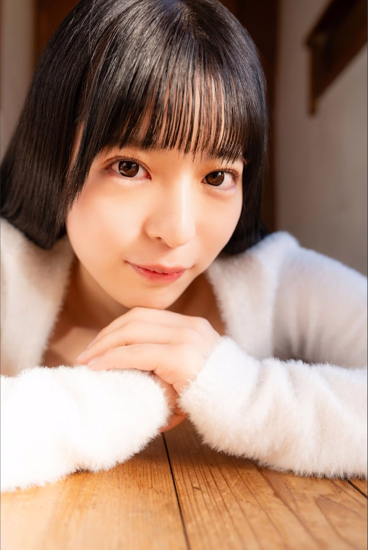 Immerse yourself in the captivating charm of JP Nagano Miyabi as she embarks on a heartwarming homecoming. This exquisite image, a highlight from her digital photo book, beautifully portrays her in a serene and intimate setting. With a gentle, inviting smile and eyes that sparkle with warmth, Miyabi exudes a comforting aura, perfectly embodying the essence of returning home. Her soft, fluffy white attire complements the cozy ambiance, creating a truly enchanting visual. This 'Homecoming Gravure' collection promises an emotional journey through Miyabi's grace and natural beauty, inviting fans to explore every delightful moment captured in this stunning digital photo book.