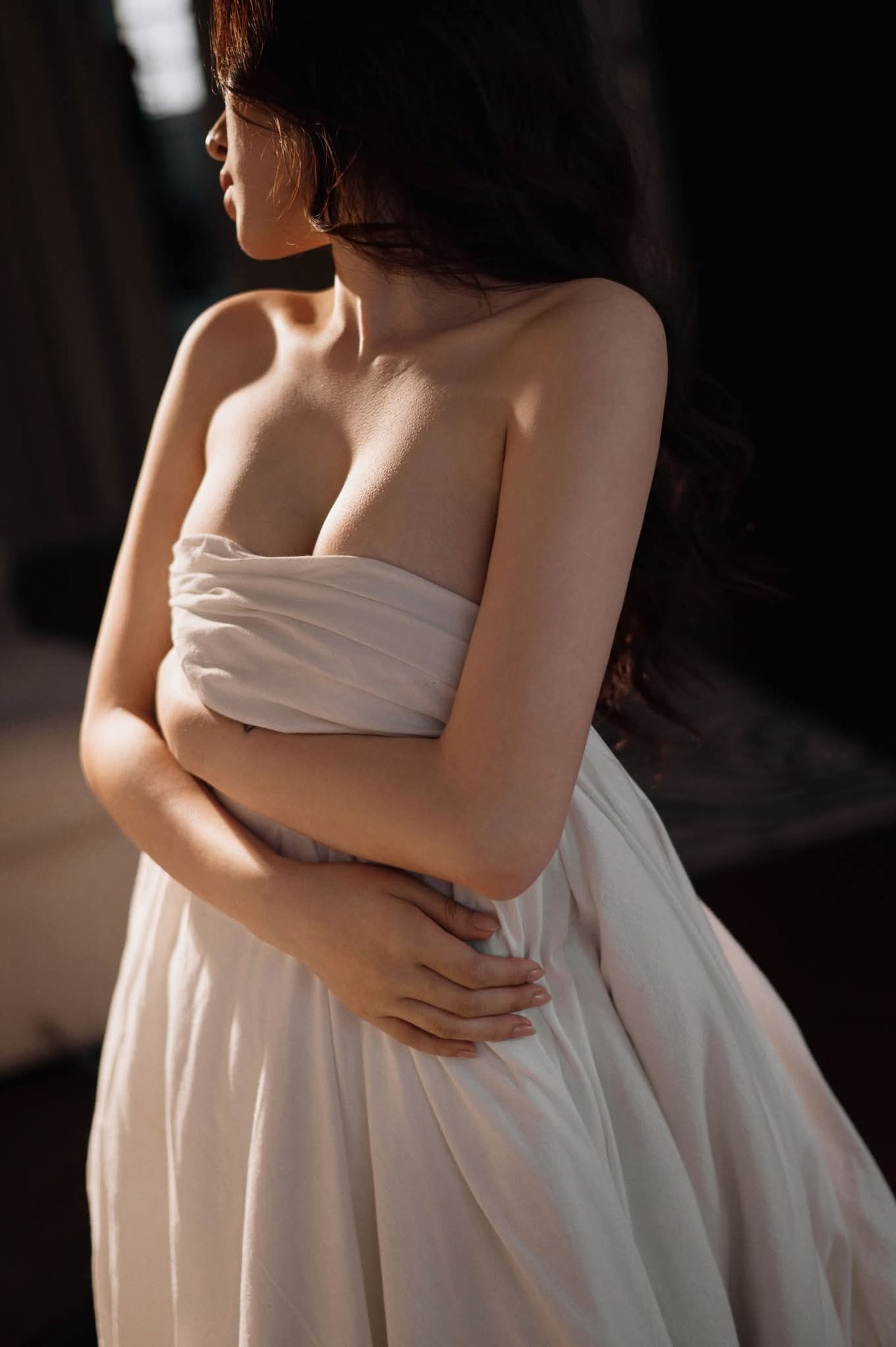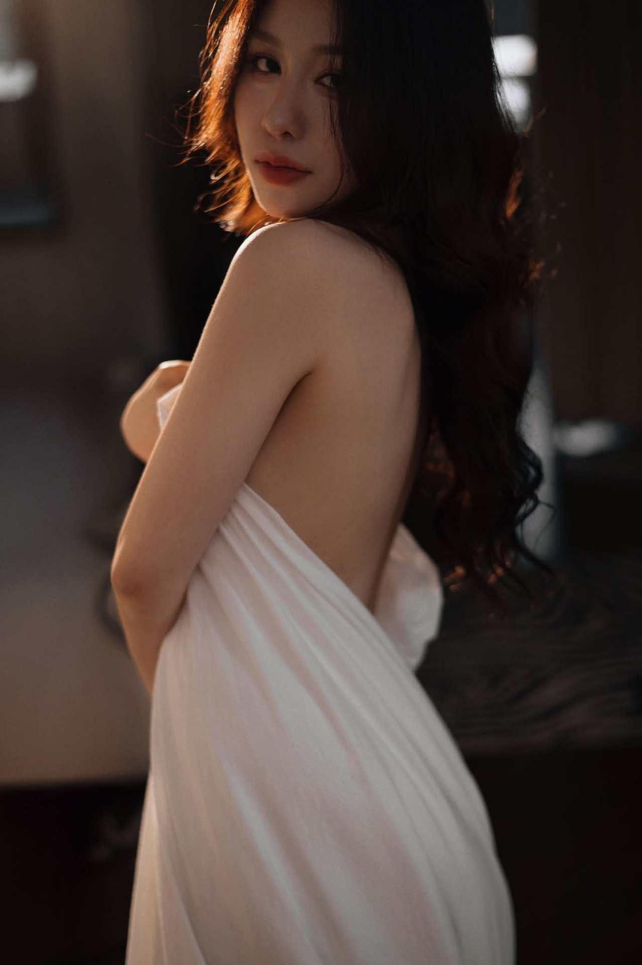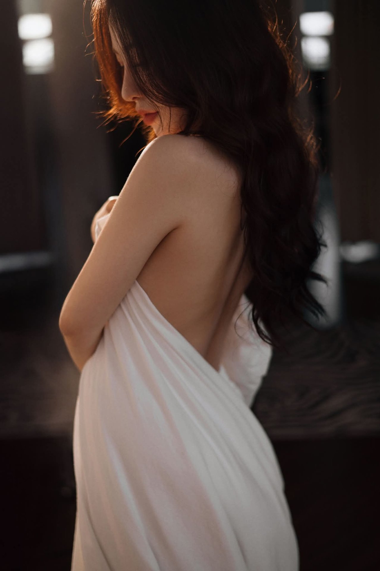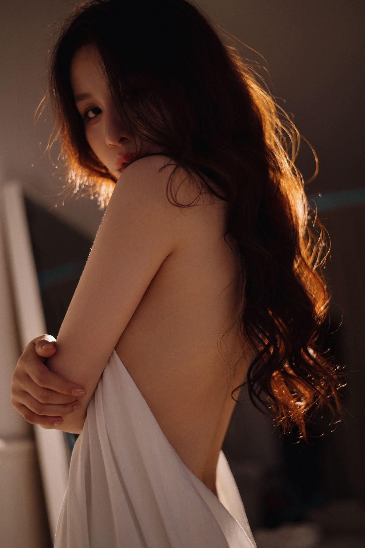 This image 1000019128.jpg presents a stunning artistic portrait celebrating the natural beauty and delicate essence of a woman. Bathed in soft, gentle light, the photograph captures a girl in an intimate moment, subtly veiled by a pristine white sheet. Her deep gaze and serene expression draw the viewer in, conveying genuine and profound emotion. More than just a picture, this is a narrative of purity, softness, and captivating femininity. Every line and detail is skillfully rendered, creating a harmonious and deeply artistic composition. The image evokes a sense of tranquility and timeless beauty, making it a truly mesmerizing piece of art.