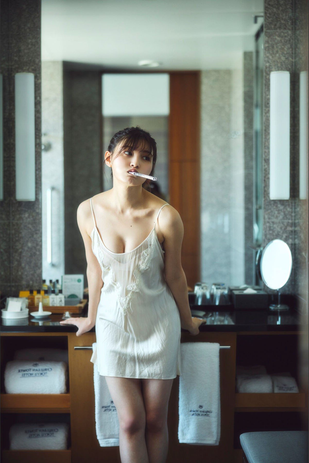JP Shida Nene radiant in bathtub, adorable pose. Sweet moments from Weekly Playboy PHOTO BOOK Manazashi no Saki ni.
