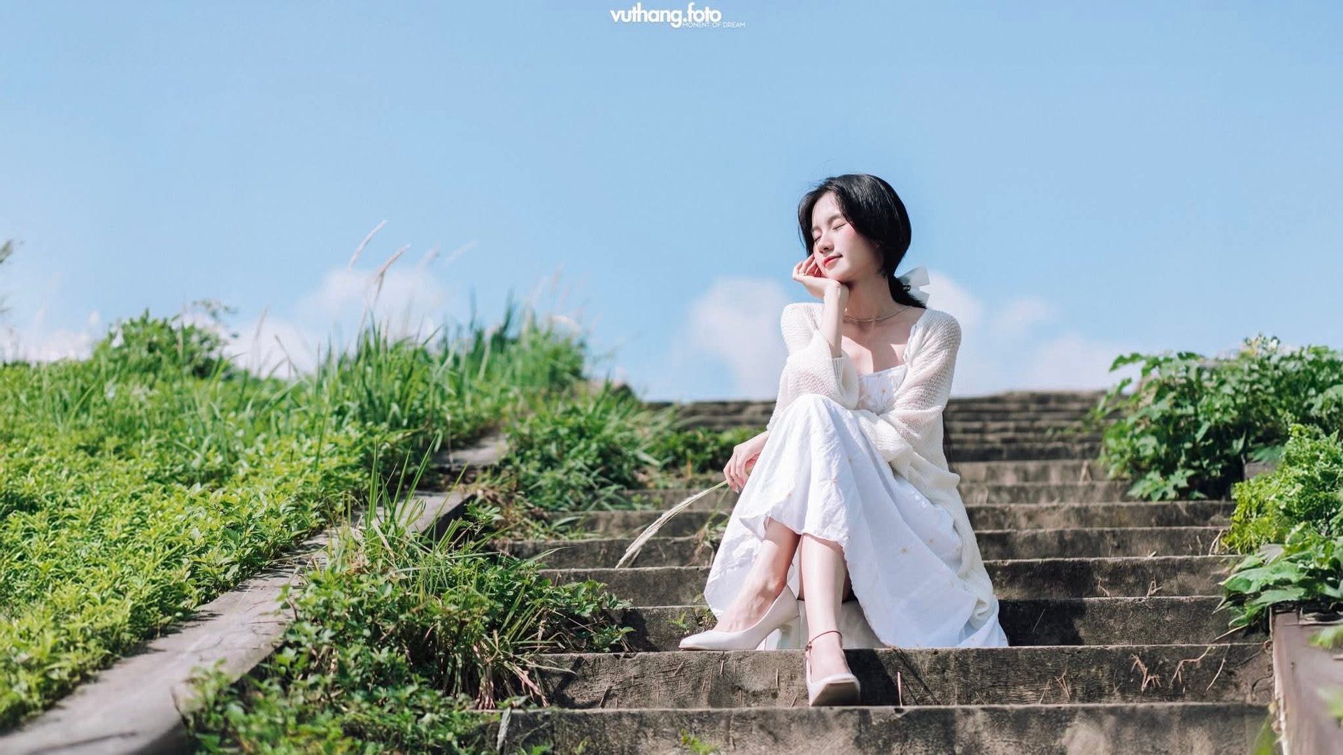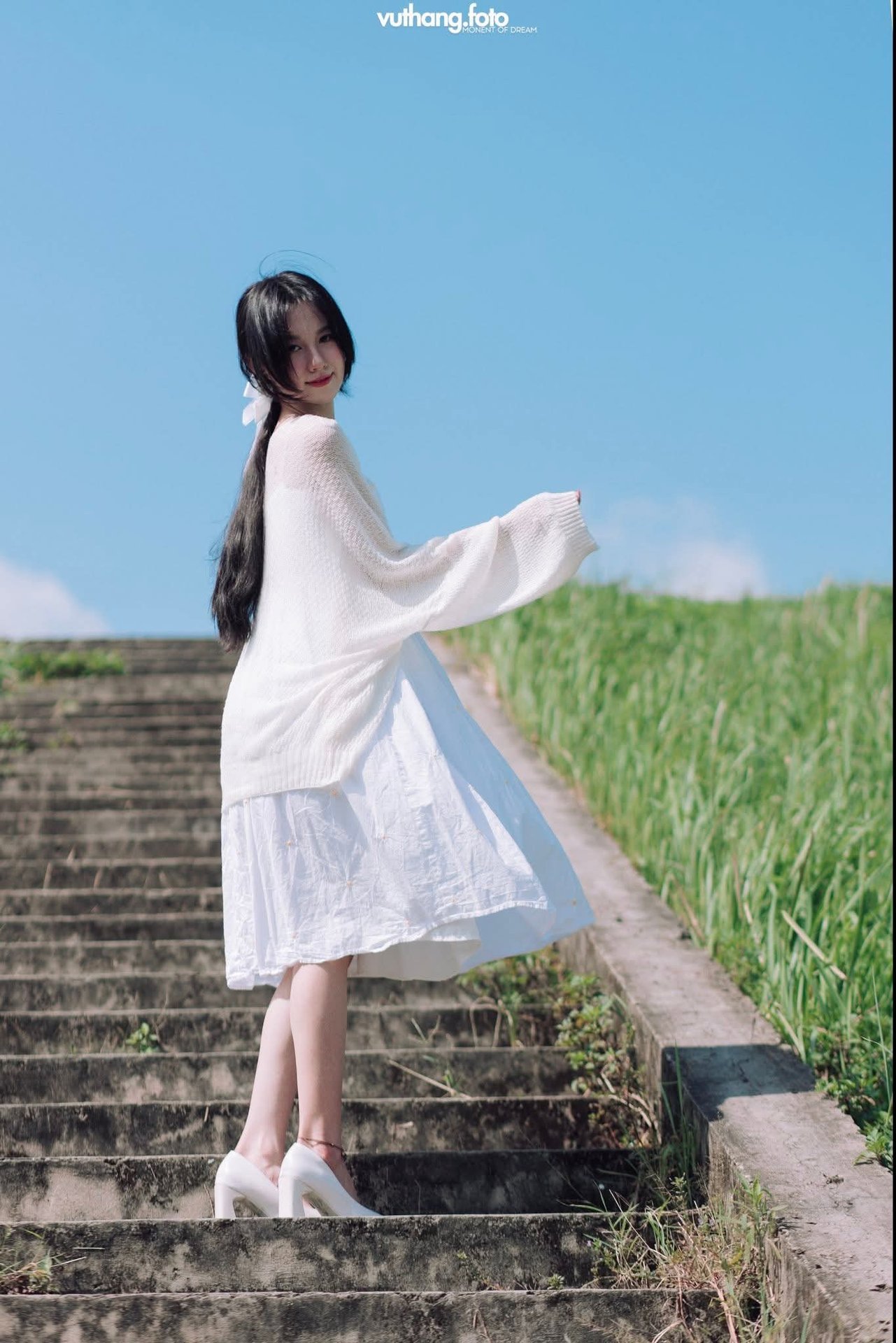 Discover the elegant and traditional beauty of Vietnam through this captivating image of a graceful young woman in a pristine white Ao Dai. The photograph captures her standing by a serene lake with a lush green railing, creating a peaceful and poetic backdrop. The Ao Dai, a quintessential Vietnamese cultural symbol, accentuates the gentle and refined charm of an East Asian woman. This high-quality image is perfect for those seeking traditional Vietnamese Ao Dai pictures, ideal for HD wallpapers. Related image codes: 1000017604.jpg, 1000017605.jpg, 1000017603.jpg.Stunning Vietnamese Girl Portrait: Elegant White Dress & Captivating Charm