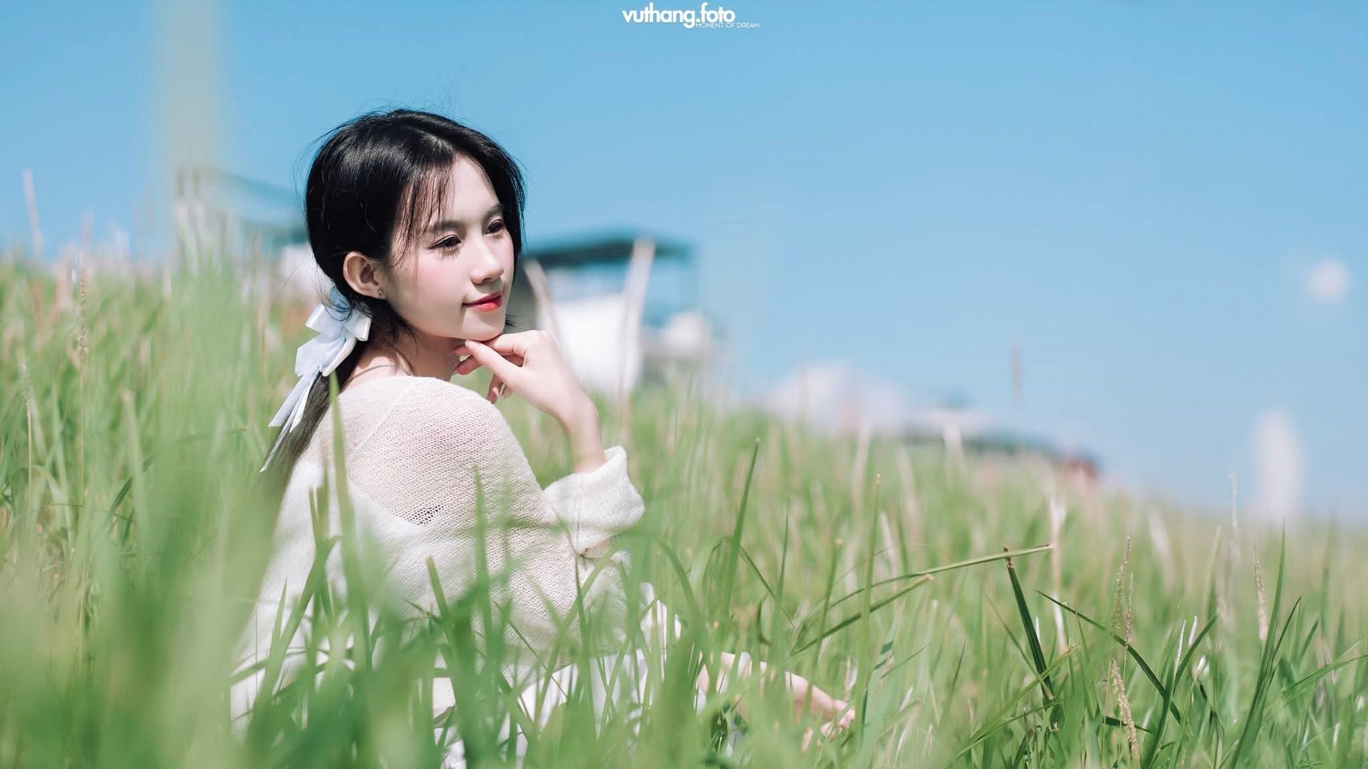 Image 1000018109.jpg captures the gentle, pure beauty of a young girl, standing out gracefully amidst a beautiful natural landscape. With a soft smile and clear eyes, she sits in a lush green grass field under a vast blue sky. This depiction of a human harmonizing with the natural scenery creates a peaceful, poetic, and vibrant tableau. Her beauty radiates purity and innocence, offering a sense of relaxation and comfort to the viewer. It's a stunning moment showcasing the harmonious connection between people and Mother Nature, a simple yet captivating beauty, ideal for those seeking tranquility and natural elegance.Vietnamese Cultural Beauty: Girl in Red Ao Dai & Traditional Lion Dance Prop
