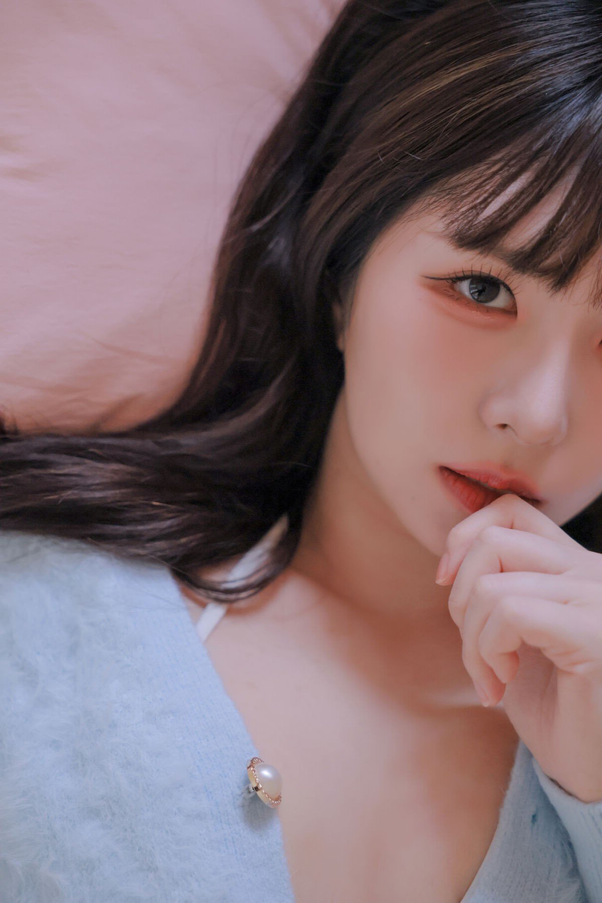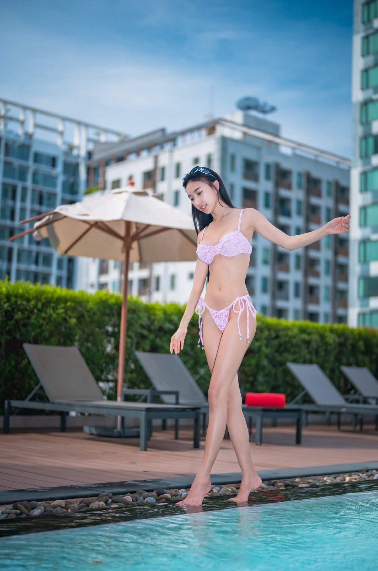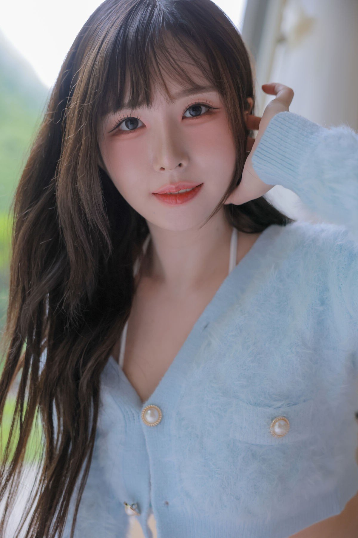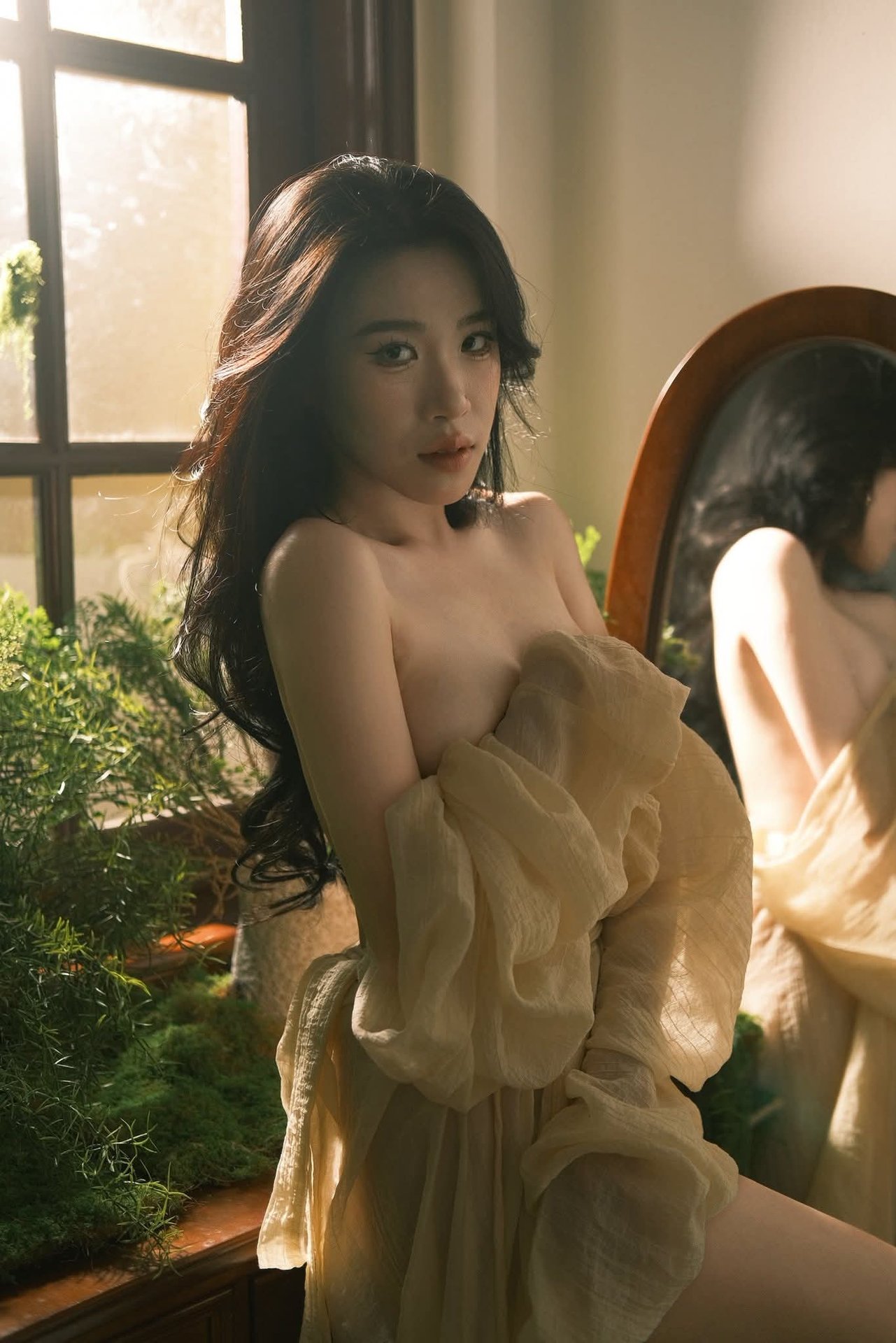 This captivating image showcases the ethereal beauty of model Soso amidst a lush forest stream setting. Her long flowing hair and gentle gaze complement the serene backdrop of vibrant greenery. Dressed in a light, delicate outfit, Soso gracefully crouches, her hand delicately touching the cool water, creating a moment of tranquil connection with nature. She embodies a pure and graceful charm, exuding a sense of peace and natural allure. This picture is a highlight from the exclusive SWEETBOX SOSO Once Part01 collection, celebrating Soso's enchanting presence in pristine natural landscapes.